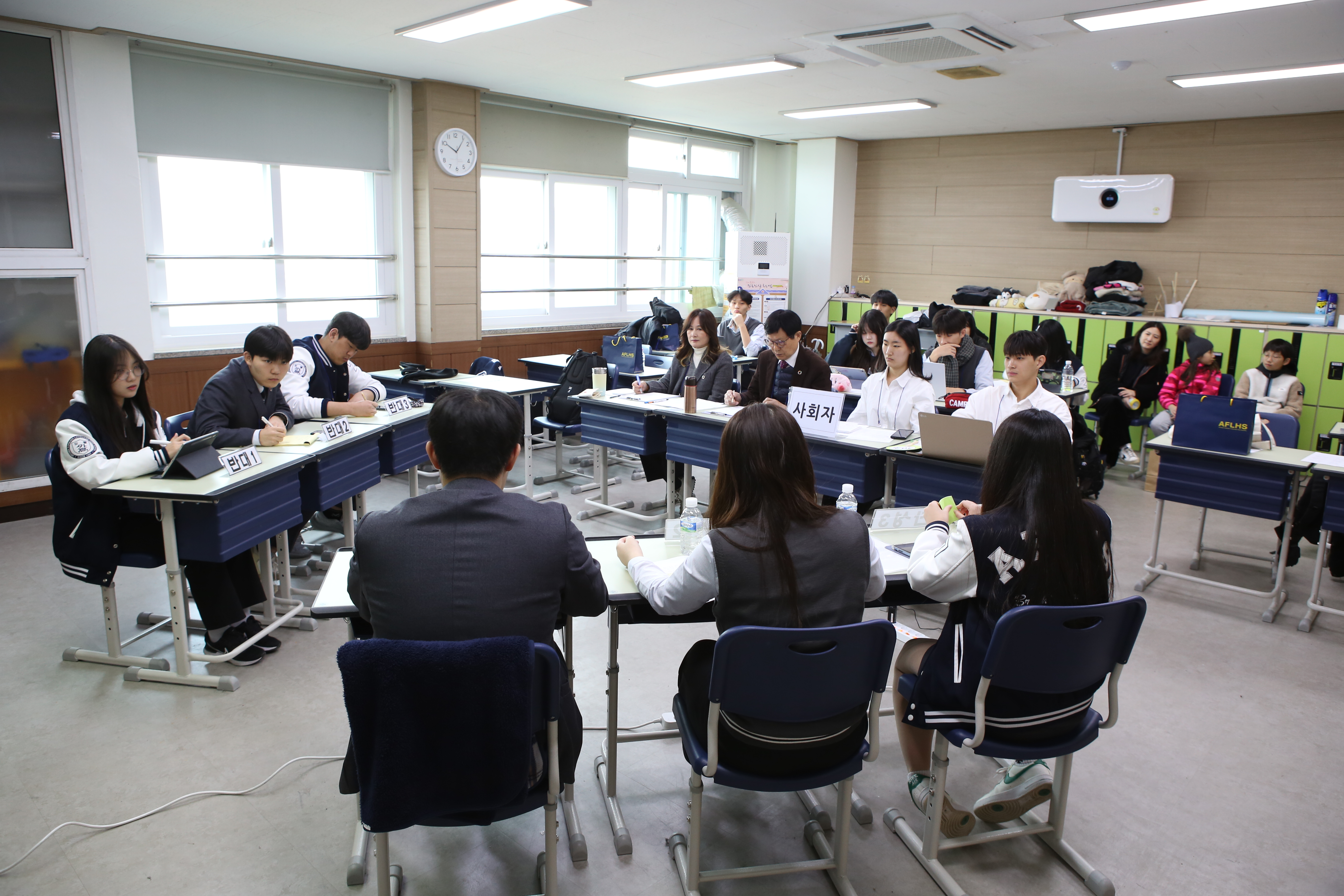 학교는 먼저 1학년 학생들에게 독서 디베이트 관련 기본 교육 및 실제 토론 교육을 실시하였으며 .지난 8월 참가 신청을 시작으로 9월 입론서 심사를 통한 예선 대회를 거쳐 11월 11일 디베이트 토론 방식으로 본선·결선 대회를 진행했다.