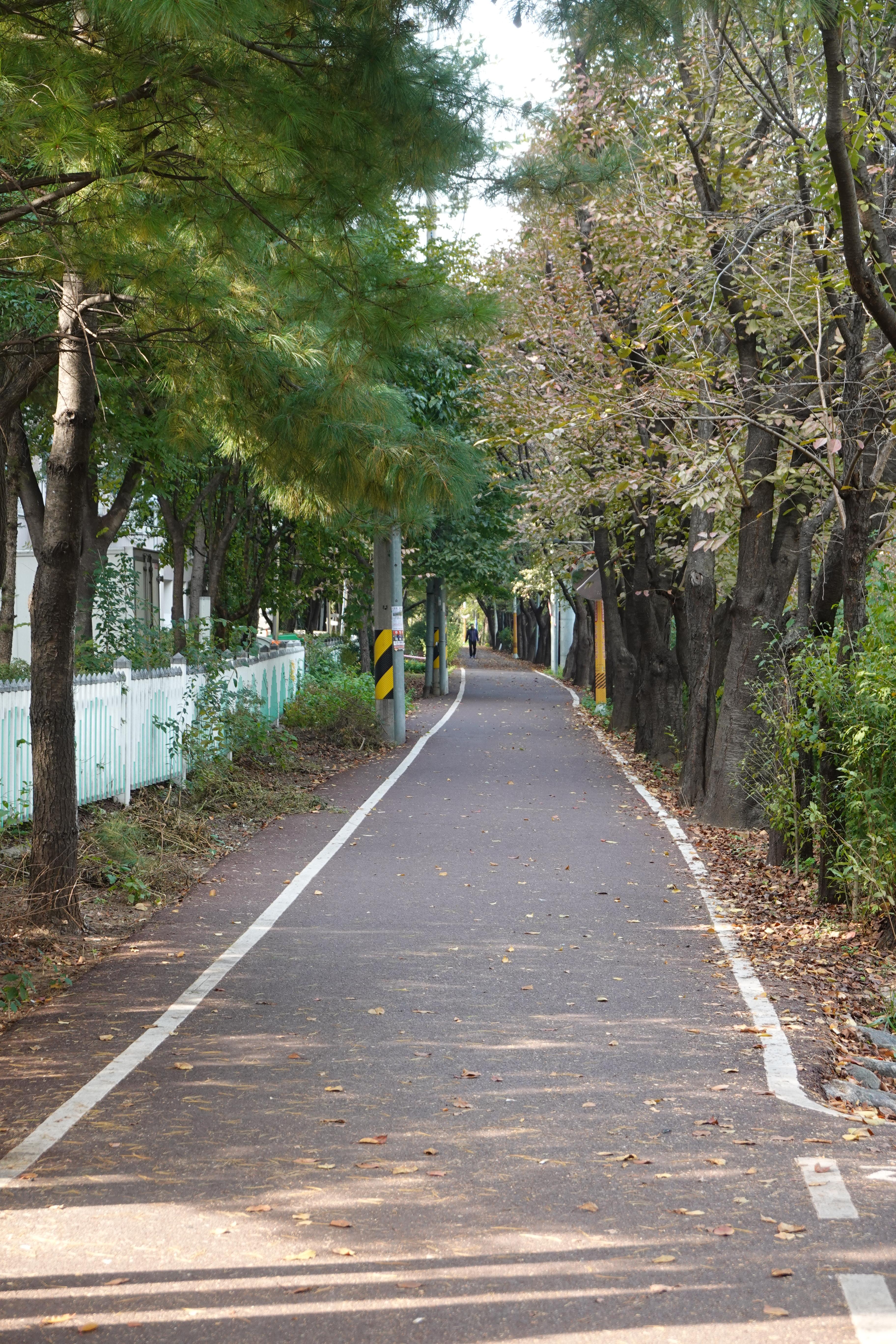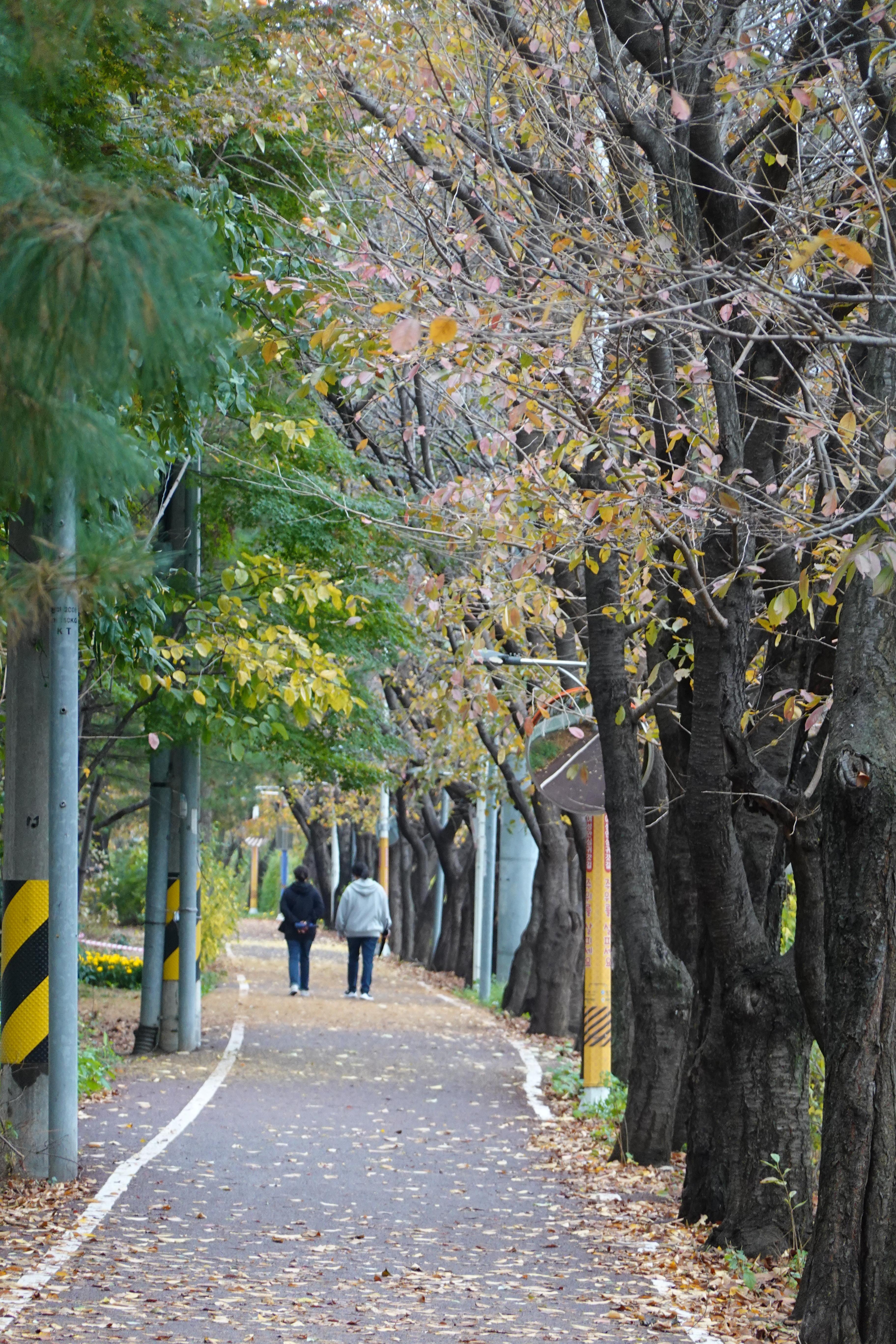 2023.11.18/ #도시기록 #가로수길 #안양2동/ 안양2동 안양천과 경남아너스빌 중간에 위치한 뚝방 사잇길. 1년 사계절 너무 예쁜길. 얼마전 SNS 페이스북에는 저 고즈녁한 길에 너구리가 나타나 어슬렁거리며 산보하다 사라졌다는 목격담과 사진이 올라오기도 했다.