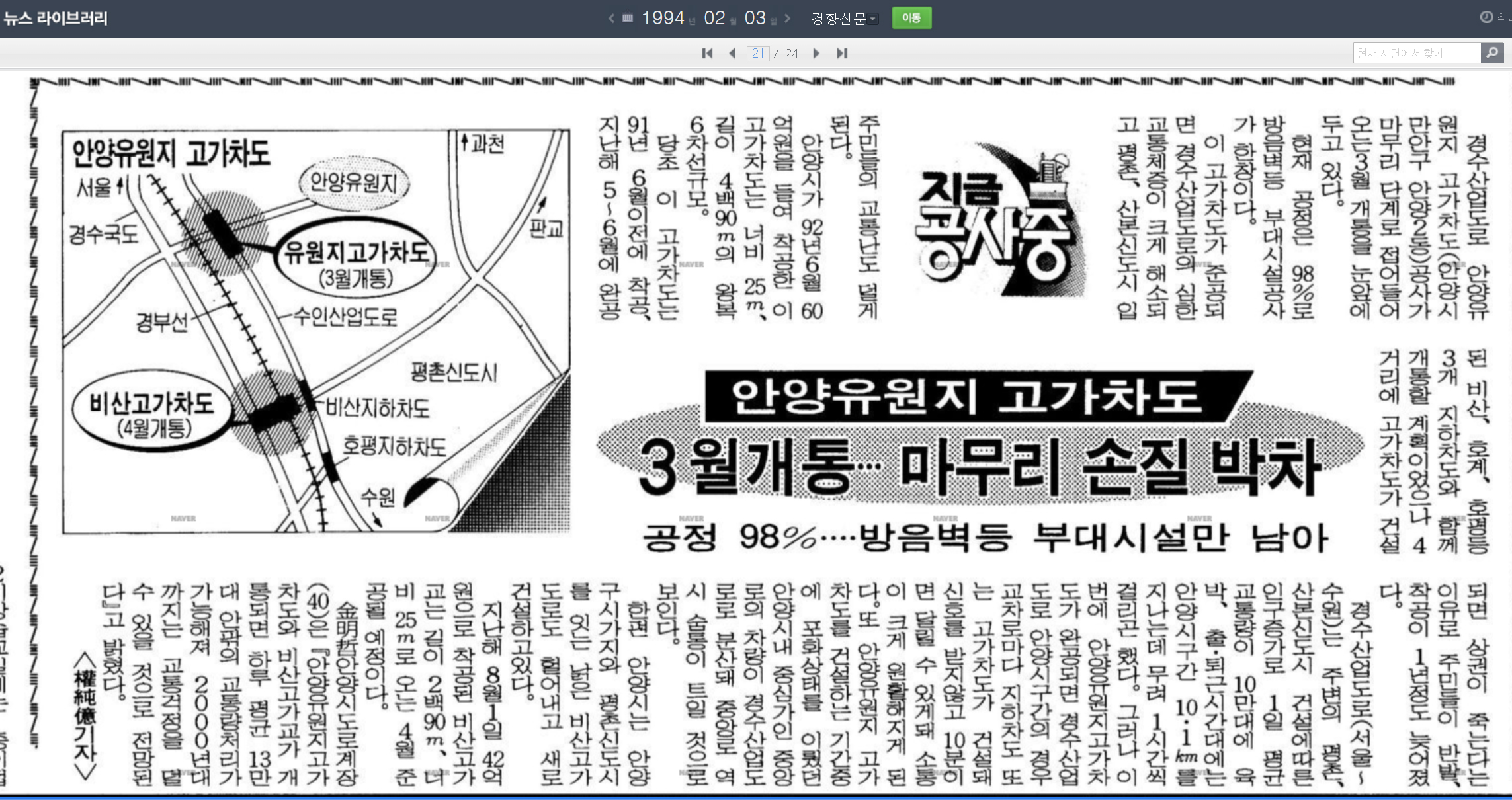 #옛신문 #안양 #기록 #역사 #경향신문 #19940203/