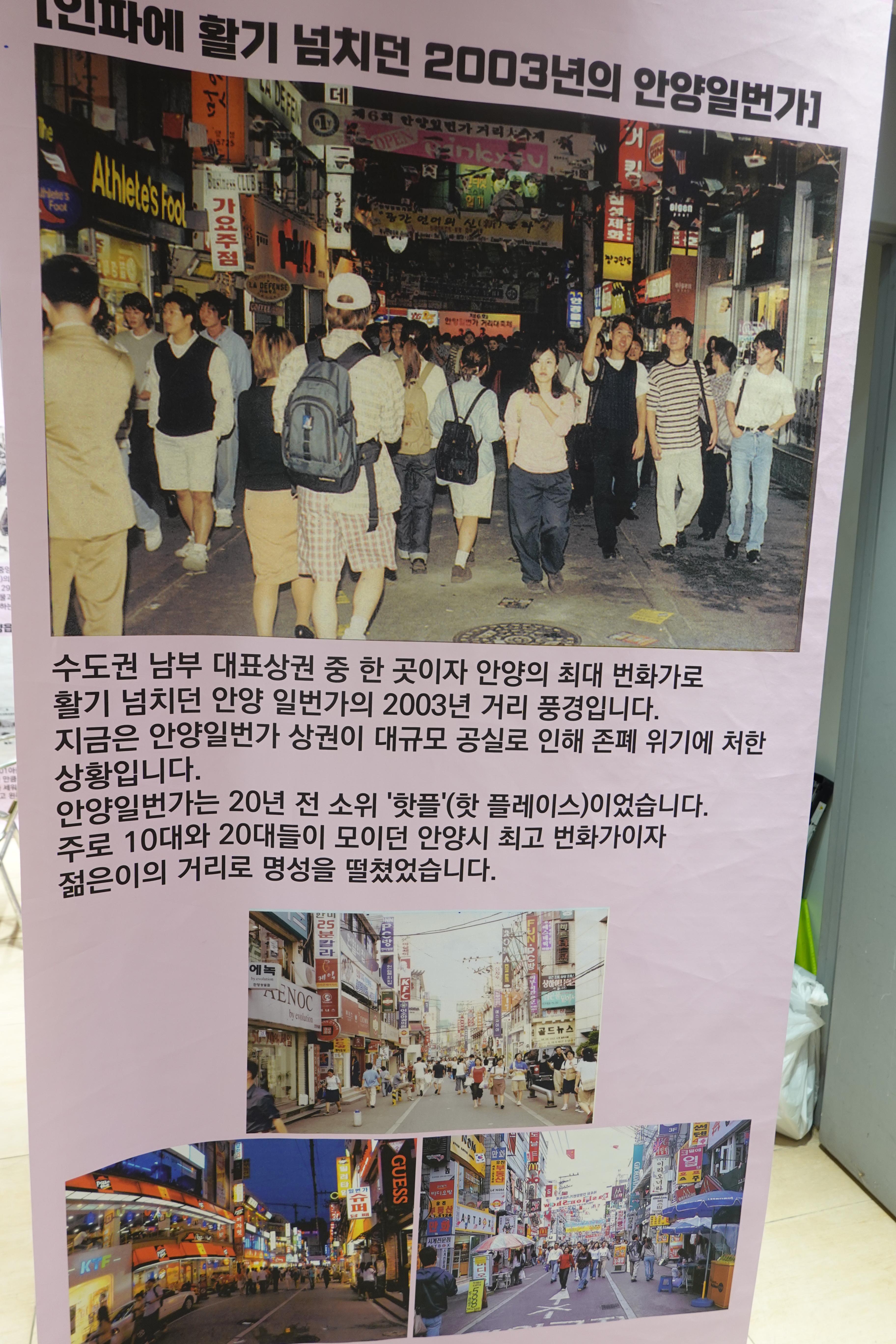 2023.11.22/ #도시기록 #안양일번가 #넘버원페스티발 #옛사진 #히스토리/ 안양일번가 중앙통로 빈 점포에 마련된 안양일번가 히스토리 전시관. 안양시(문화관광과)가 안양지역도시기록연구소 사이트에 올려진 사진과 글을 발췌하여 안양일번가 전시관을 꾸몄다.