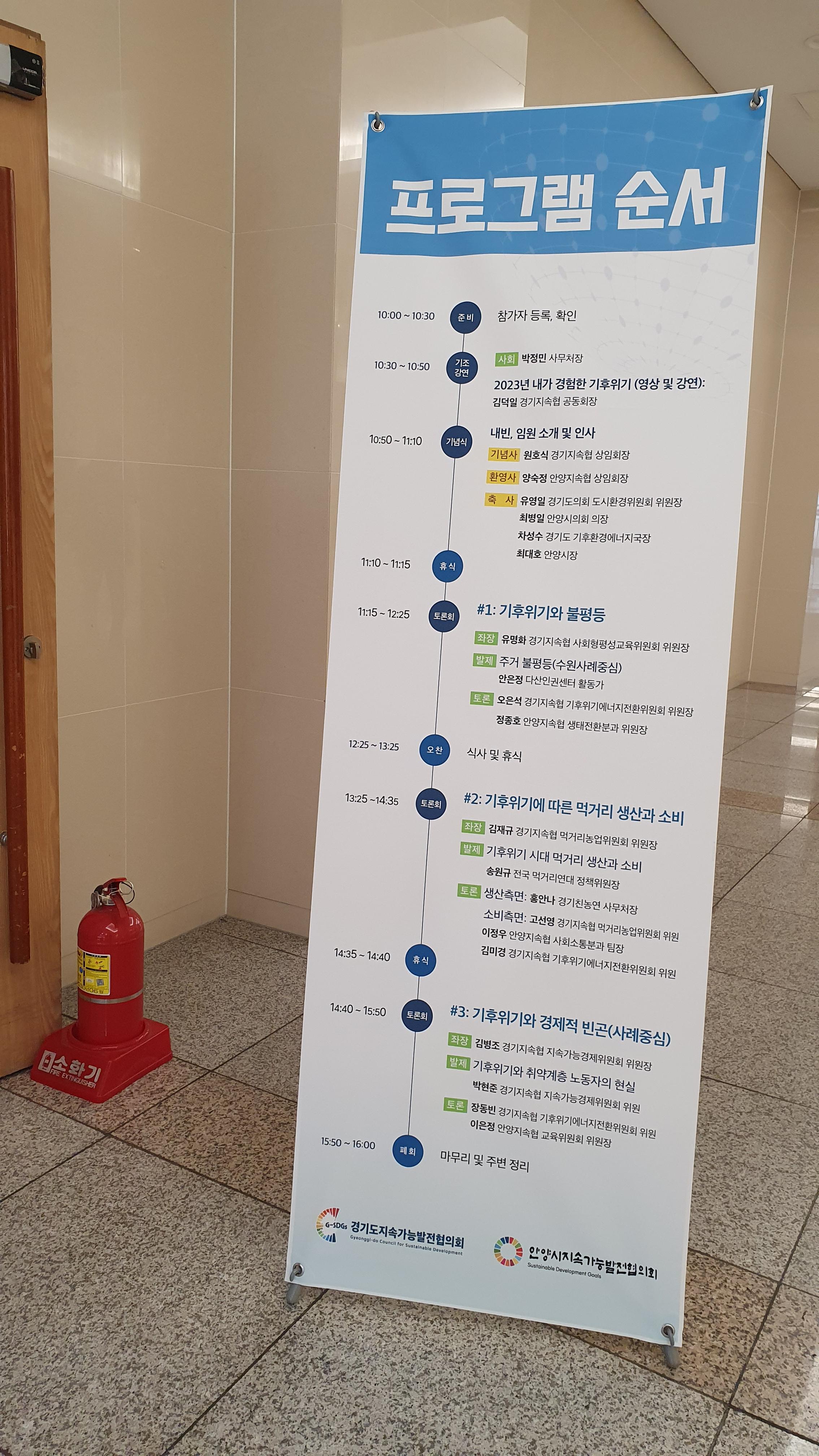 이날 행사는 오전 10시 참가자 등록에 이어 김덕일 경기지속협 공동회장의 ‘2023년 내가 경험한 기후위기’를 주제로 한 기조강연과 기념식 (내빈, 임원 소개및 인사)을 가진후 11시부터 ▲기후위기와 불평등 ▲기후위기에 따른 먹거리 생산과 소비 ▲기후위기와 경제적 빈곤 3가지 주제로 오후 4시까지 토론을 진행했다.