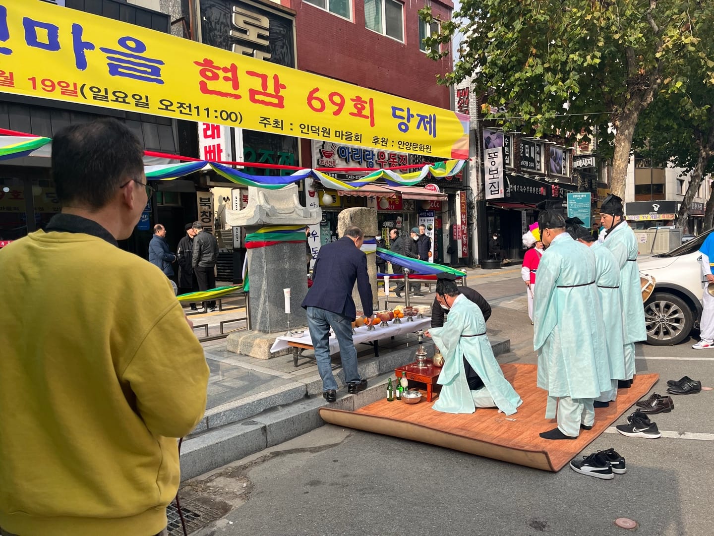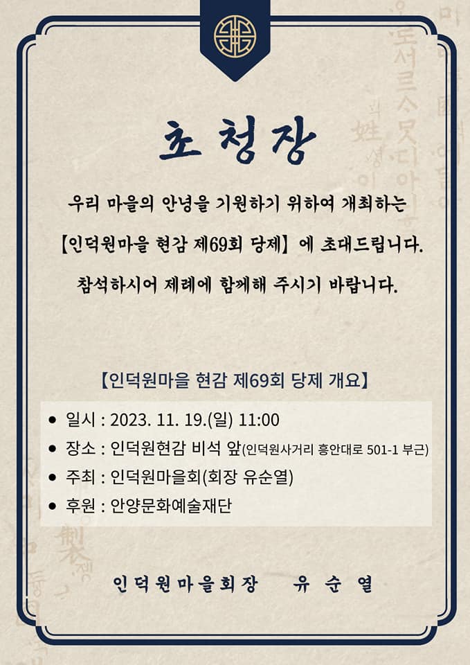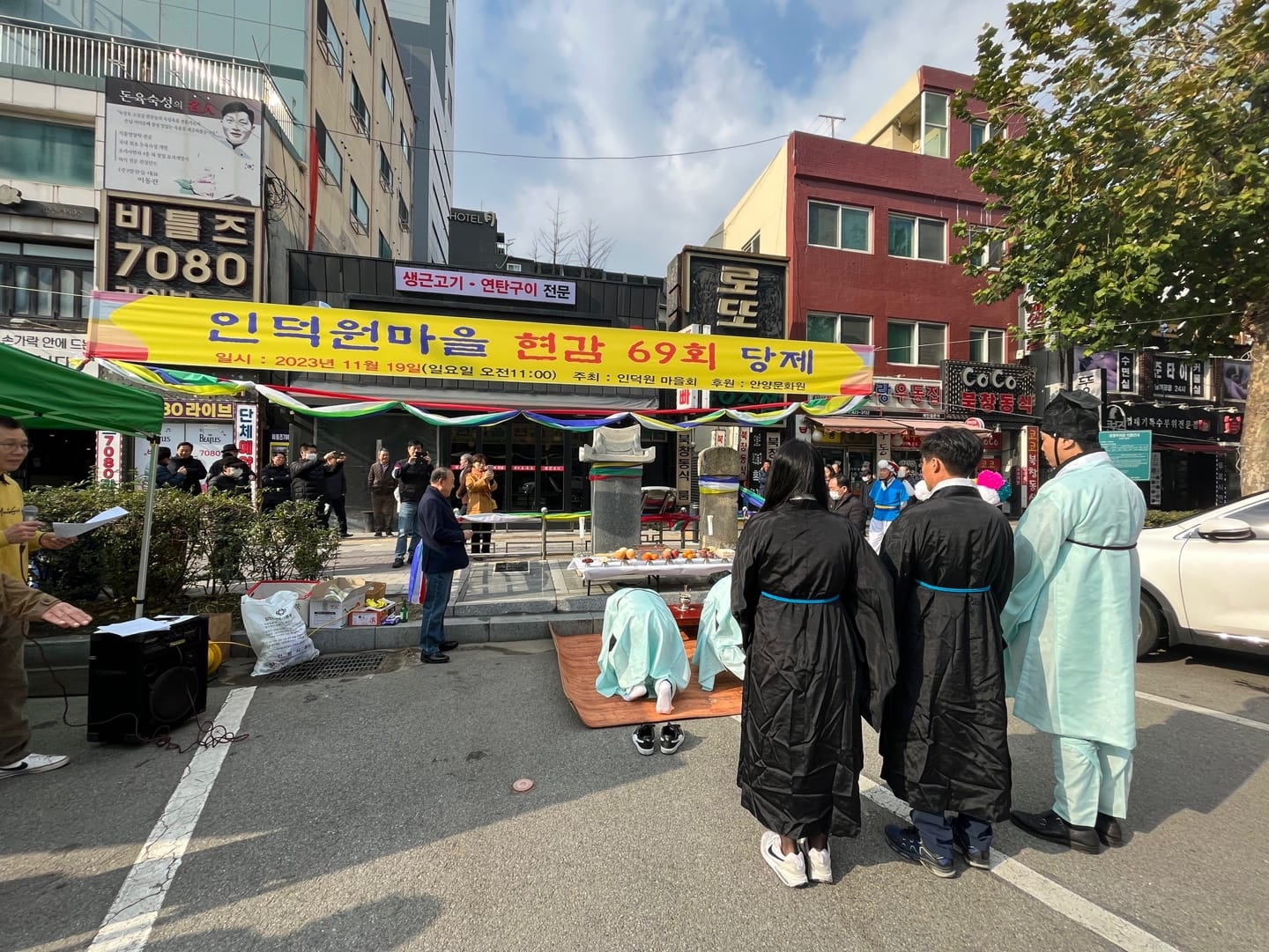 안양 인덕원사거리에 지리한 현감 비석(영세불망비) 앞에서 지난 11월19일 제69회 인덕원마을 현감당제가 인덕원마을회(회장유슌열)가 주최하고 안양문화에술제단 후원으로 열렸다.