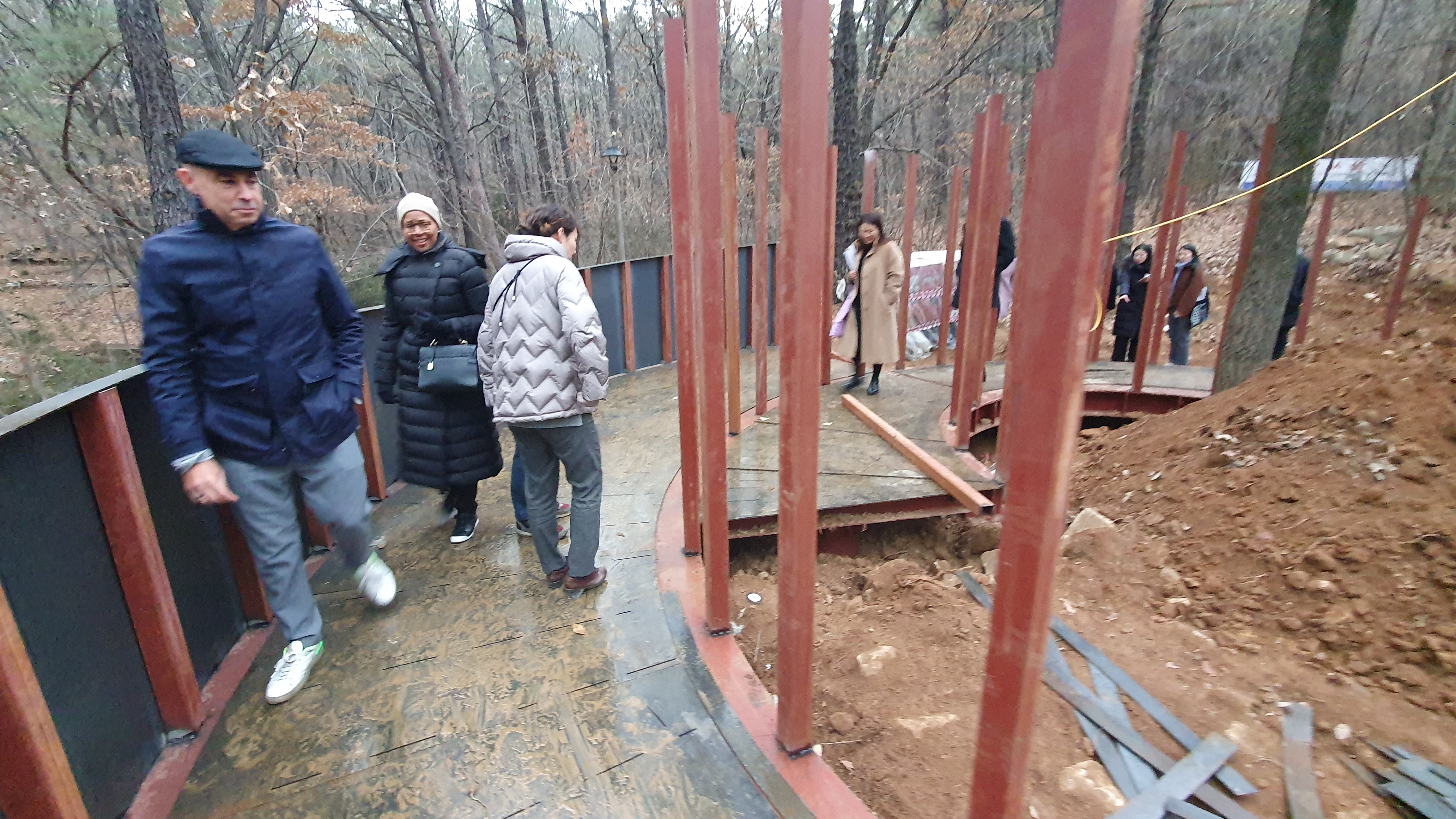 이에 주한네덜란드 대사 부부와 APAP7과 비밀의숲 작품을 설계한 넥스트 아키텍츠 관계자 그리고 기념식 참석 시민 일부가 작품 투어에 나섰으나 당초 11월 말까지 설치 완료할 예정이던 작품 설치가 이날까지도 완공되지않아 공사가 한창 진행중인 현장만 보고 내려와 아쉬움을 남겼다.