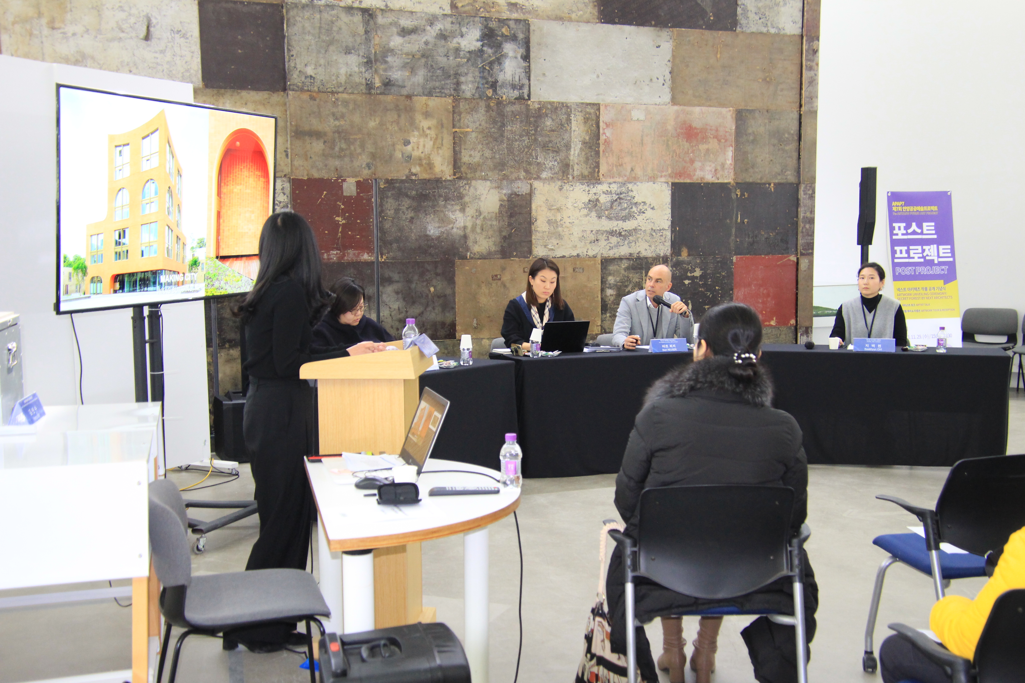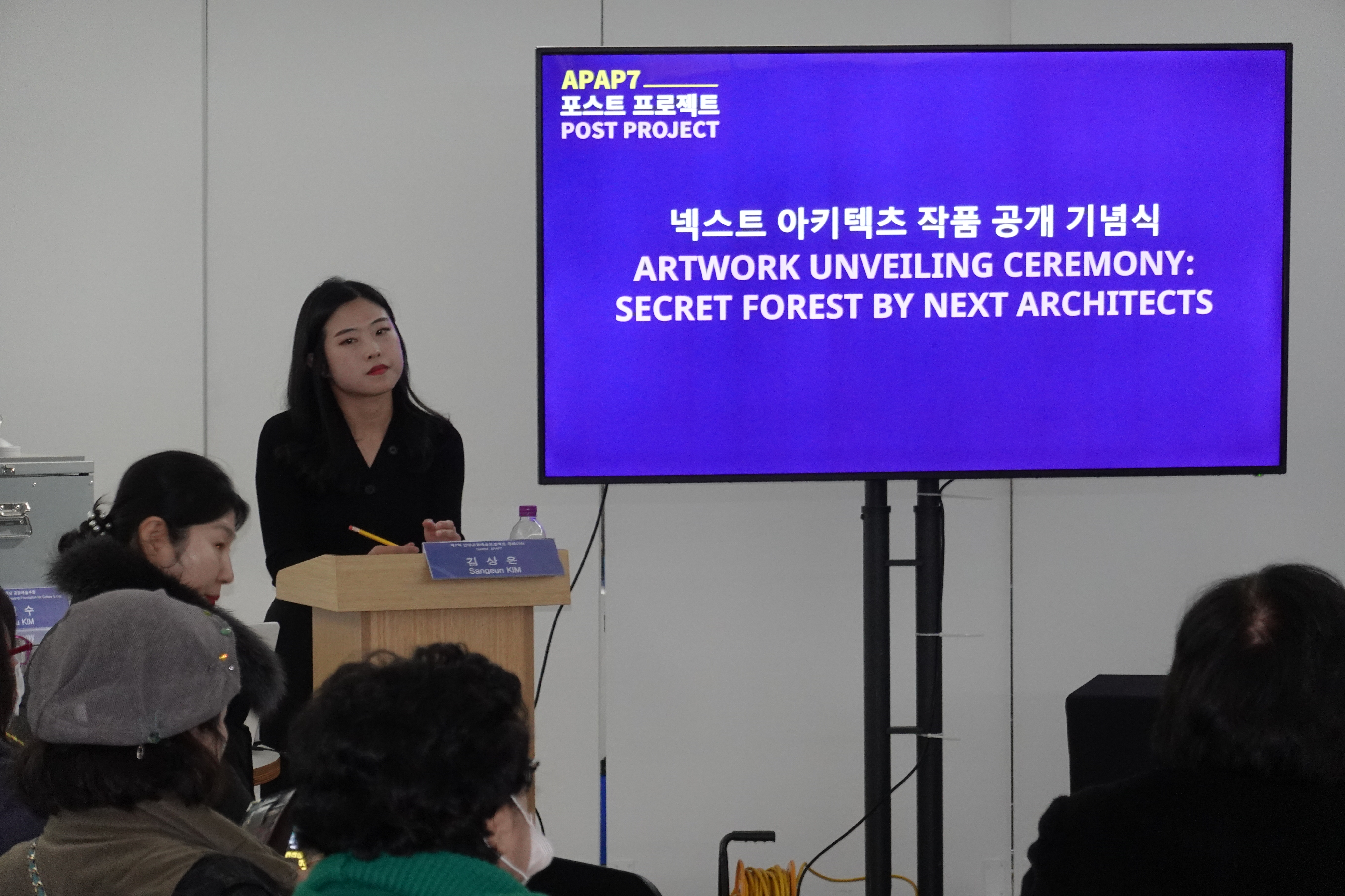 두 번째로 APAP7 참여 작가인 넥스트 아키텍츠의 출품작 ‘비밀의 숲’을 공개하는 기념식이 한/영 순차통역으로 진행됐다.