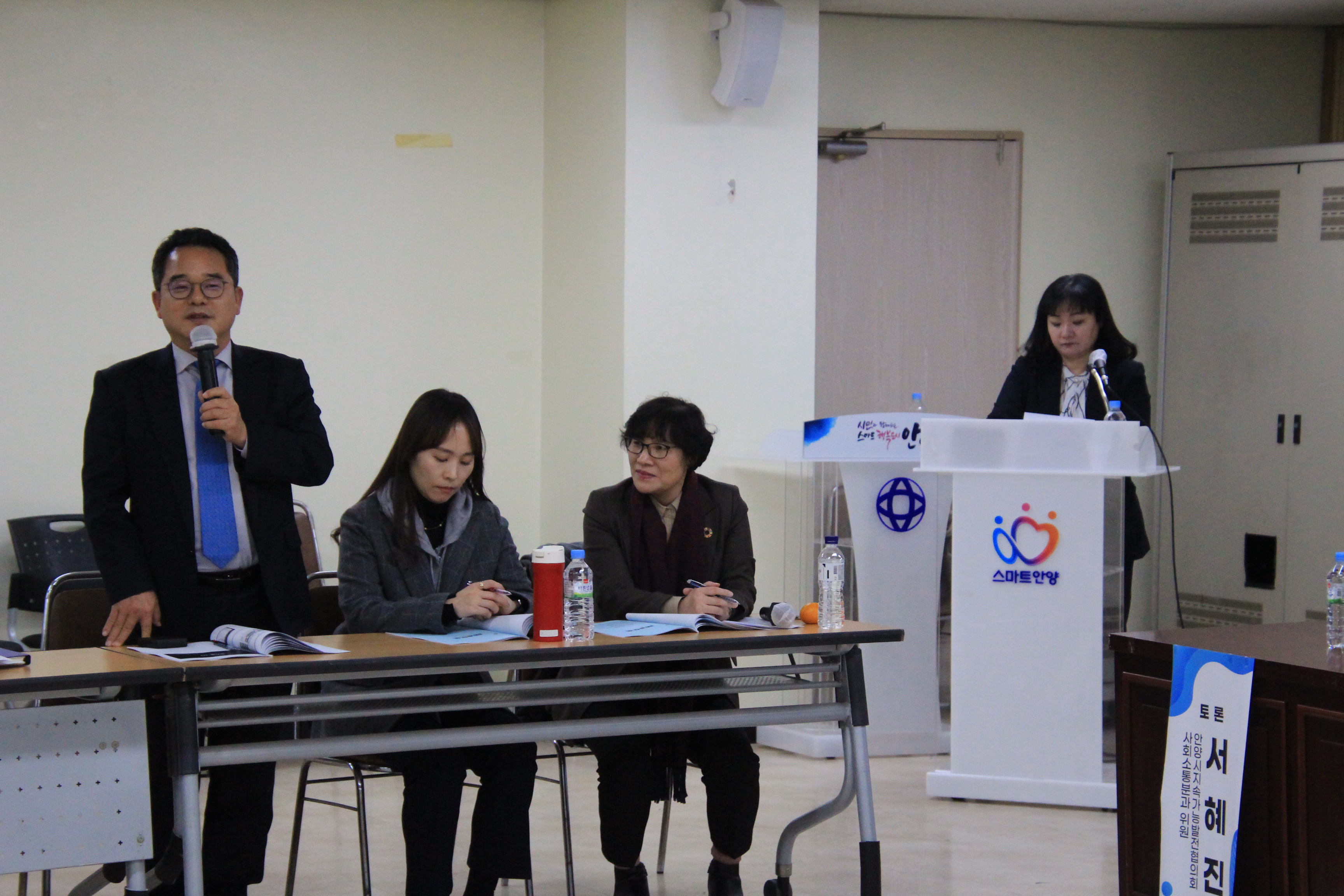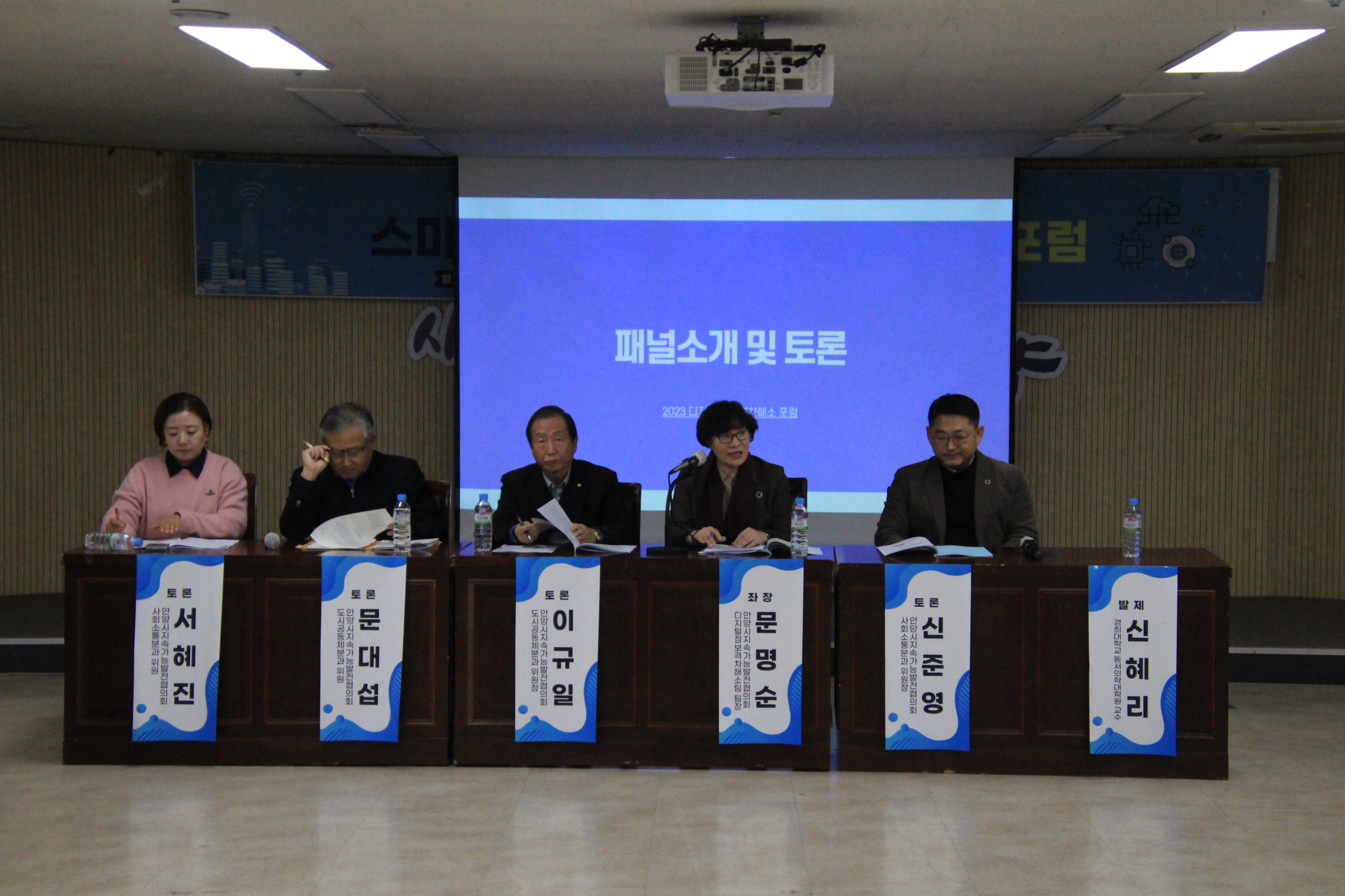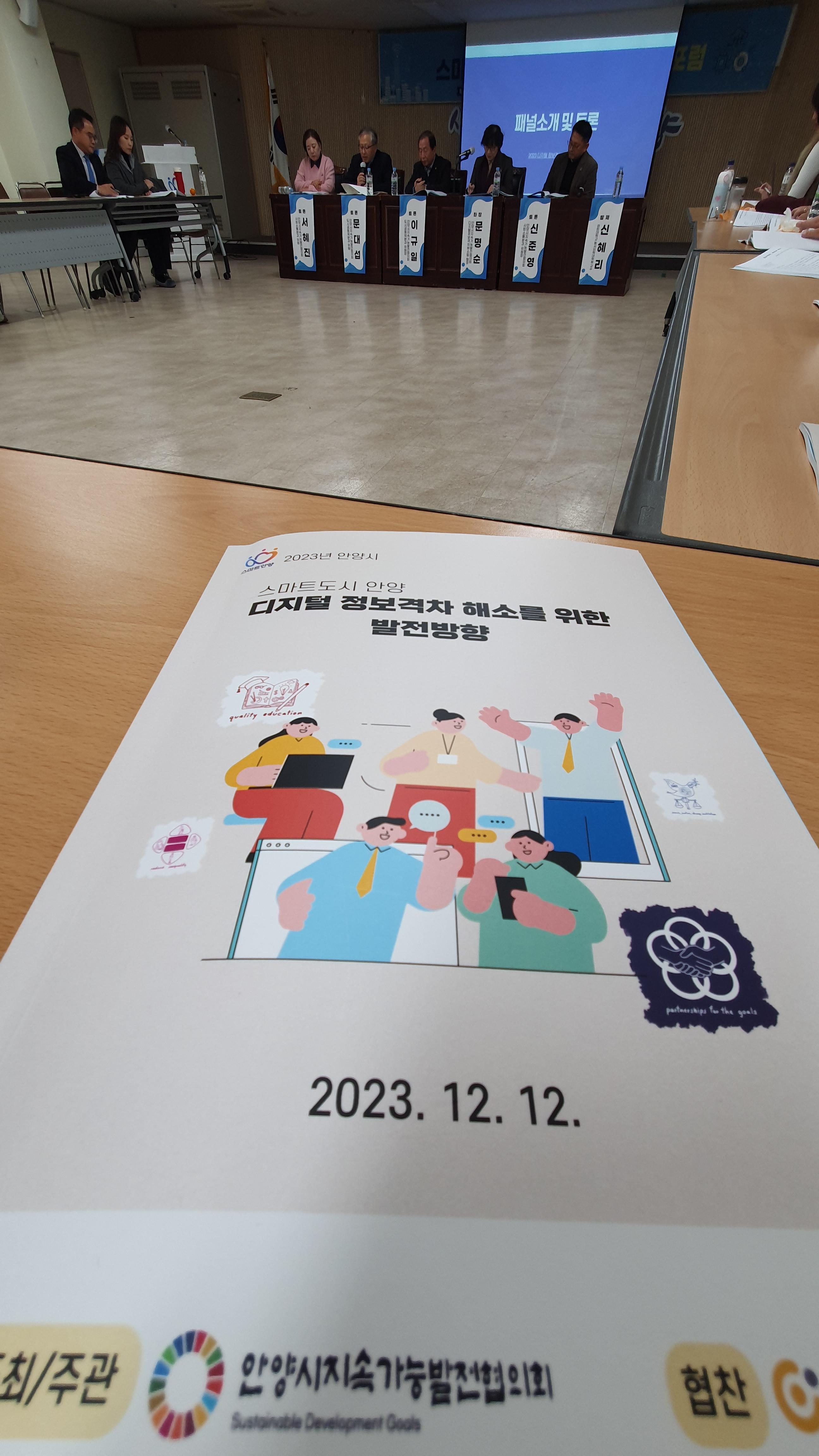 이어 안양시지속협 사회소통분과 문명순 팀장의 사회로 패널 4명이 안양시 디지털 정보격차 현황과 실제(안양시지속협 도시공동체분과 문대섭 위원), 디지털 문해교육과 교구재 개발사례( 안양시지속협 사회소통분과 신준영 위원장), 디지털 소외계층을 위한 대응전략( 안양시지속협 사회소통분과 서혜진 위원), 시민이 바라보는 정보격차의 문제점 및 필요성( 안양시지속협 도시공동체분과 이규일 위원장)에 대해 얘기하고 제안했다.