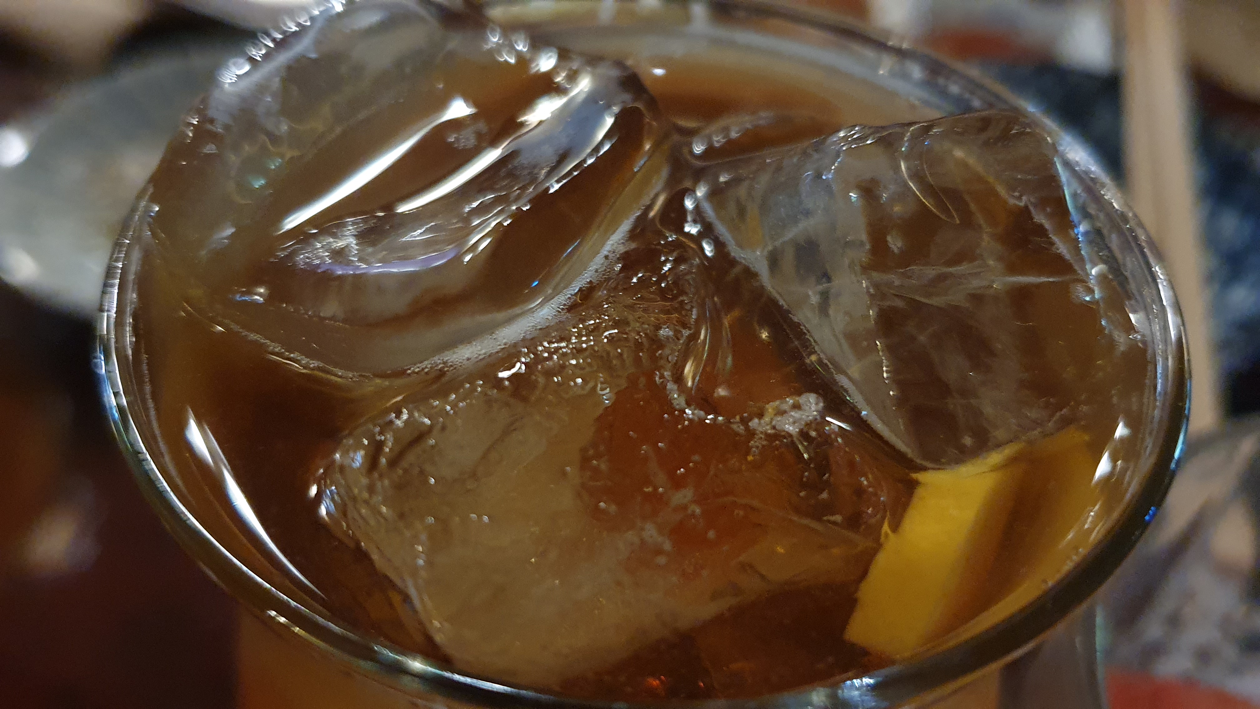 음식과 술을 어느정도 먹다보면 두번째 서비스로 반으로 자른 싱싱한 귤이 나오고 이후 또다시 바나나를 구워 마치 디저트같은 바나나 브륄레를 갖다준다. 설탕을 녹여서 코팅해 달달하고 너무 맛있다.