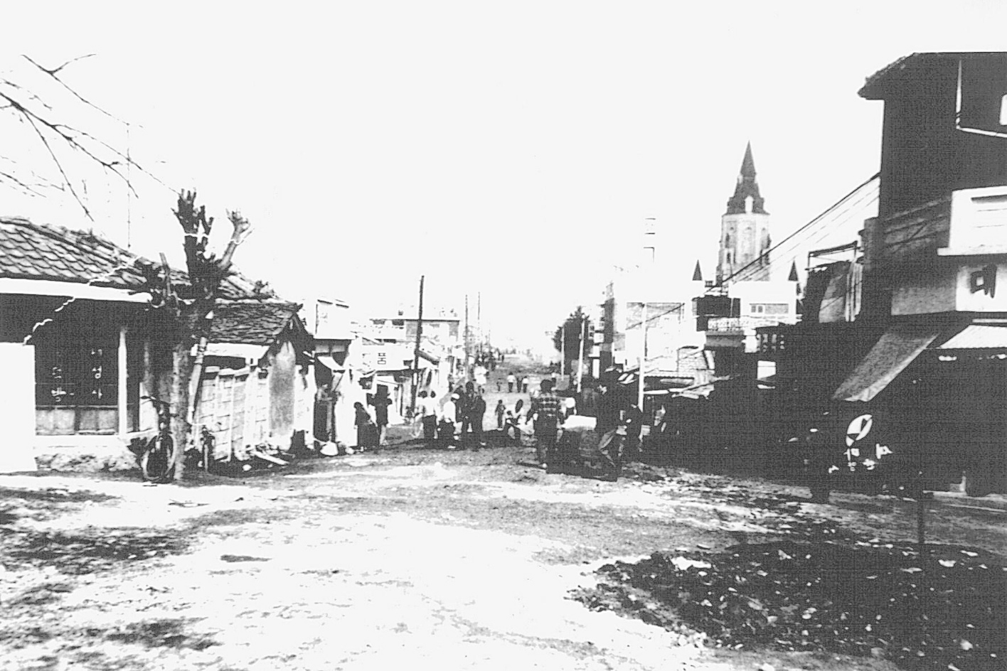 2023.12.20/ #아카이브 #옛사진 #안양 #장내동 #담안 #장내동성당/ 1970년 안양시 안양4동 장내동 (墻內洞. 澹安) 천주교성당 주변 사진으로 근명학교 가는길 냉천로 사거리에서 중앙시장과 장내동성당(현 중앙성당) 방향 풍경으로 안양시청 홍보실에 근무했던 이정범 선생이 찍은 것이다.