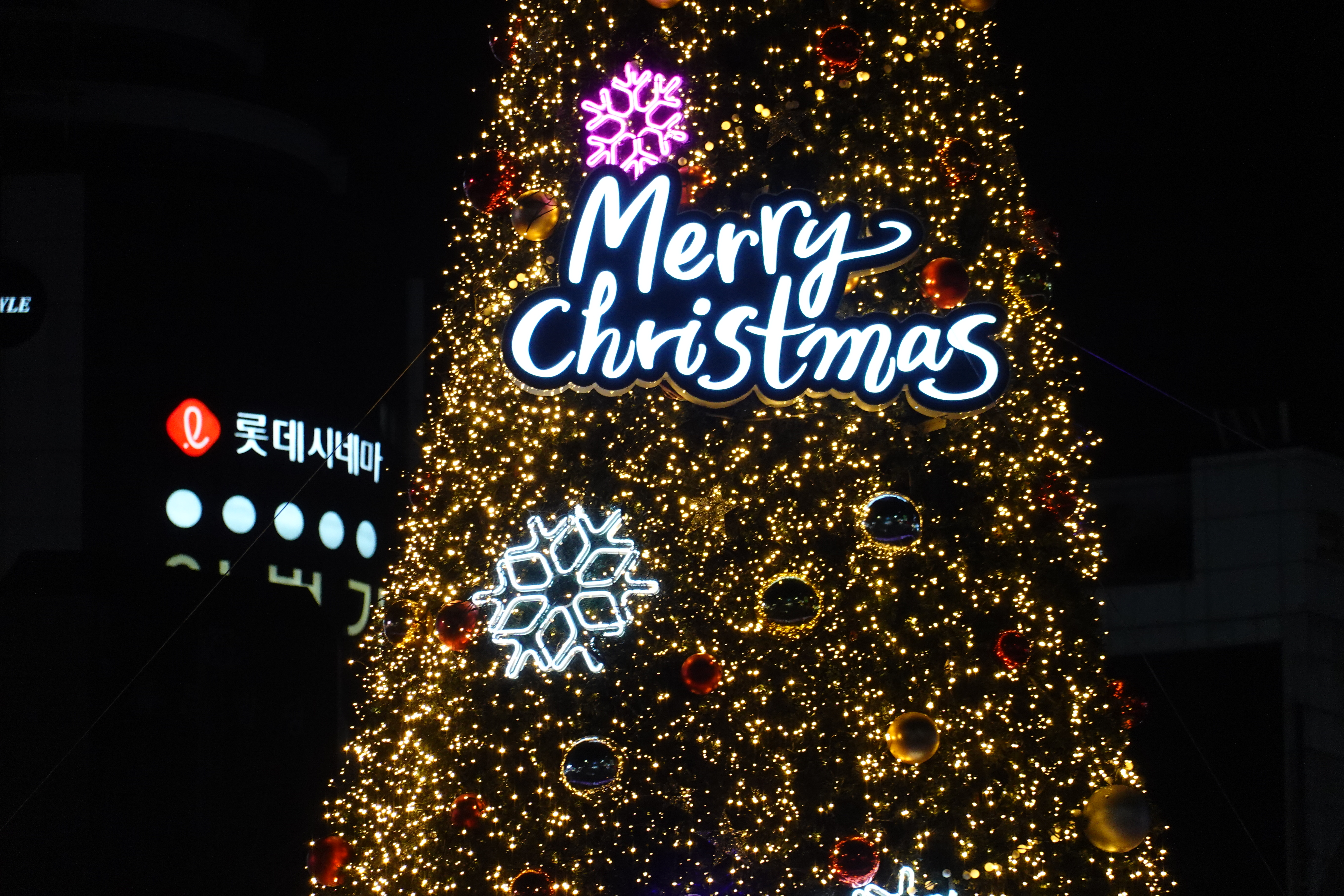 2023.12.21/ #도시기록 #안양 #크리스마스 #성탄트리/ 평촌(범계)문화의거리에 설치된 크리스마스트리. 범계로데오상인회연합회에서 설치한. 이곳 크리스마스 트리 꼭대기에는 멋진 별이 올라가 있는 반면 안양역앞 로터리에 기독교연합회에서 설치한 크리스마스 트리 꼭대기에는 십자가가 올라 있어 sns상에서 누리꾼들로부터 빈축을 사고 있다.