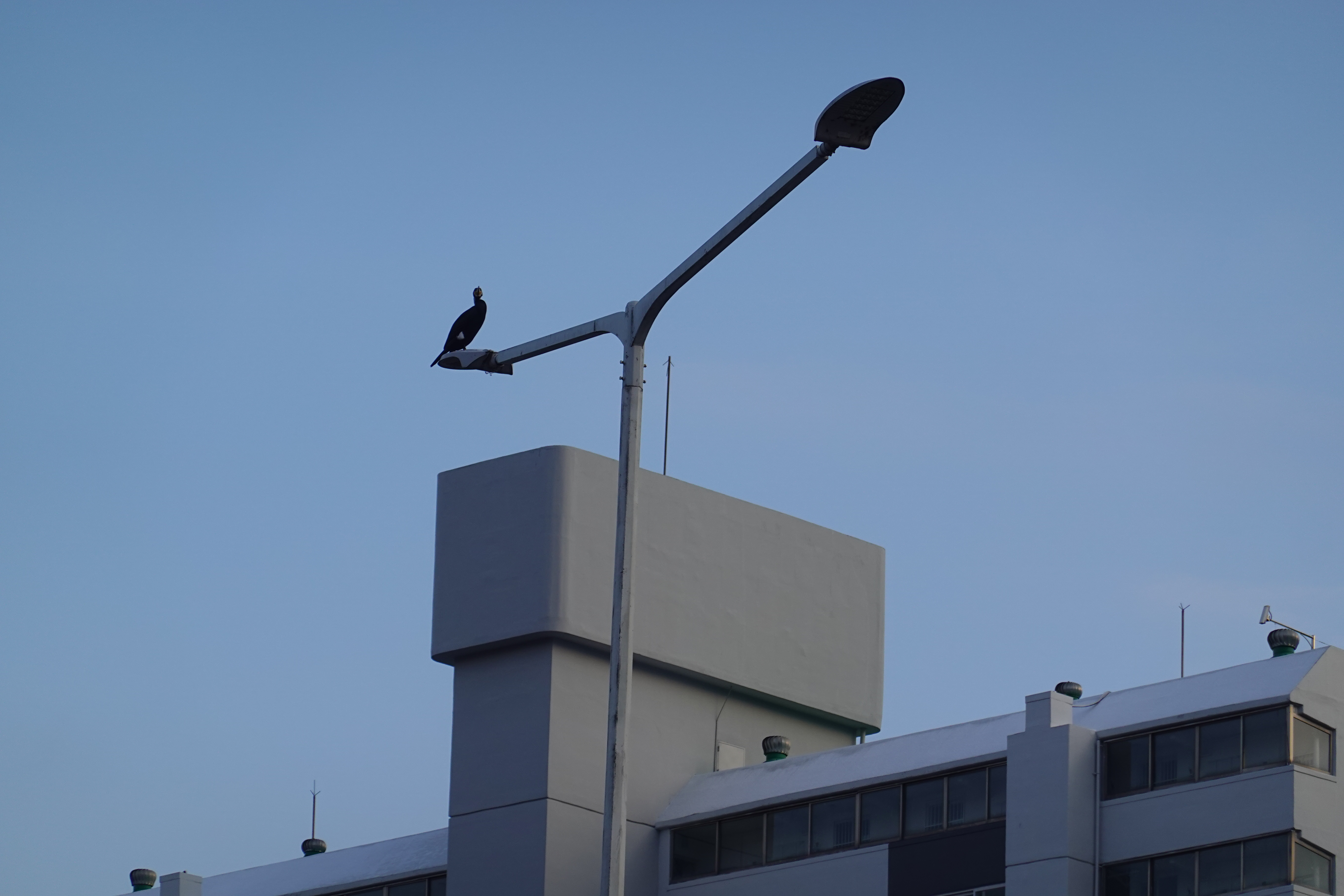 2023.12.24/#도시기록 #민물가마우지 #안양 #학의천 / 히천 생태계의 포식자 민물가마우지. 안양 학의천에 민물가마우지가 모습을 시작한 것은 2015년 무렵. 안양천과 학의천에 한두마리 모습을 보이기 시작하더니 학운공원 건너편 비산대로변 apap작품과 내비산교 다리 가로등 위 꼭대기가 녀석들의 아지트가 됐다. 이곳에서 쉬다가 가까이는 학의천의 다소 물이 깊은 곳, 멀리는 안양천 석수동 충훈고앞, 전파교 앞까지 날아가 물고기 사냥을 하면서 텃새로 자리 잡은것 같다. 강추위에 한동안 안보이더니 날씨가 풀리자 녀석들이 다시 나 타났다.