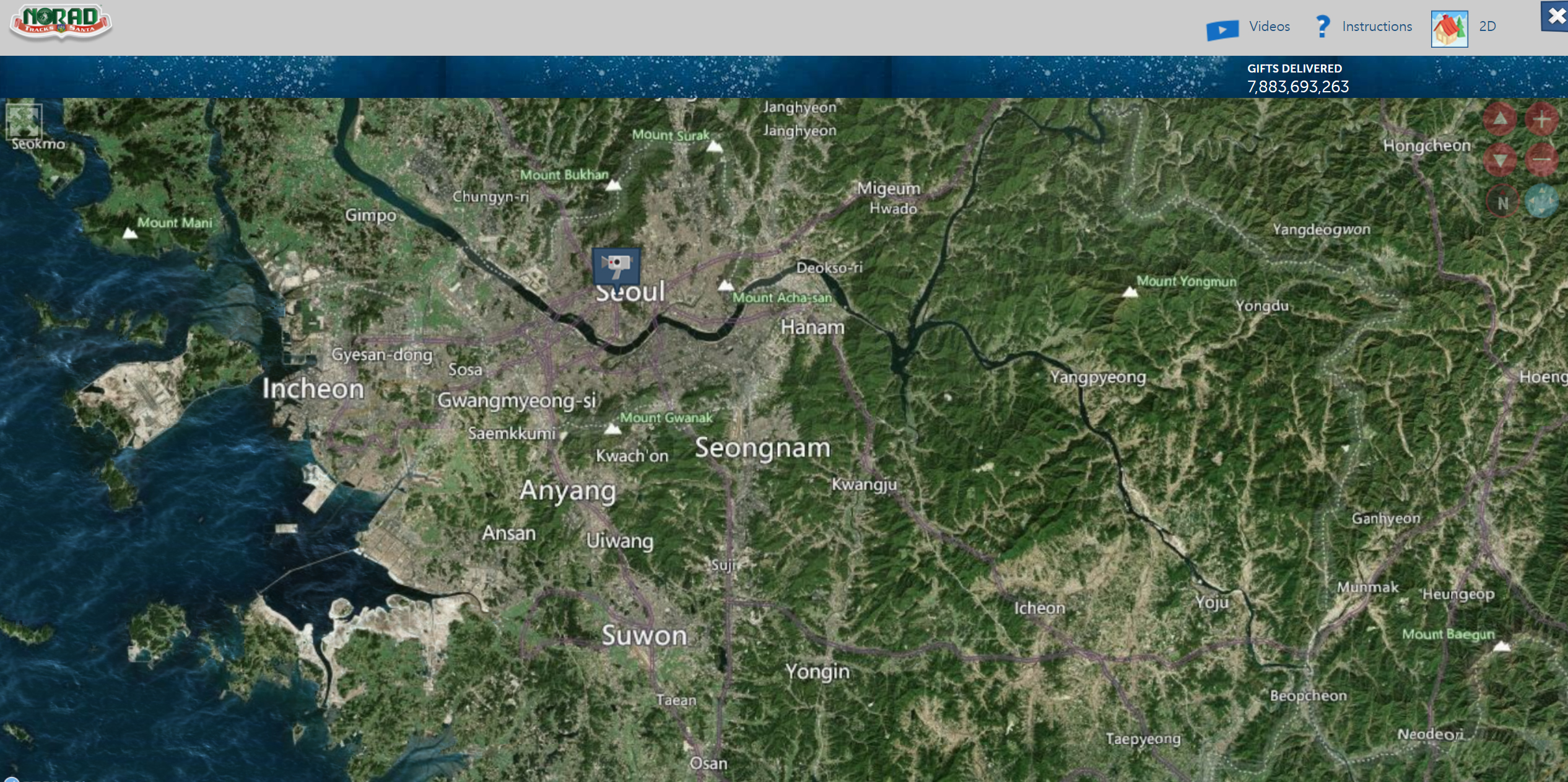 NORAD의 산타클로스 위치 추적 웹사이트에 따르면, 산타는 북극을 출발해 뉴질랜드와 호주를 돌고 24일 밤 11시 25분쯤 서울 상공에 도착했다고 한다.