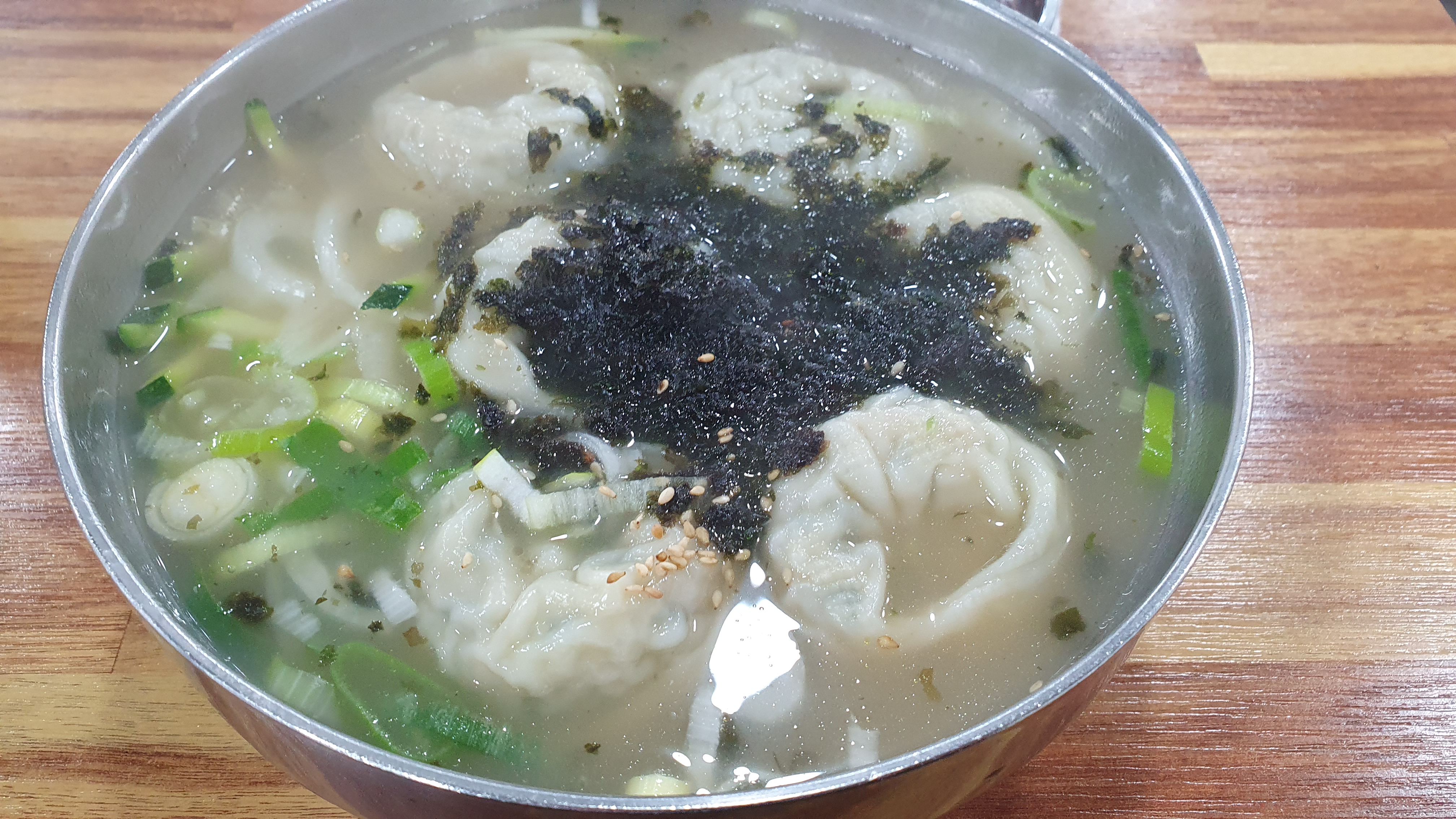 2024,01.01/ #한끼 #새해 #만둣국 #홍두깨칼국수 #안양 #중앙시장/ 새해 첫날, 그래도 떡국 한그릇 먹기위해 안양 중앙시장으로 마실. 맛보려던 다복만두가 문을 닫아 홍두깨칼국수 2호점으로 갔는데 만둣국밖에 없다. 양파와 애호박 국물에 만두 6알이 들어간 1그룻에 5000원, 맛은 역시 만두전문점 다복만두가 한수위다. 하지만 김치는 홍두깨가 더 맛나다.