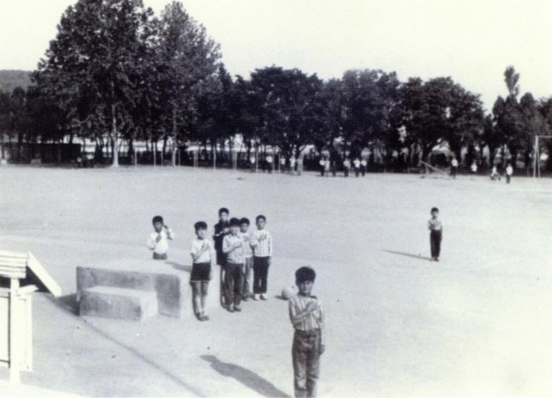 1. 고천초교 운동장에서의 국기하강식(1971)