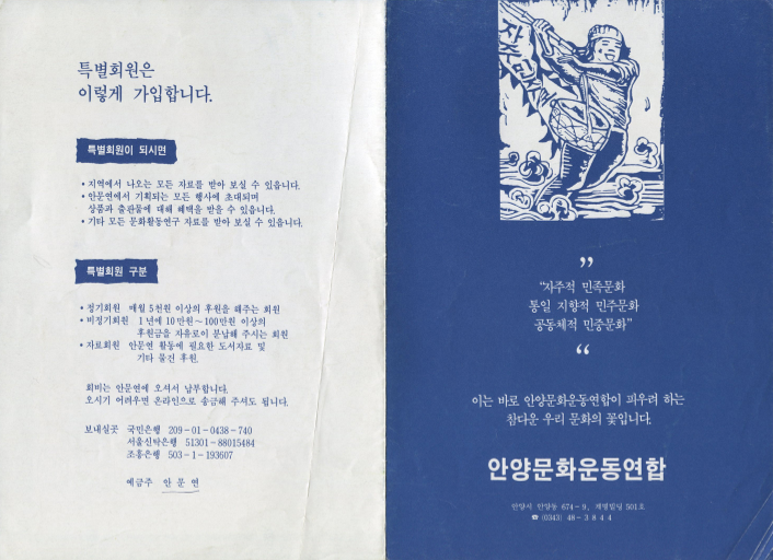 이와 함께 1987년 하반기부터 안양독서회, 안양민요연구회, 우리그림 등의 문화단체가 창립되어 활발한 활동이 시작되면서 1988년에는 이들이 연대체로 결성하여 안양문화운동연합으로 발전하면서 안양권에서의 문화운동을 주도적으로 이끌고 꽃피우는 계기를 만들었다. 자료집 전체 내용 PDF 파일로 보기: