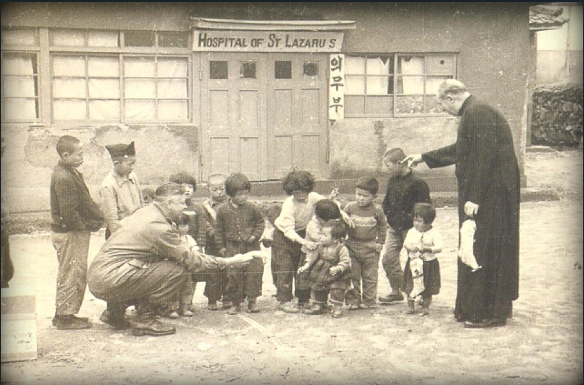 2024.01.18/ #아카이브 #옛사진 #기록 #성라자로마을 #의왕 #since1950/ 의왕에 자리한 성라자로마을의 10950년대 사진으로 의무부 라자니 신부님과 아이들 모습이 담겨있다.