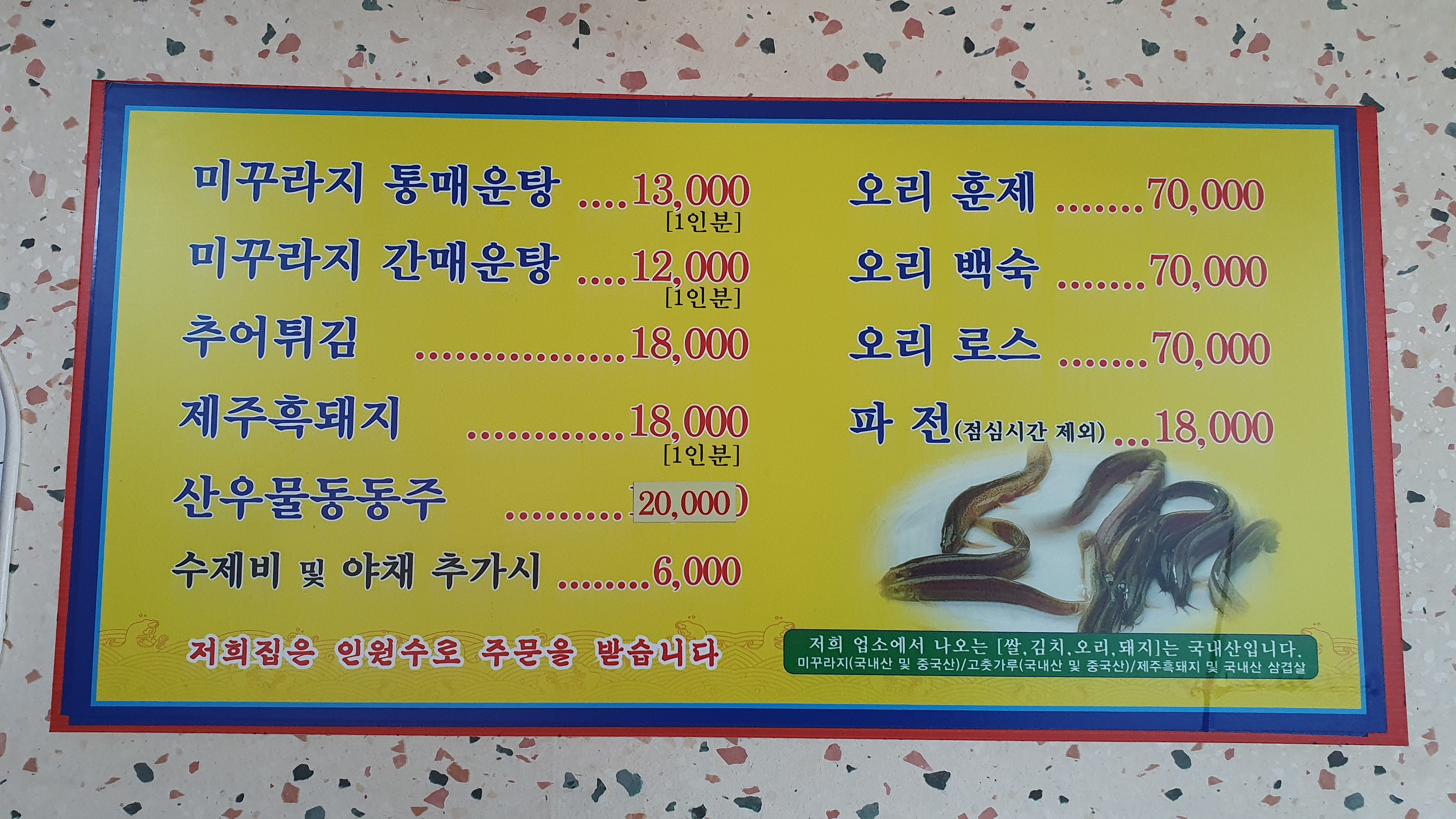 ◆ 대표메뉴 : 미꾸라지통매운탕 12,000원, 미꾸라지간매운탕 11,000원