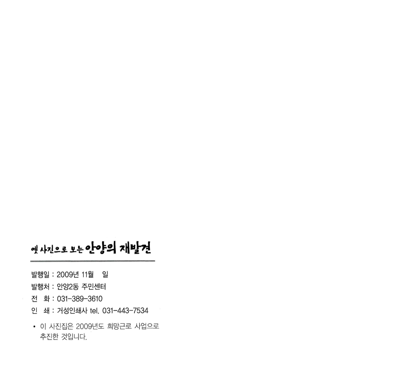 옛사진으로 보는 안양의 재발견 사진집(2009년)