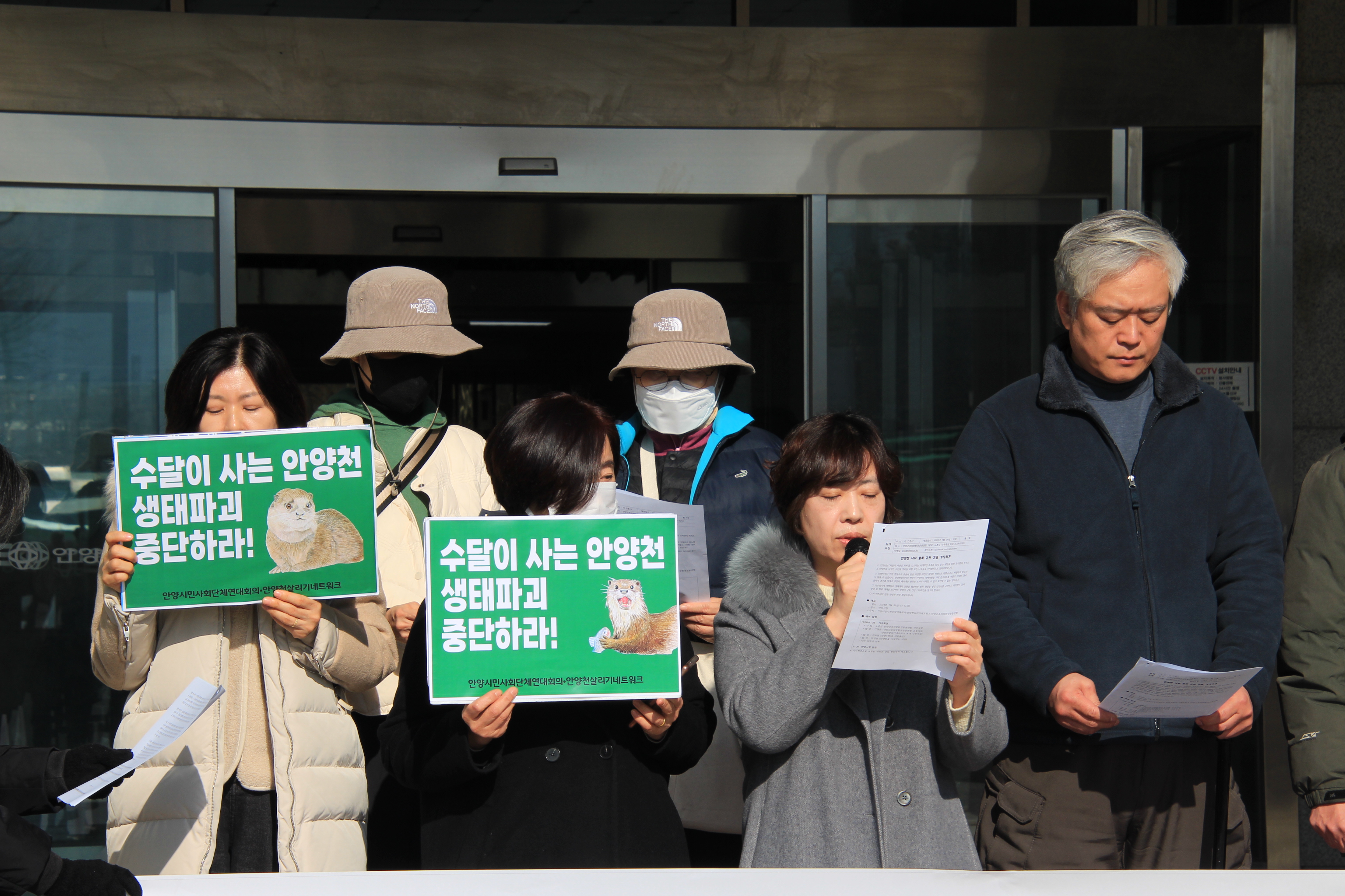 안양군포의왕환경운동연합, 안양YMCA, 사)안양군포과천의왕YWCA, 안양여성의전화, 안양천살리기네트워크, 안양시민사회단체연대회의 지역 환경·시민단체 활동가들은 31일 오전 안양시청 현관앞에서 열린 긴급 기자회견에서 하천의 생태를 무시하고 치수에만 집중하여 하천 관리를 하고 있음을 규탄하고 무차별적 나무 벌목에 대한 시장 사과와 기후위기 시대에 맞는 지속적이고 생태친화적인 하천 관리 방안 수립을 강하게 요구했다.