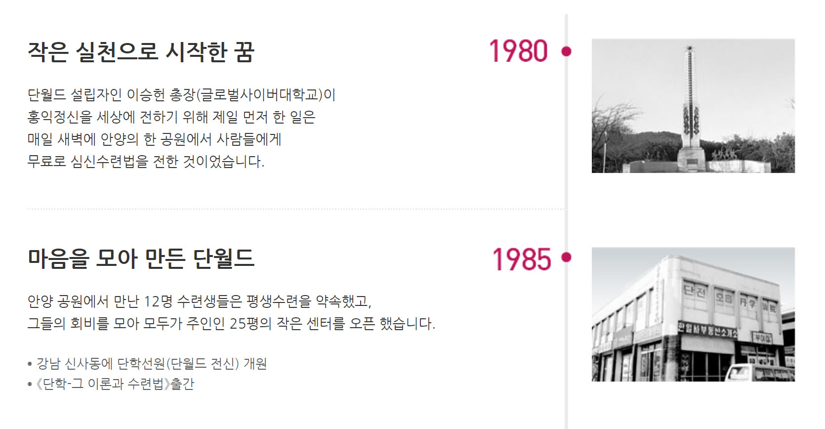 인류의 전일적(全一的) 건강 증진이라는 비전을 가지고 설립된 단학선원은 줄곧 민족 고유의 심신수련법인 단학과 인간의식의 무한한 진보를 돕는 뇌호흡을 국내뿐만 아니라 해외에 보급해 왔다. 지금까지 단학을 통하여 전 세계 100만명 이상의 사람들이 수련을 하고 있고, 실무진도 1200여명에 이르렀다. 국내 포함, 350여 개 지역에 단 센터라는 이름으로 단학선원이 설립되어 있고 현재 전국에 300여개 지원이 운영되고 있다.