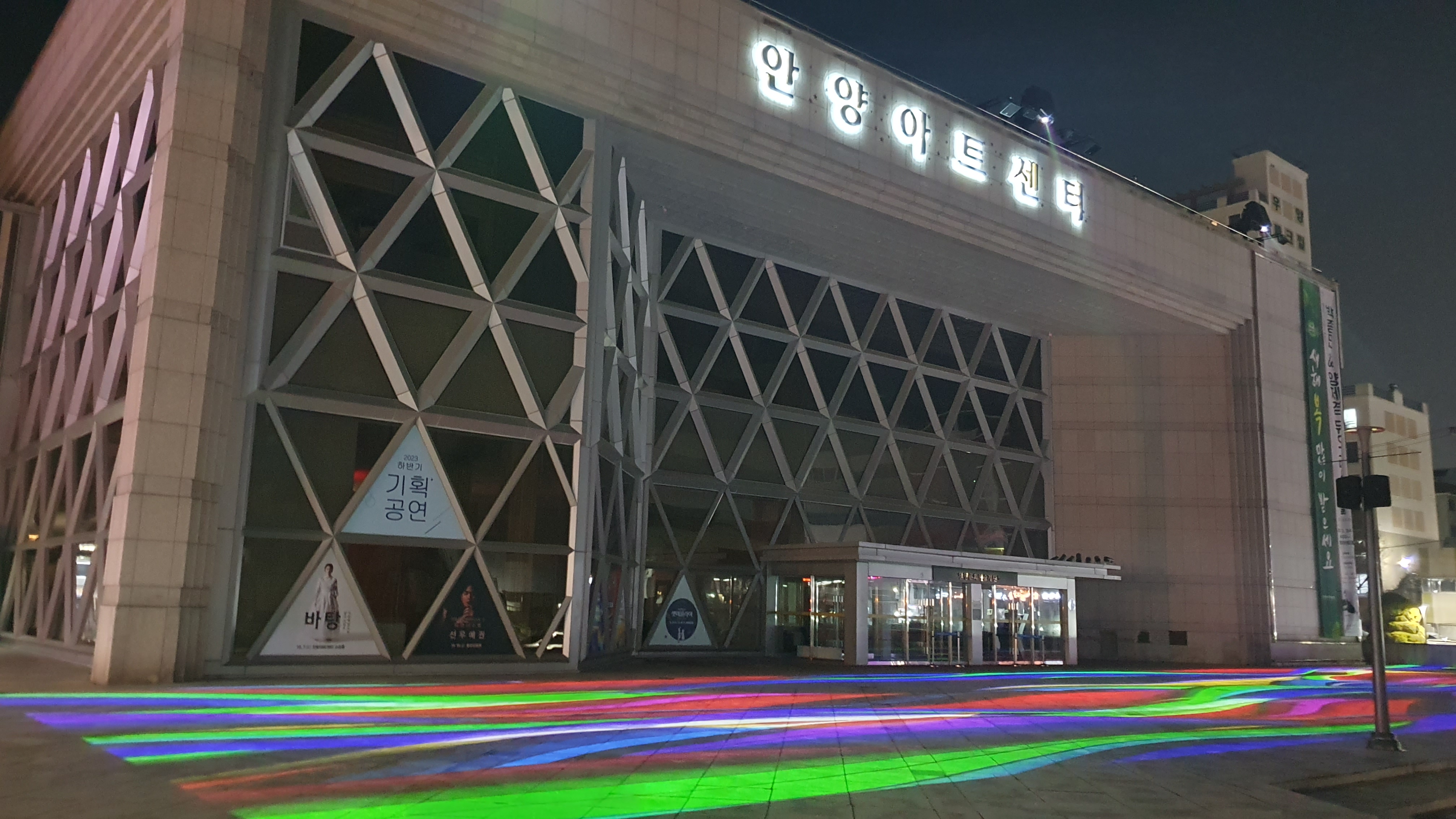 안양아트센터 광장의 미디어아트쇼는 안양아트센터 옥탑부에 영상 투영 조명기구 3대를를 설치하고, 광장 바닥에 길이 45m, 폭 10.5m 규모의 거대한 미디어아트 영상을 비추는 것이다.