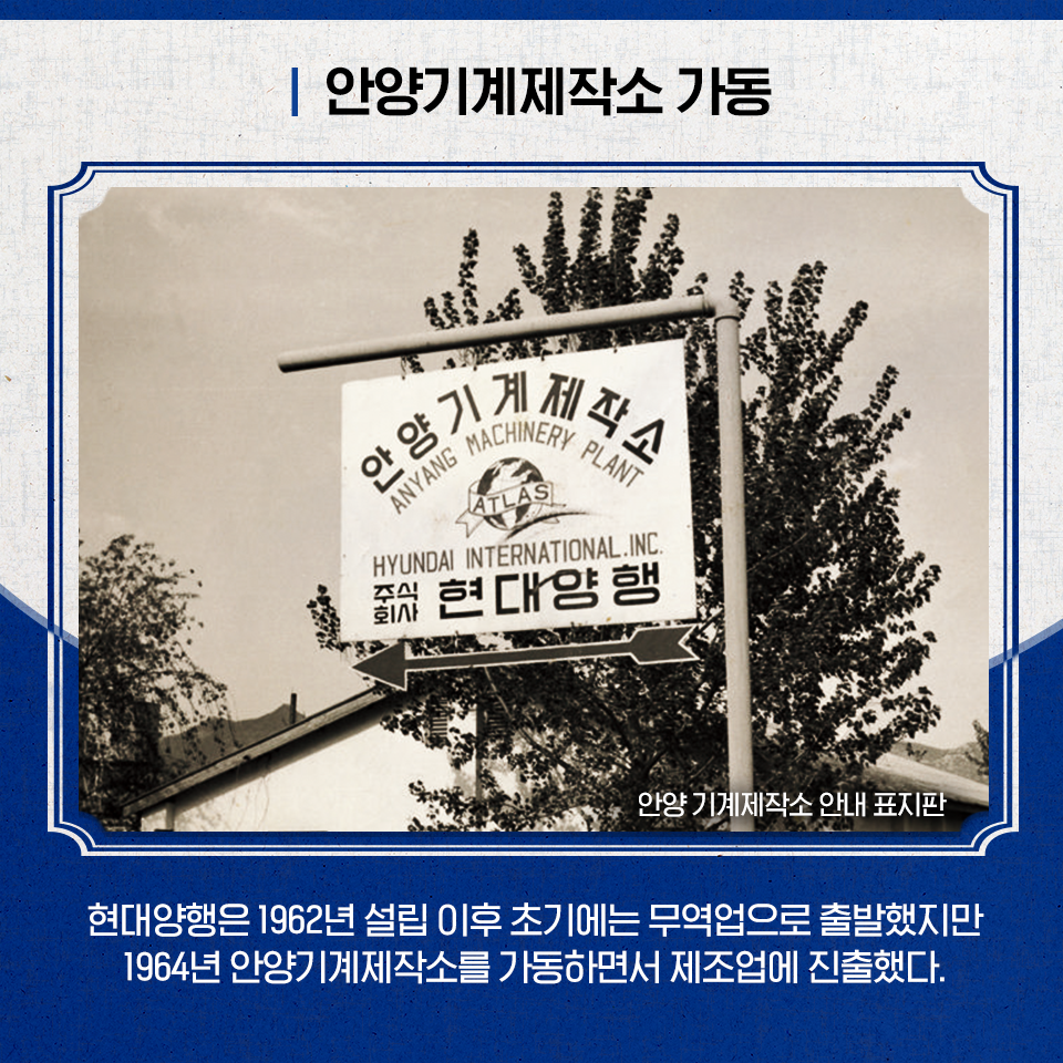 1970년대 들어서면서 현대양행은 안양기계제작소의 자동차 부품 생산이 본궤도에 오르며 기계공업으로 그 활동 영역을 넓혀간다