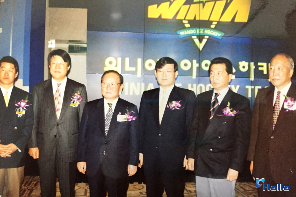 1994년 12월 창단한 만도 위니아 아이스하키팀은 그 뒤로 승승장구를 거듭합니다. 1996년 유한철배 아이스하키대회에서 창단 첫 우승을 거뒀고, 그해 10월 제51회 종합선수권대회 역시 석권하며 신흥강호의 면모를 유감없이 발휘했죠. 이즈음부터 아이스하키는 한라그룹에게 있어 홍보 수단 이상의 의미를 가지기 시작했습니다. 아이스하키의 매력에 푹 빠진 정몽원 회장은 아이스하키의 성장과 부흥을 사명으로 여겼습니다. 틈틈이 관중석을 찾아 아이스하키를 응원하고, 외국 출장 중에는 직원을 통해 국제전화로 생중계를 챙겨 들을 정도였죠. 정몽원 회장의 열성적인 뒷바라지 속에 만도 위니아는 국내 최강의 팀으로 거듭나고 있었습니다.