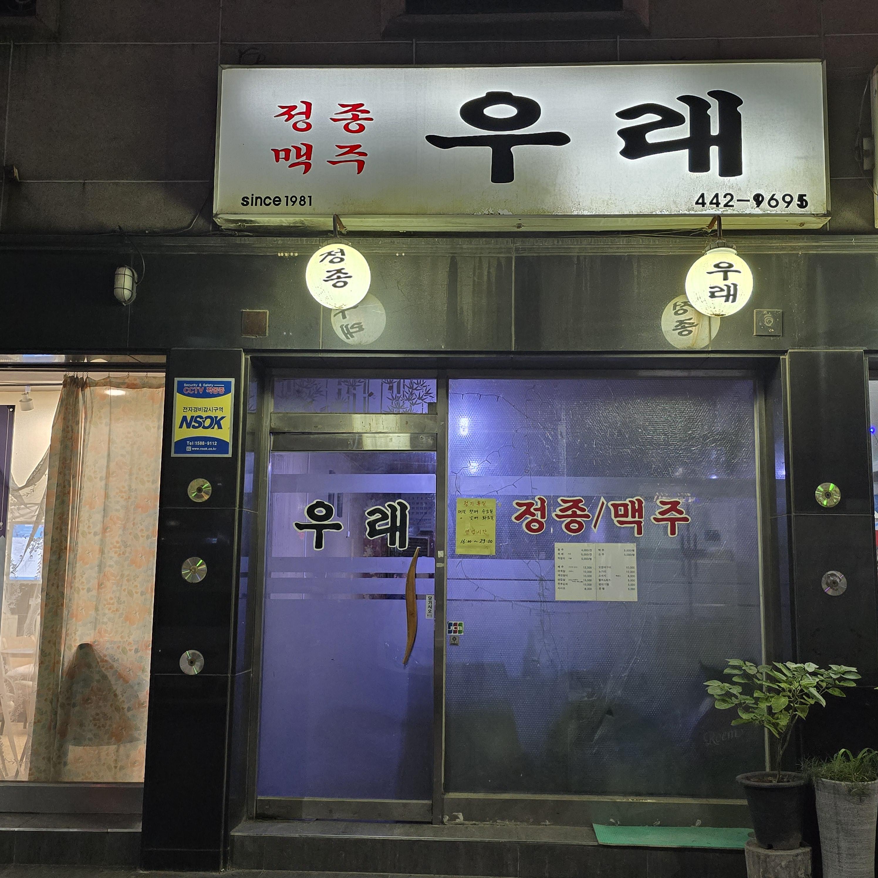 2024.01.25/ #노포 #우래 #술집 #정종 #대포 #안양3동 #대농단지 #댕리단길 #since1981/ 추억을 찾아 가는 술집. 안양3동 국민은행뒤 정종대폿집 우래. 안양일번가에서 1981년 처음 개업했다가 2000년 안양3동으로 이전했다. 이집의 필수 주문은 히레다. 백화수복을 기계로 뜨끈뜨근하게 데운 다음에 복어 지느러미를 넣고 불을 붙여서 알콜을 살짝 날려서 주는게 히레사케다. 함께 한 지인들이 안양에 이런 곳이 있냐고 다들 놀란다.