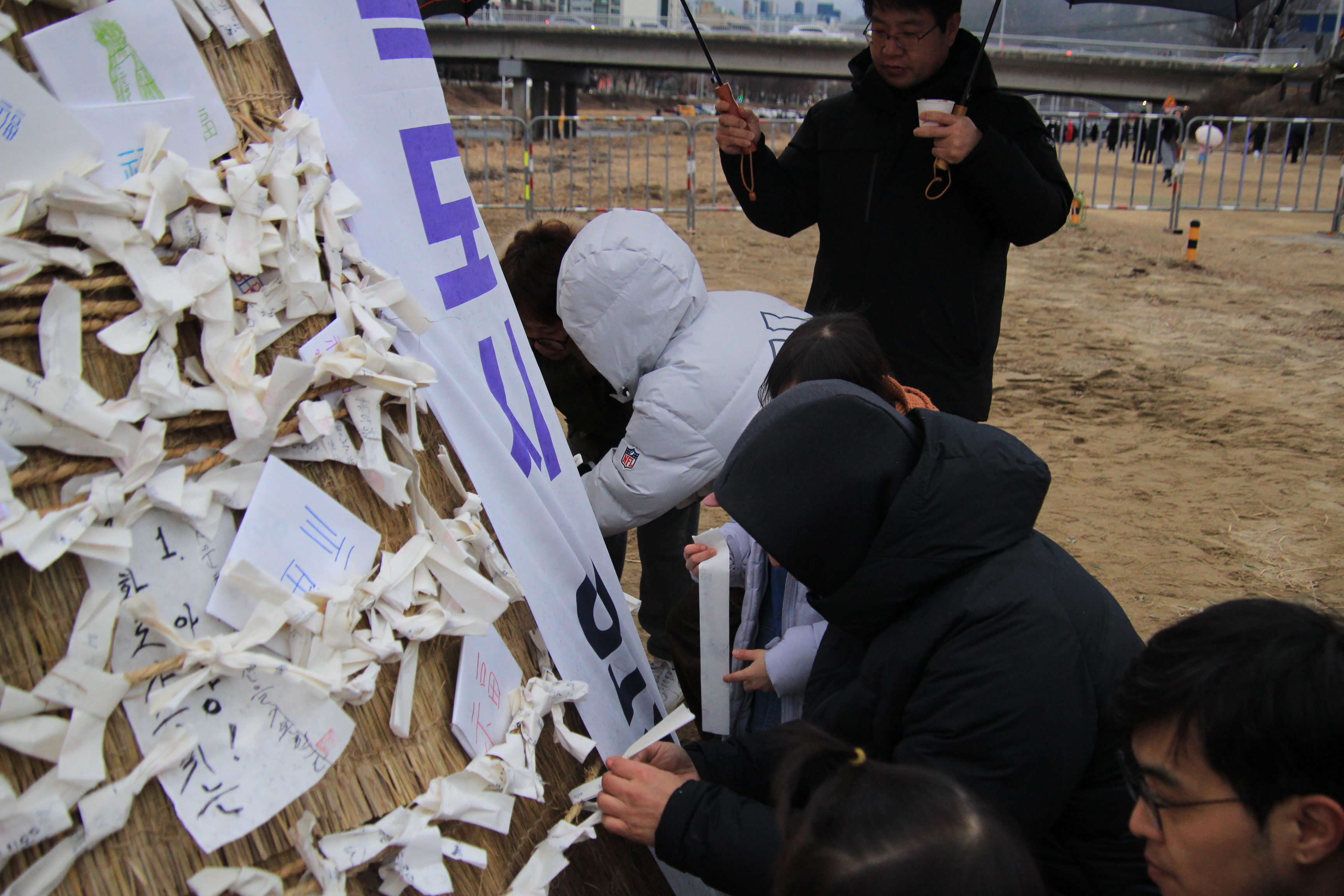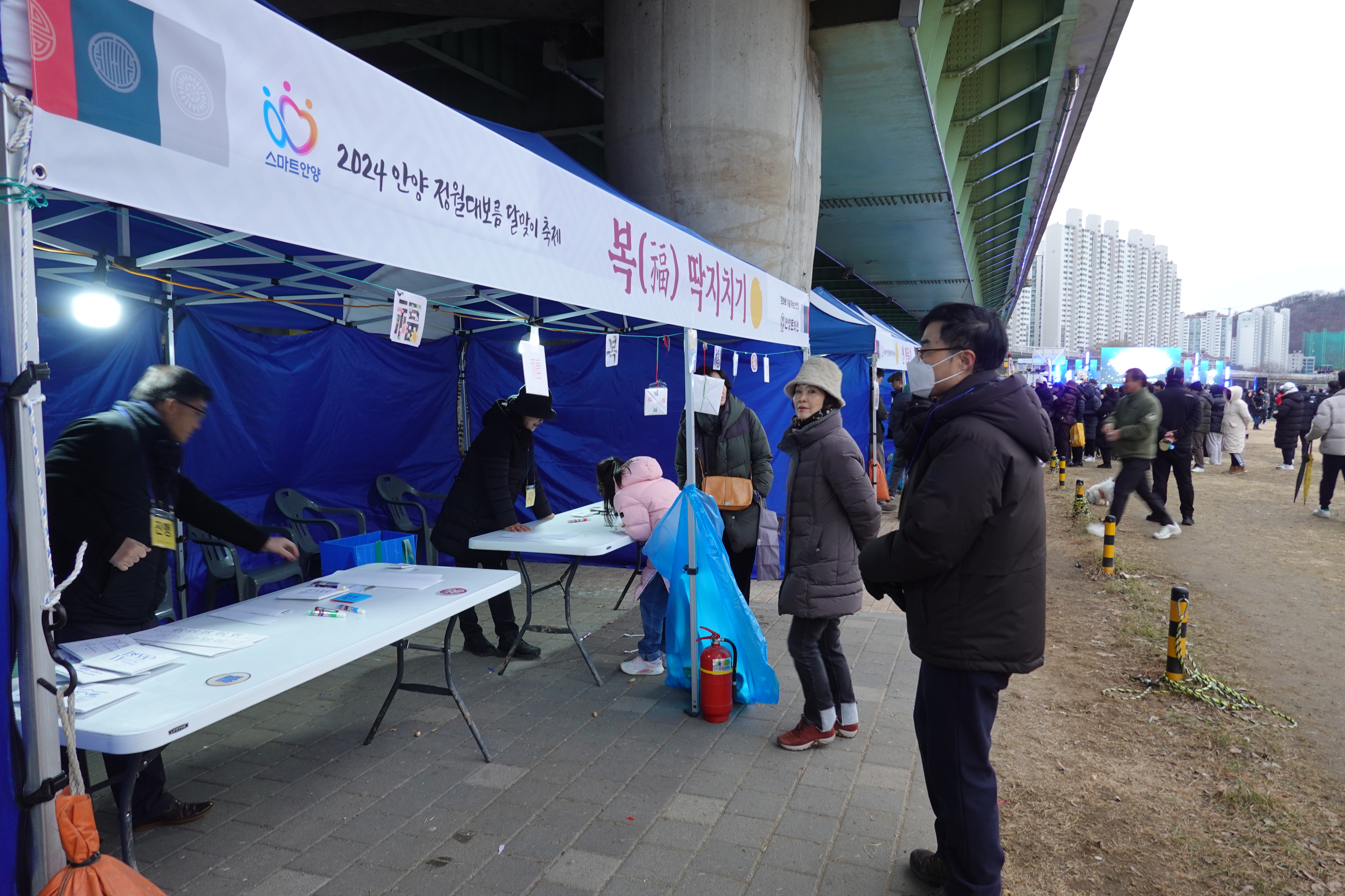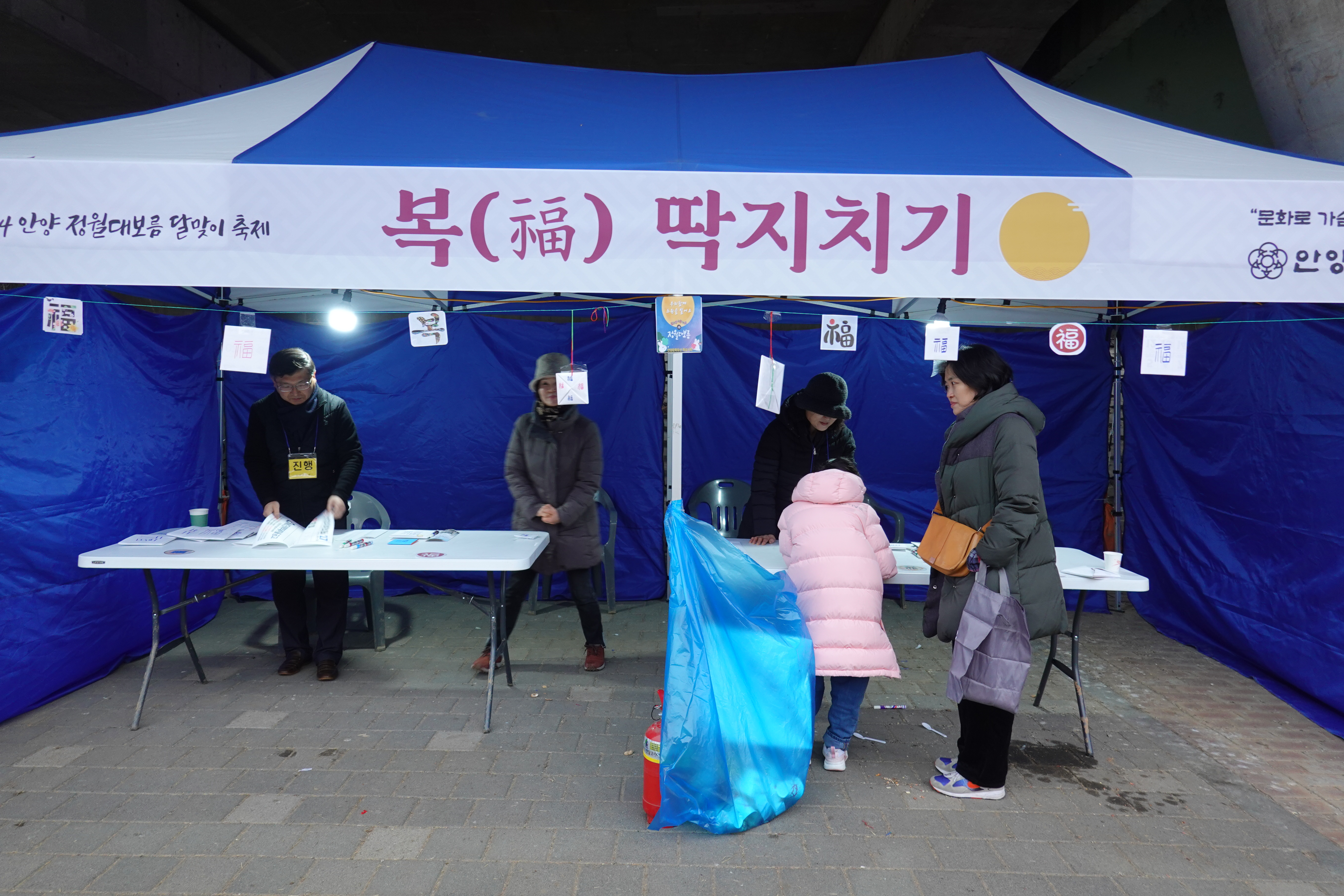 오후4시부터는 박석교밑 안양천 둔치에서 보름음식(부럼깨기,오곡밥,복차마시기) 나눔과 체험행사(소원지쓰기,제기만들기와 제기왕선발대회,투호놀이,신년운세, 연만들기,딱지치기)가 진행됐다. 특히 제기와 연만들기 등 체험부스도 인기가 있었지만 신년운세 부스에는 수리산산신제를 주관하며 국태민안과 안양시민의 안녕을 기원하는 안양지역 무속인들이 지난해부터 직접 점을 봐주고 쪽집게 입소문이 나면서 비가 오는 우중에도 불구하고 본 행사가 시작된 이후인 오후7시 넘도록 길게 줄을 서며 인기몰이를 했다.