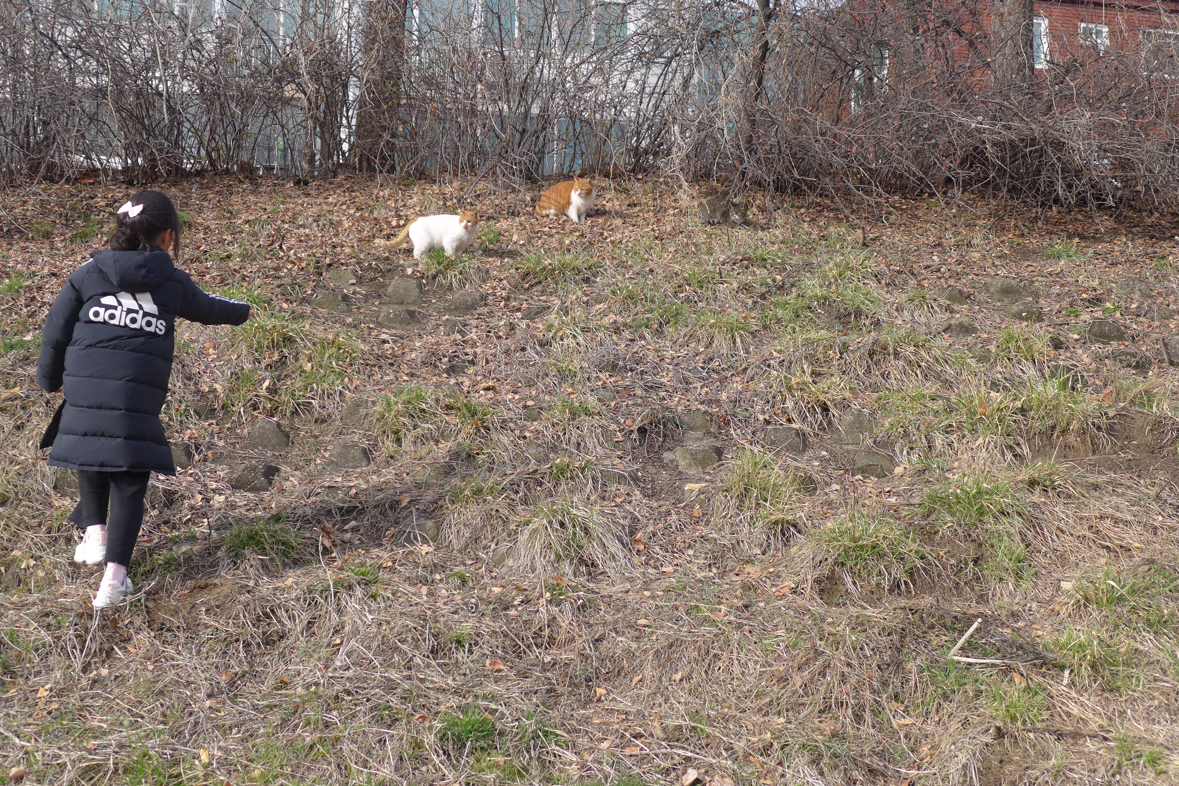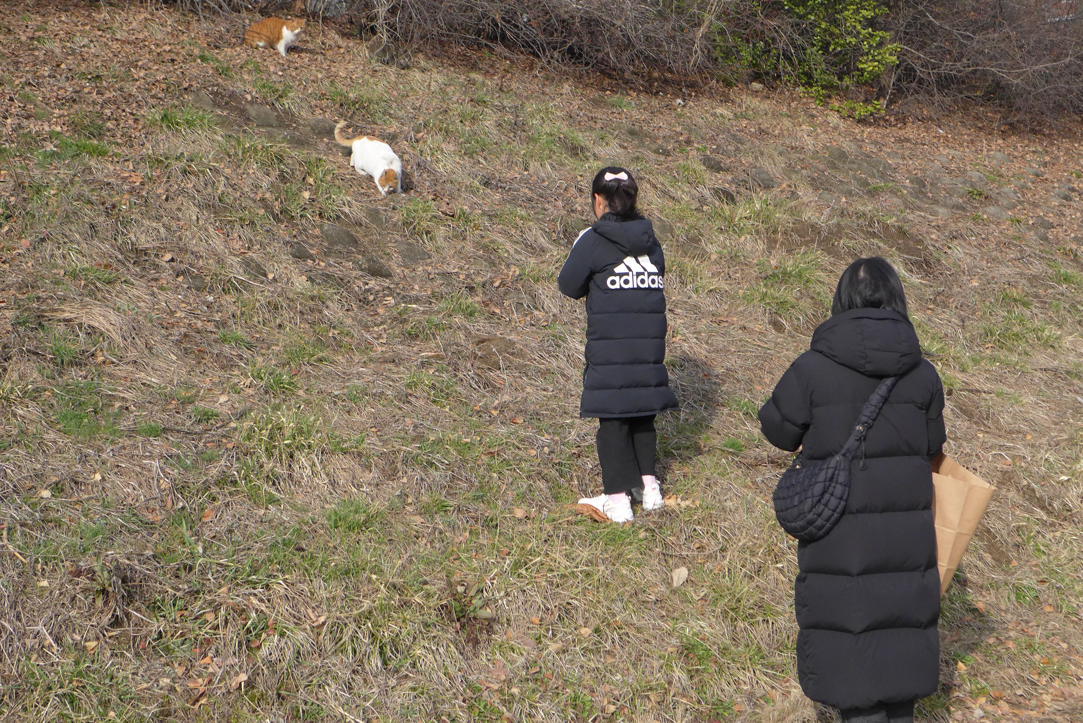 2024.02.25/ #도시기럭 #갈냥이 #냐옹이 #안양 #학의천/ 봄기운으로 포근한 날씨가 되니 어딘가에서 추운 겨울을 지냈던 길냥이들이 나타나기 시작. 학의천 내비산교 인근 산책로변 뚝방에 3마리의 냐옹이가 나타나자 지나던 시민들이 먹을것을 주기도 했다.