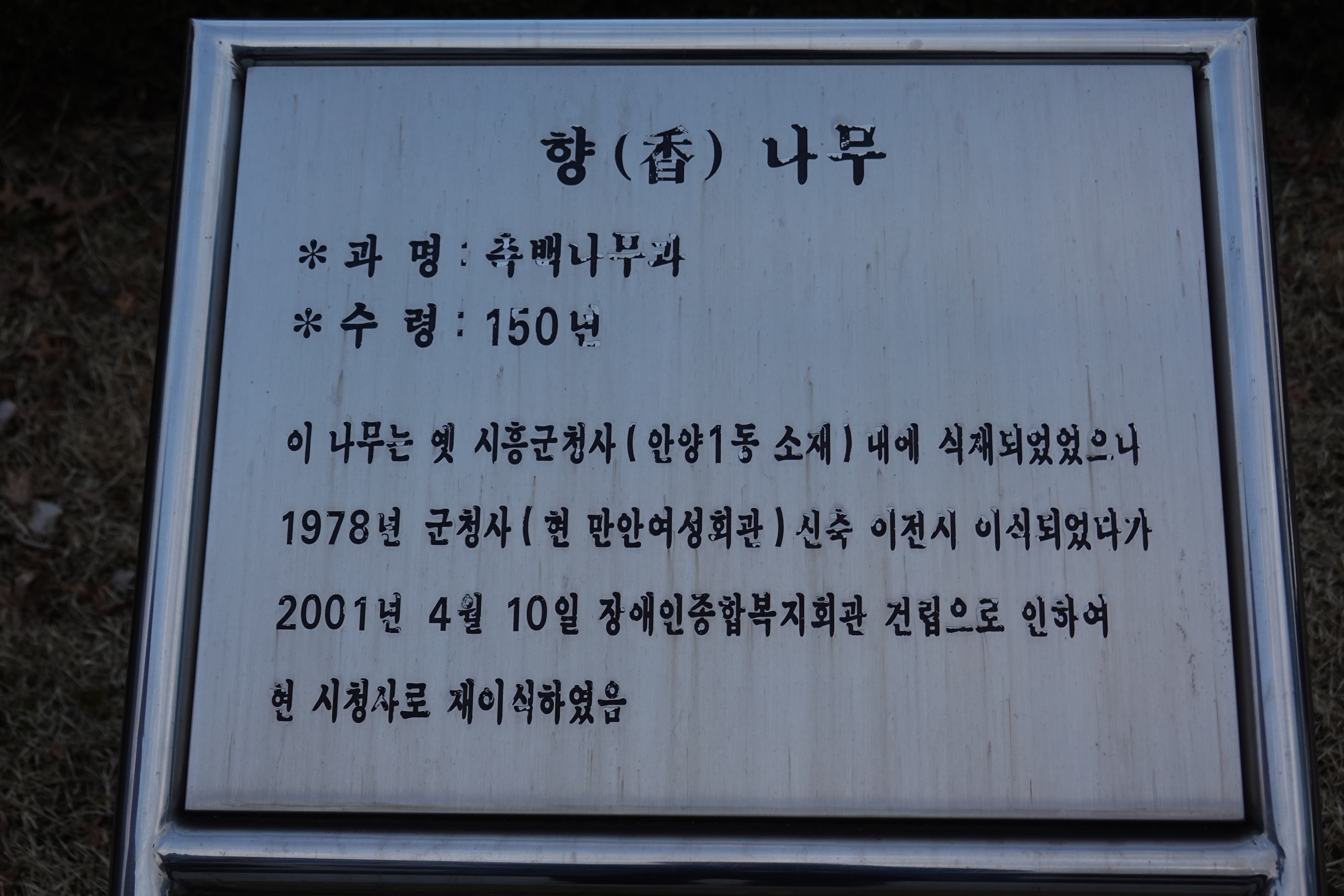 2023.02.29/ #기록 #안양시청 #향나무 #오래된것/ 안양시청에는 수령 100년이 넘는 향나무가 있다. 시청 정문을 들어서 우측의 민원실이 있는 별관앞 정원에는 오래된 향나무 한그루가 있는데 150년이 넘는 세월을 살아온 나무다.