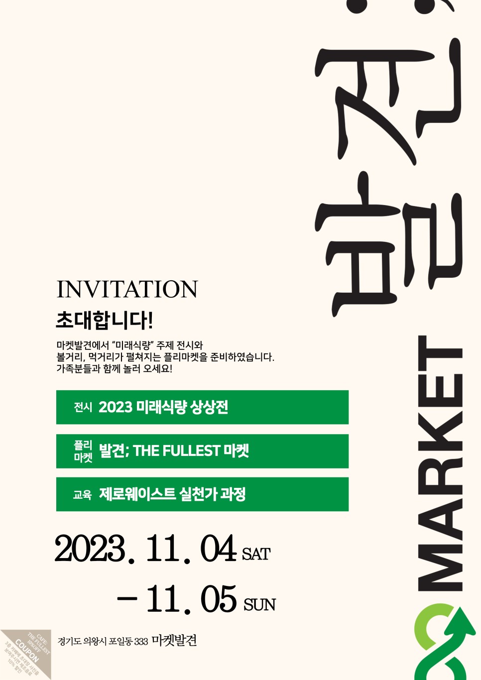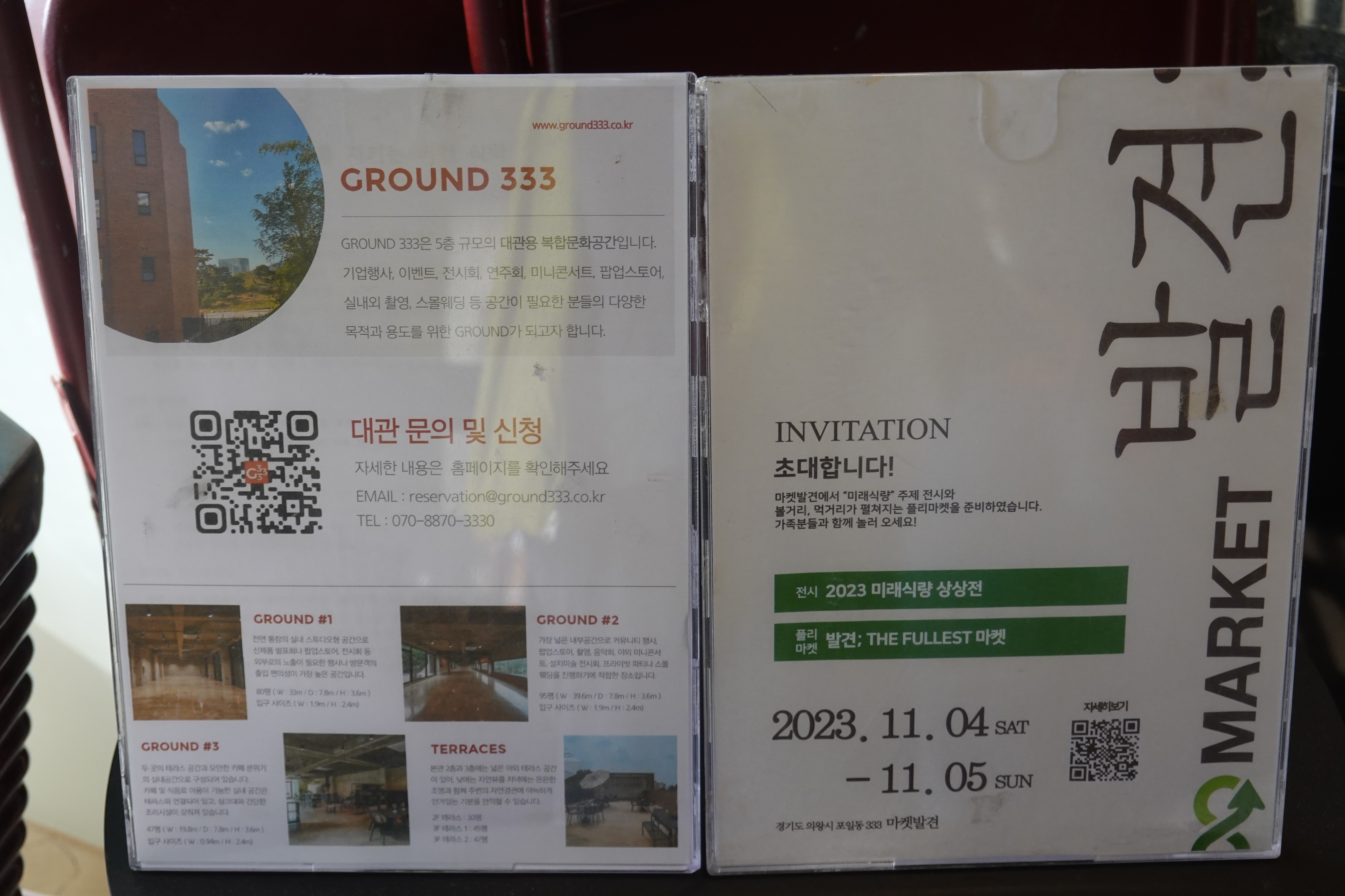 지난 2023년 11월 4일 마켓발견이 있는 건물 GROUND333에서 게원예술대학이 마켓발견과 협력으로 친환경 전시 2023 미래마을 상상전-미래식량, 친환경 플리마켓, THE FULLEST 마켓이 열렸을때 처음 가보았는데 아주 흥미롭고 재미있고, 볼거리 많은 공간이다.