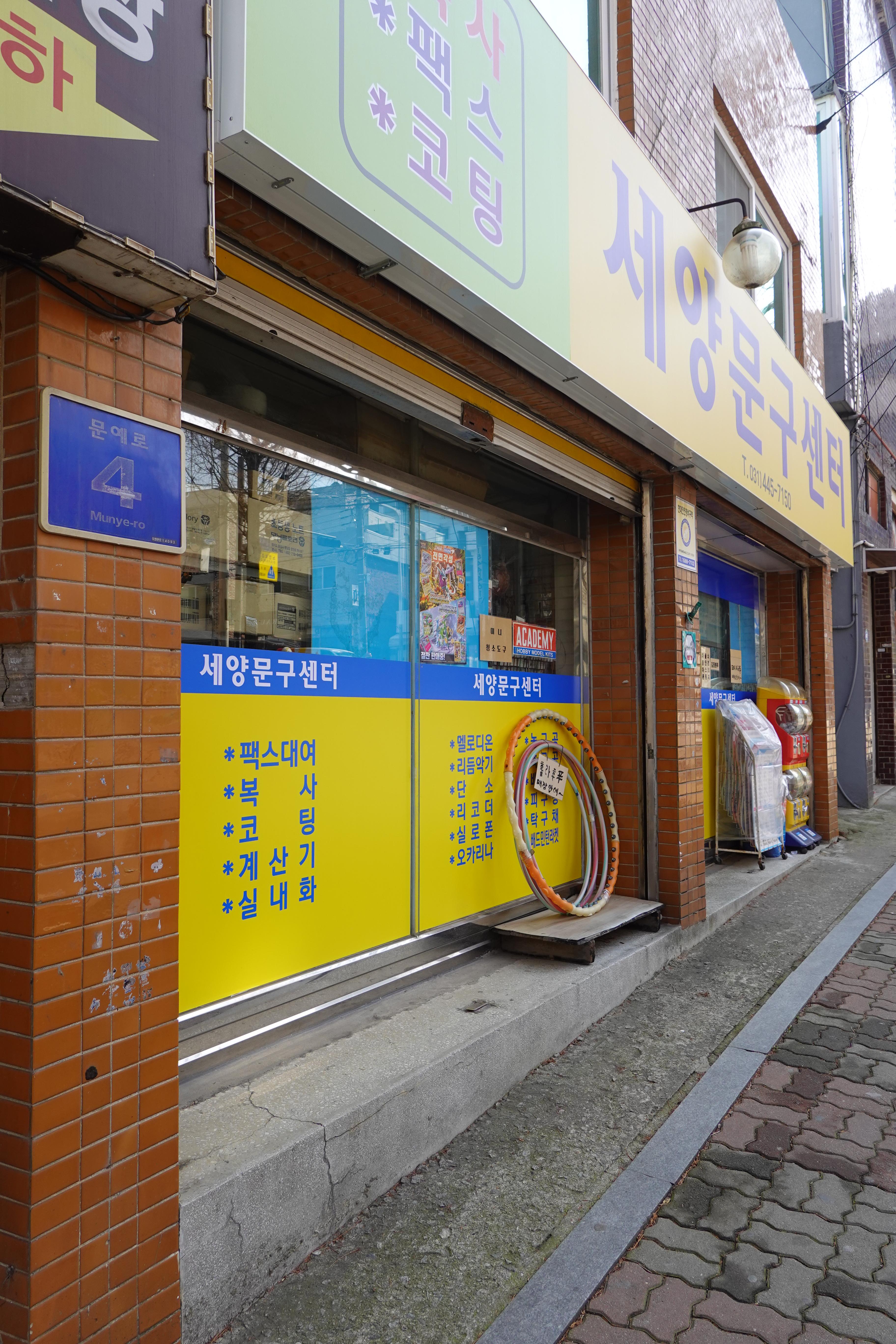 2024.03.12/ #도시기록 #문구점 #세양문구 #since1989 #안양8동 #만년가게/ 점차 사라지는 것중 하나 문구점. 안양8동 문예로에서 오랜기간 영업을 해온 세양문구. 주변에 학교도 없는데 문구를 사러 많이 찾아 오던곳이다. 만안구청 만문누리협의회에서 2021년 만년가게로 지정함.