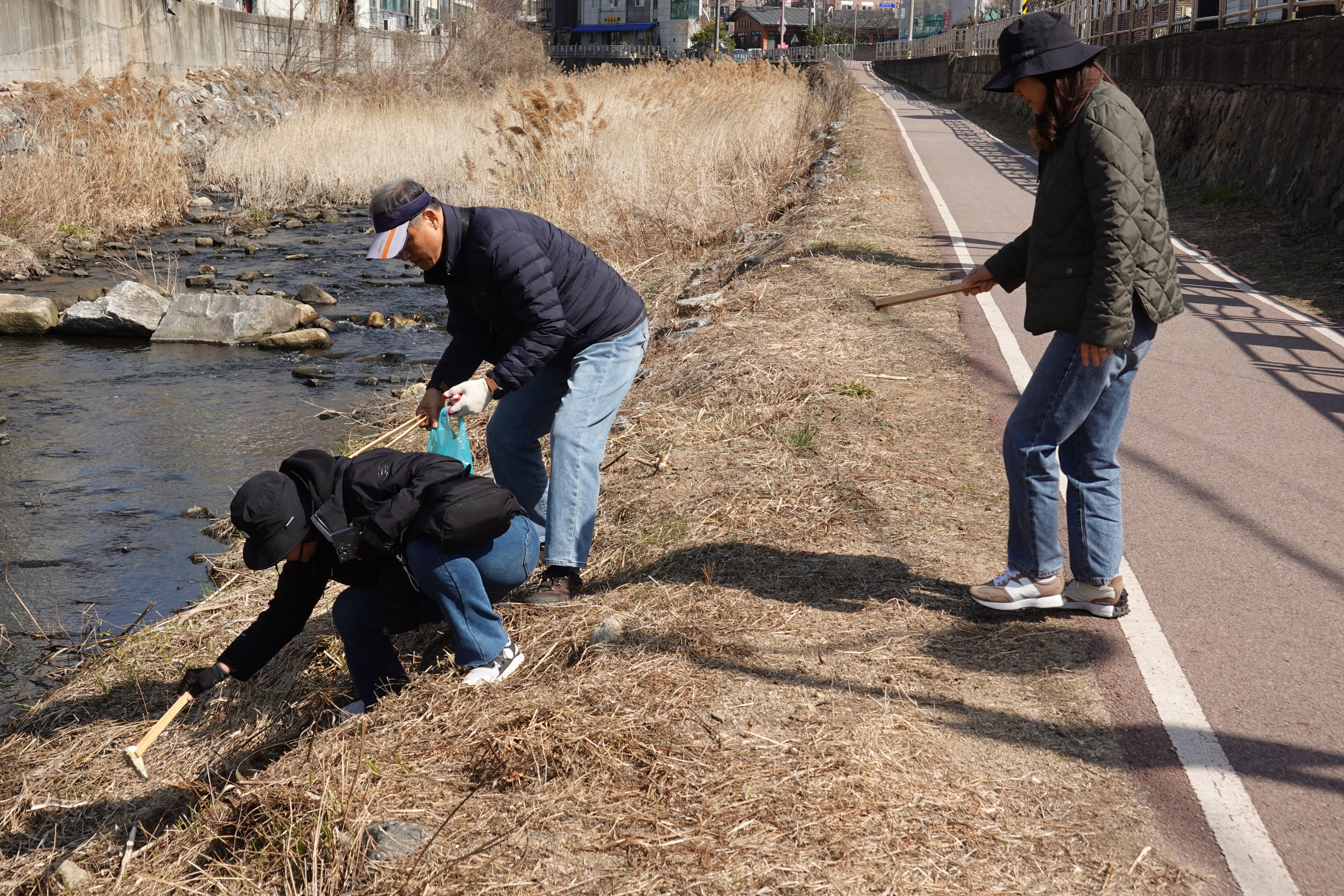 2024.03.18/ #삼막천 #모니터링 #생물다양성/ 안양지속가능발전협의협 2024년 첫 하천 생태모니터링. 삼막천(신촌교에서 느티나무 돌다리 구간)에서 생물 조사. 수질측정(2곳). 쓰레기 줍기 등을 실시하다.