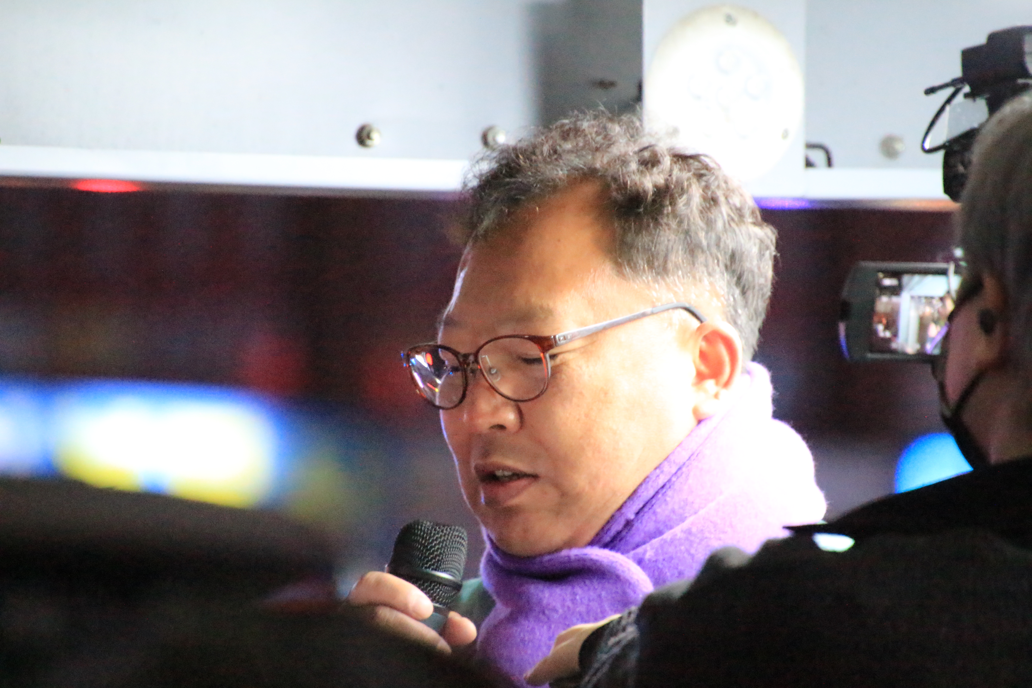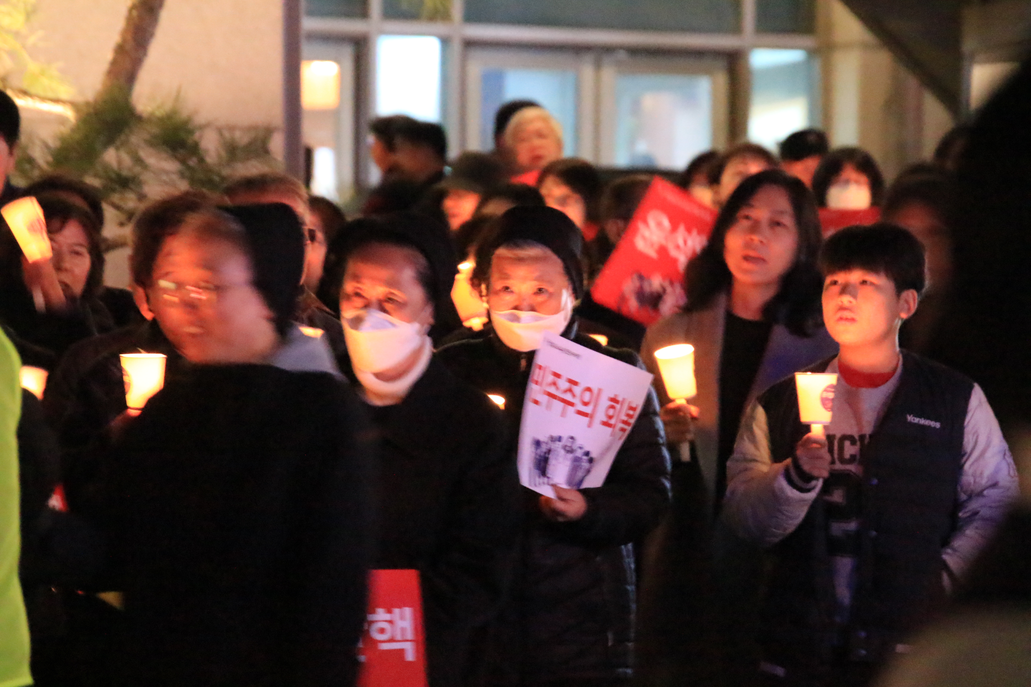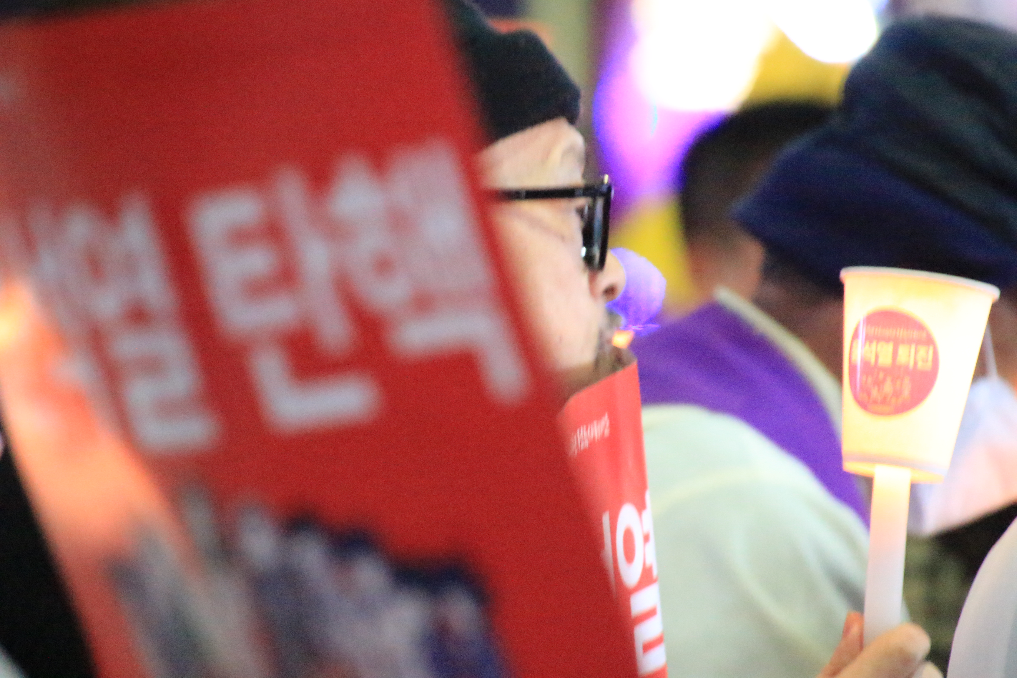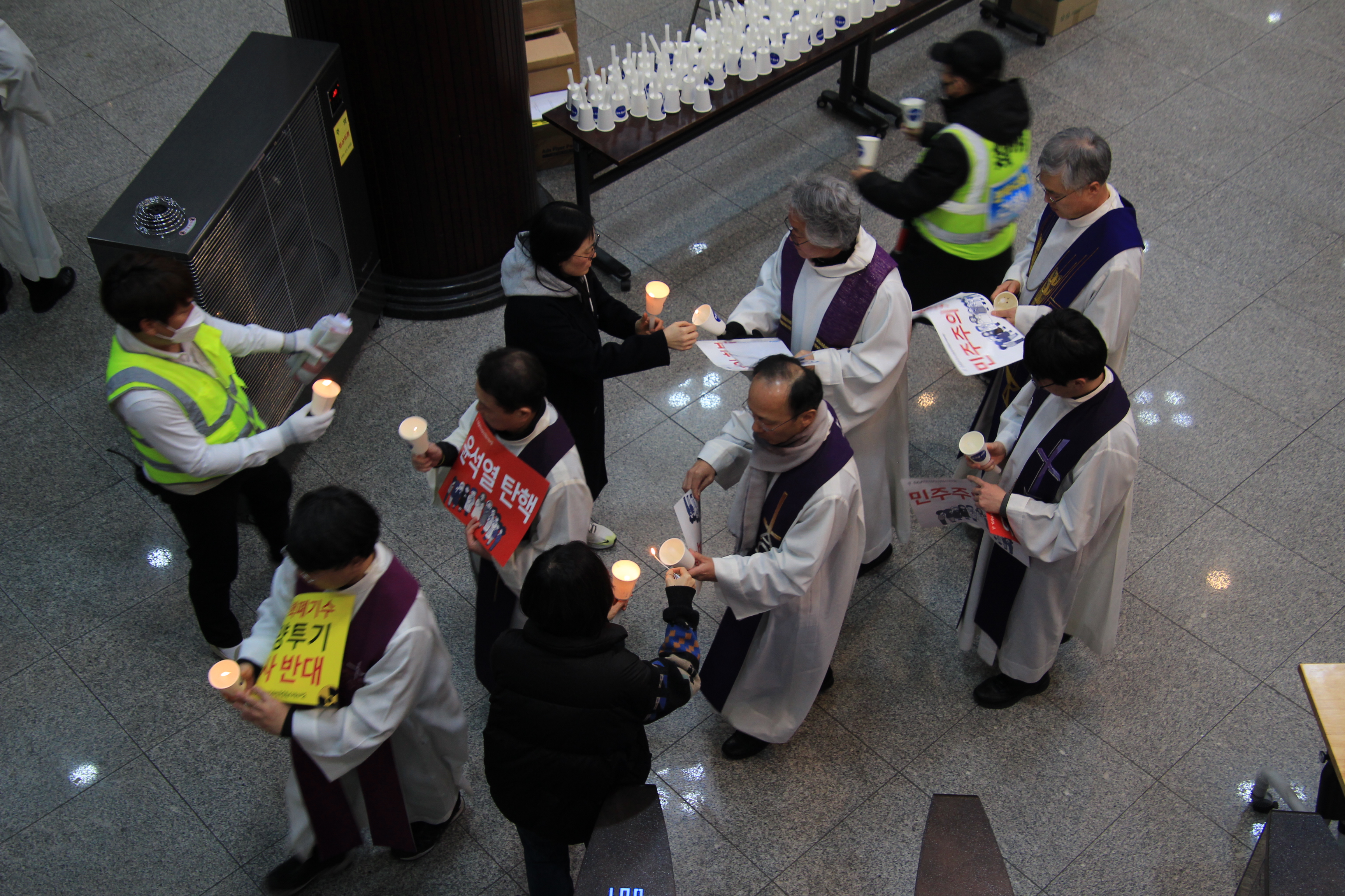 주례를 맡은 김형중 신부는 “(대통령) 한 사람의 독주가 우리 민주주의를 크게 훼손하고 있다”면서 “그는 ‘특검을 거부하는 자가 범인이다’ ‘죄가 있으니까 거부하는 것 아니냐’고 스스로 말했다. 그런 그가 스스로 특검을 거부했다. 그것은 곧 죄가 있다고 스스로 말하는 것이라고 생각한다”고 말했다.