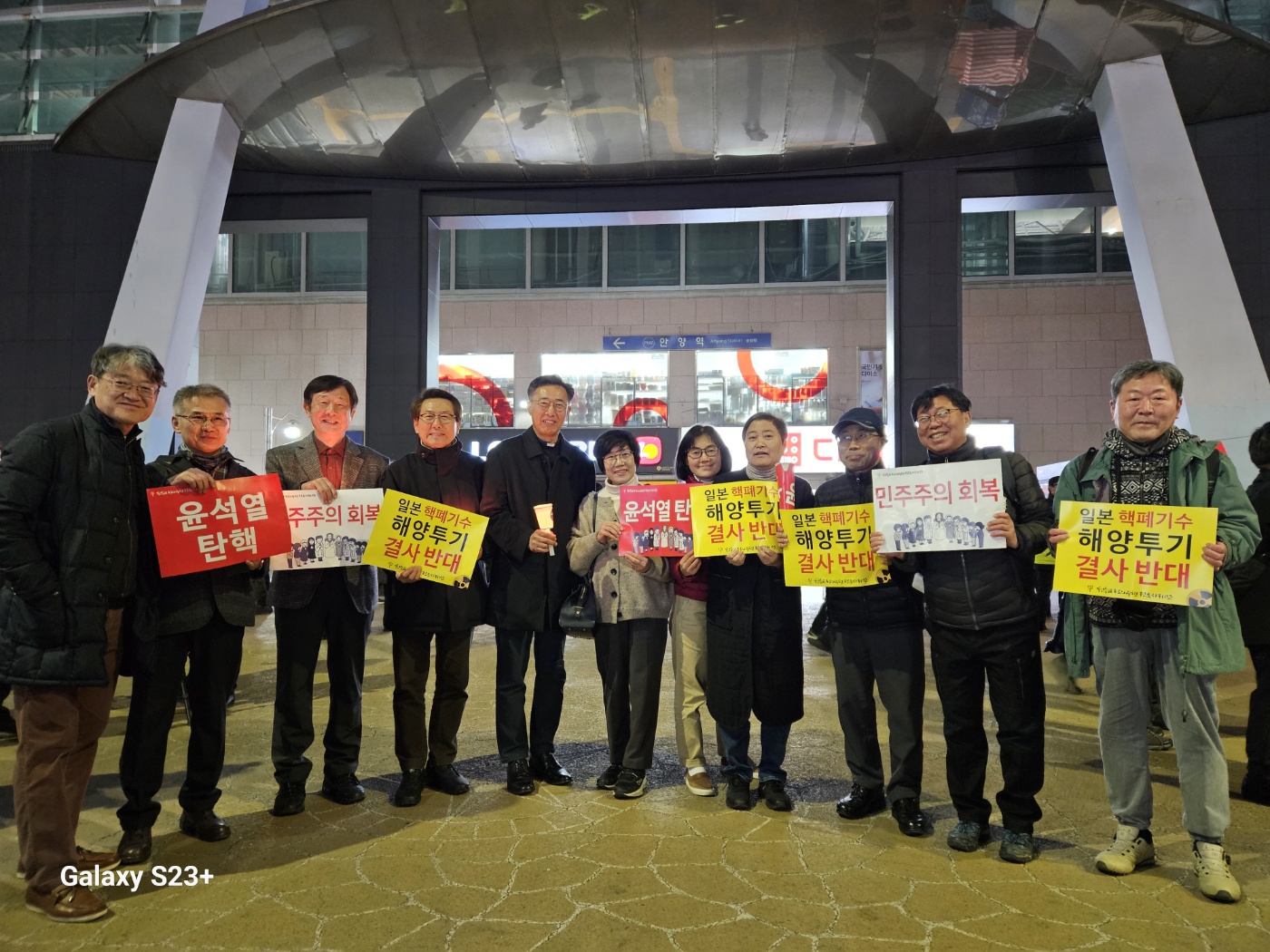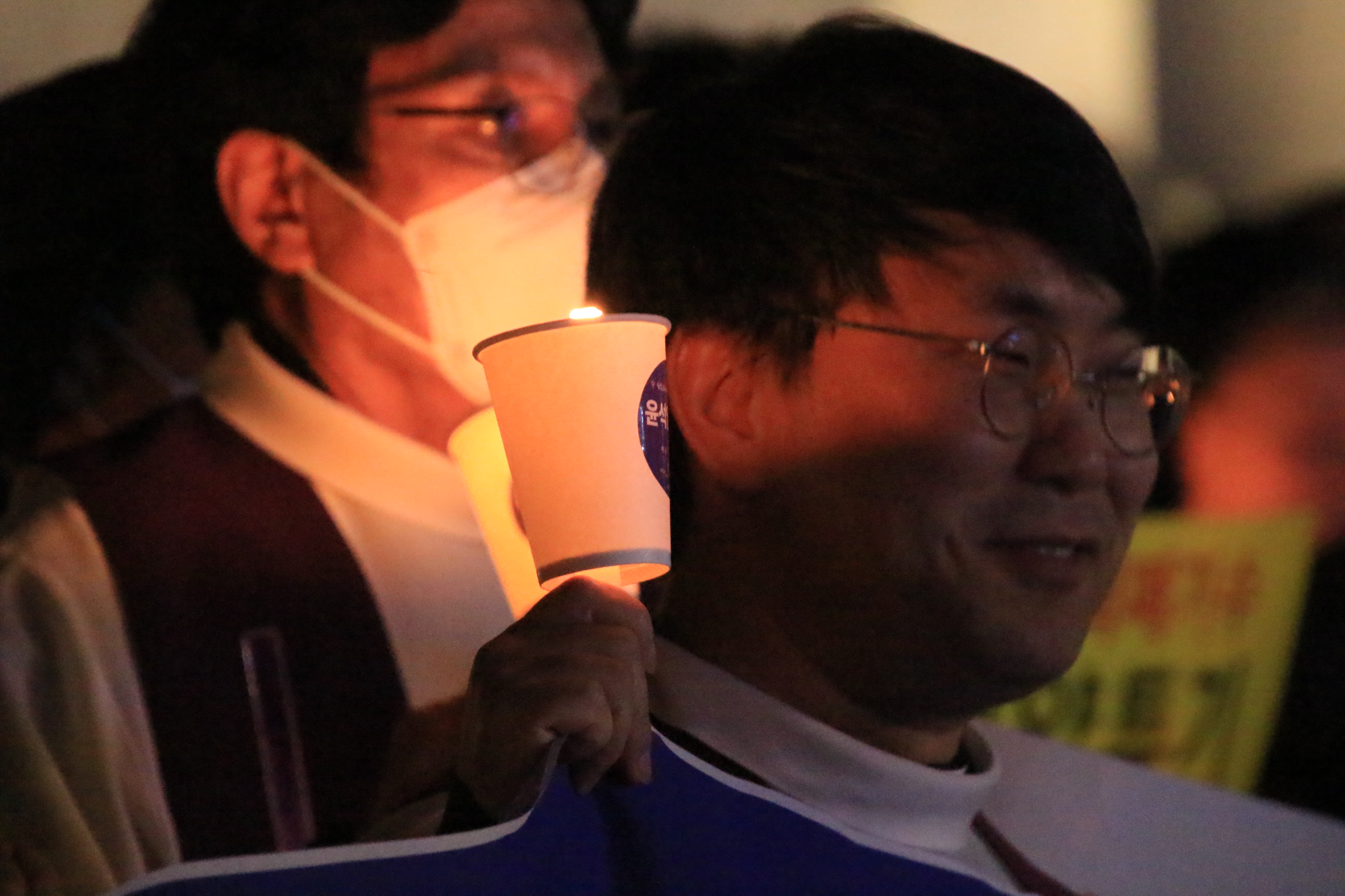 김 신부는 “독주하는 윤석열 정부에게 우리는 요구한다”면서 “이 나라의 민주주의를 위해서 스스로 ‘큰 결심’을 해주기를 바란다”고 말했다. 대통령이 스스로 책임지고 물러나야 한다고 말한 것으로 해석된다.