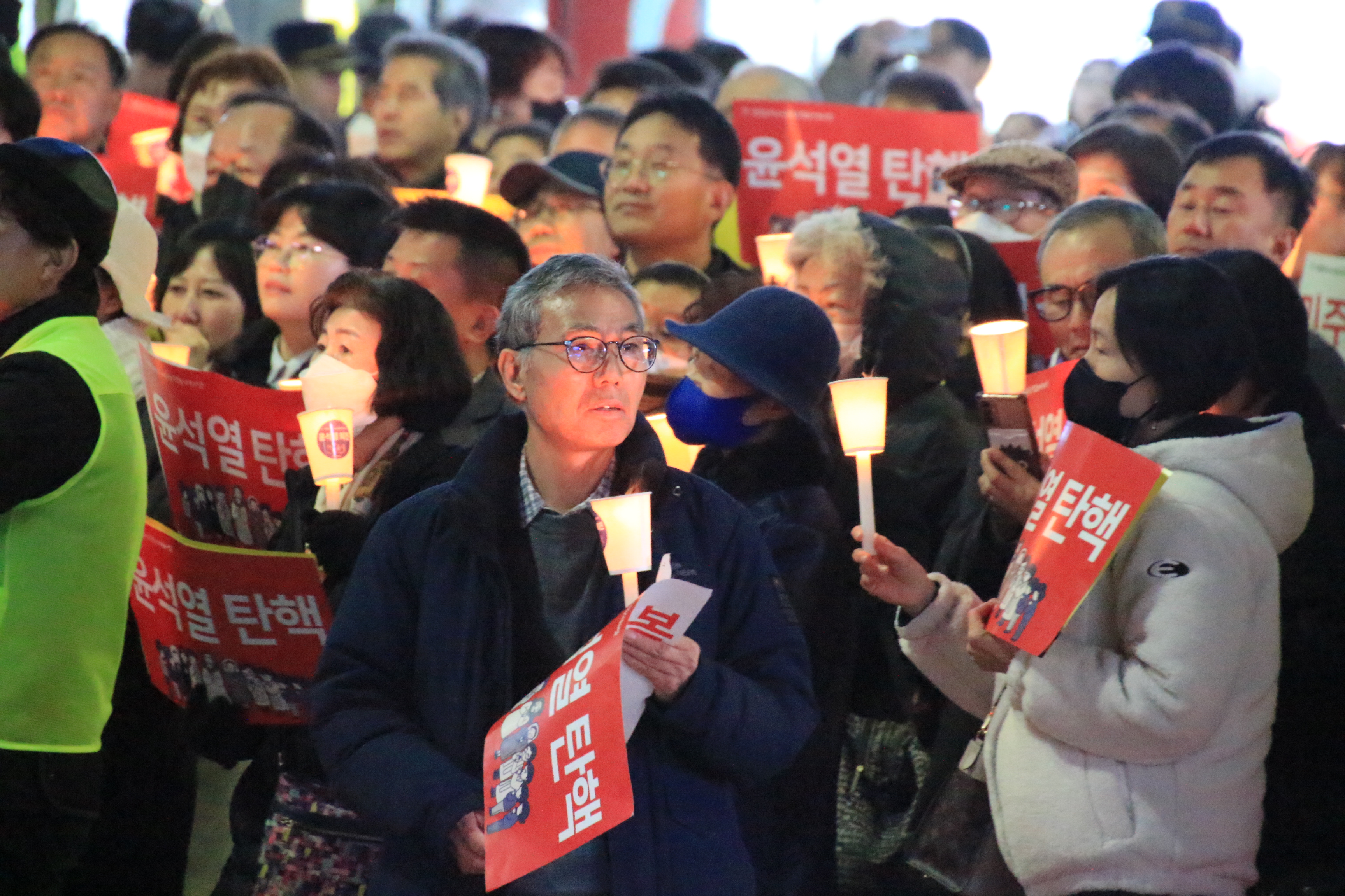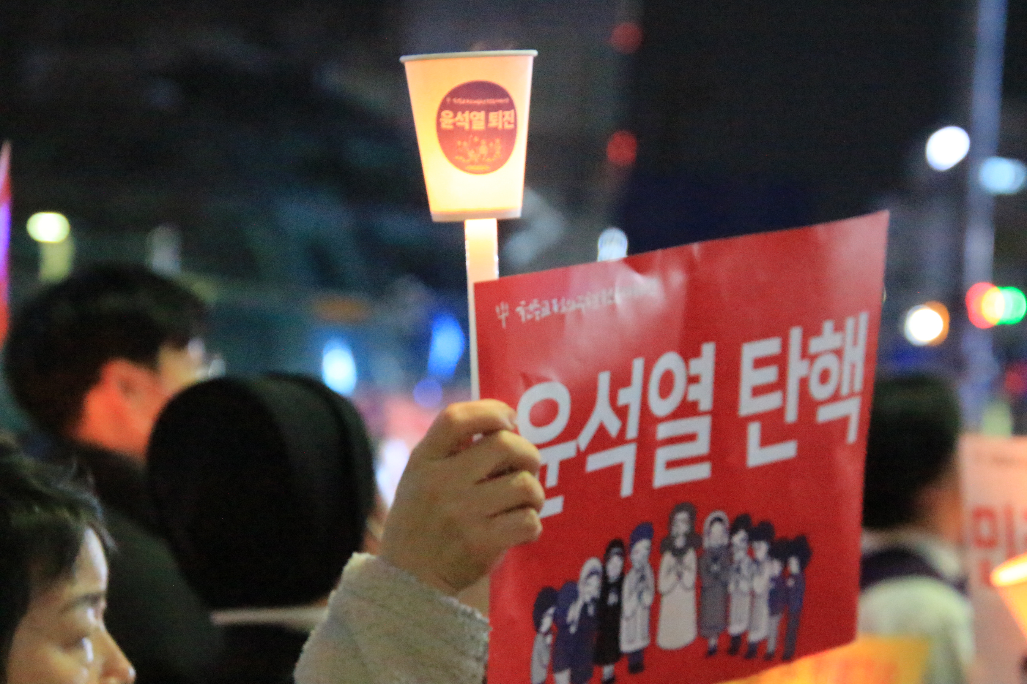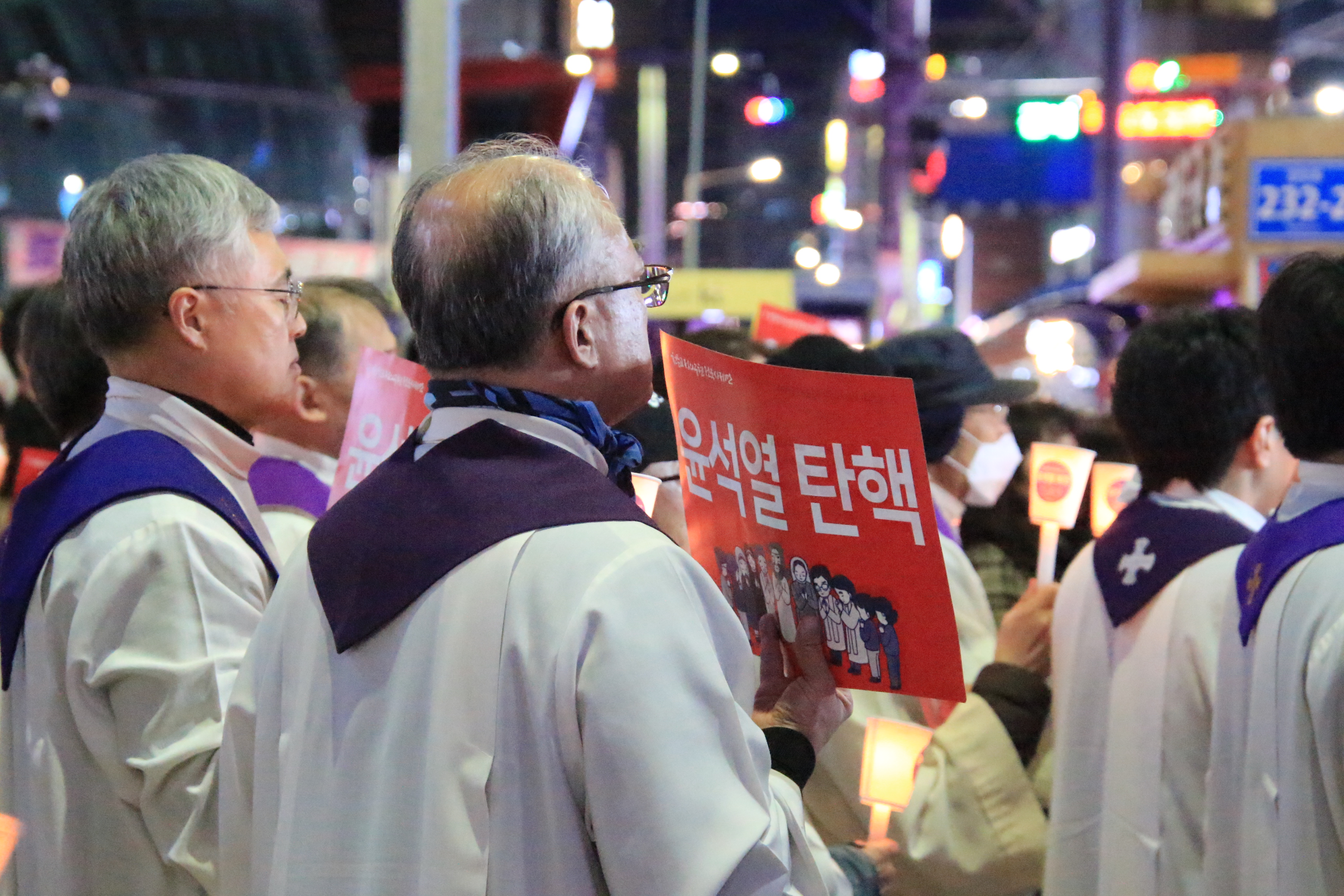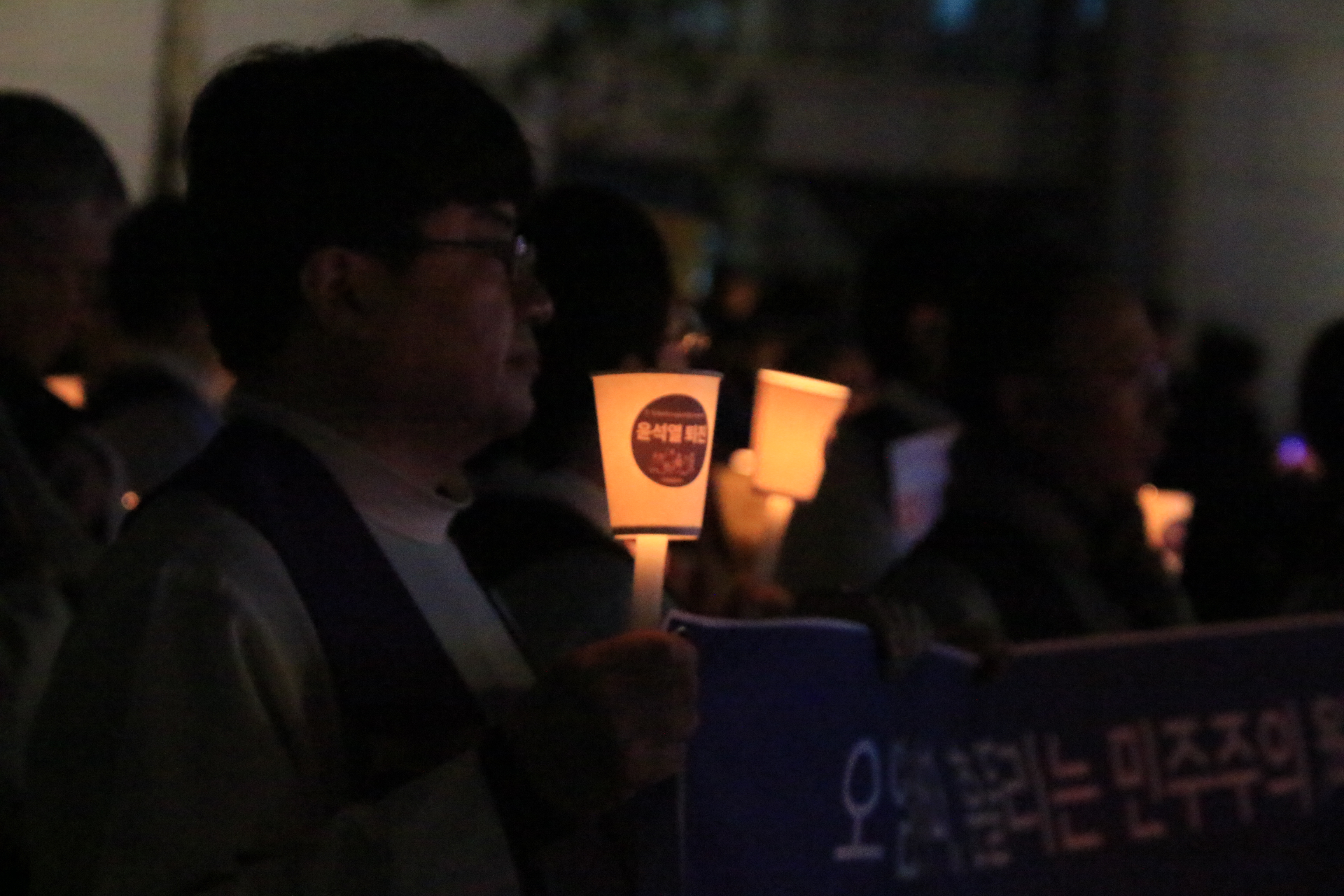 4. 우리 앞에 놓인 길은 언제나 빛과 어둠이 혼합된 길입니다. 윤석열의 역사적 퇴장 이후, 더 나은 민주주의를 이룩한 다음이더라도 계속해서 우리는 여러 단계의 어둠을 통과하며 위험한 길을 걷게 될 것입니다. 빛 속에서 경험한 바를 어둠 속에서 기억하는 역사적 경험을 일찍이 십자가의 성 요한은 “밝은 어둠”이라 하였고, 성 아우구스티누스는 “불가피한 과월절”이라 불렀던 바, 아무리 어둠이 깊어도 우리는 낙담하거나 좌절하지 않습니다.