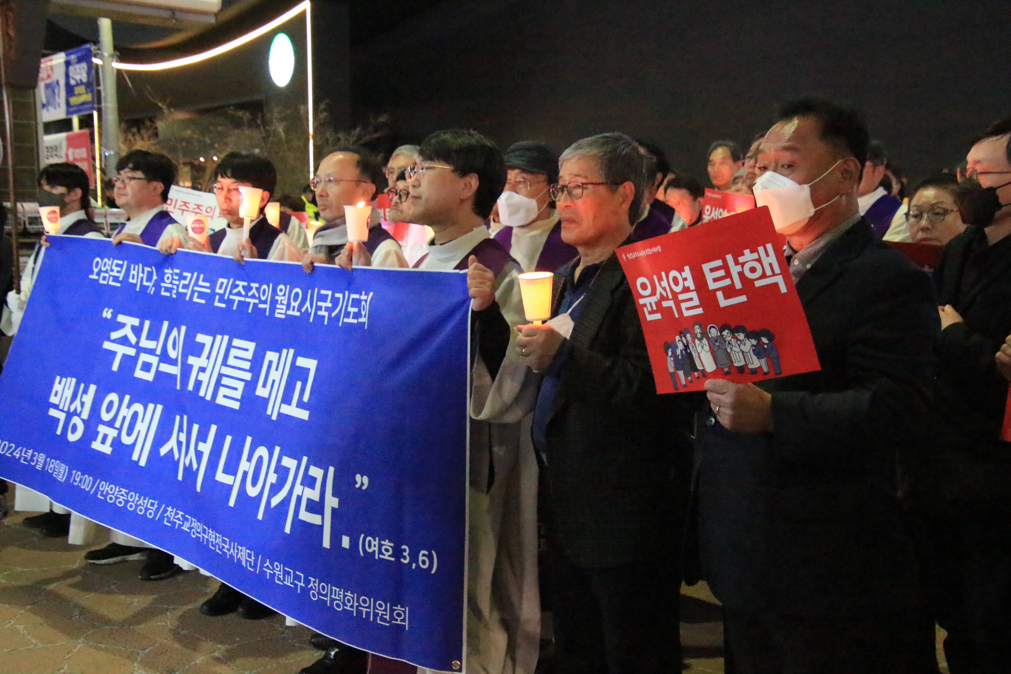 1. 천주교정의구현전국사제단이 작년 3월 20일 ‘전국사제비상시국회의’의 결정으로 전주 풍남문광장에서 <친일매국 검찰독재 윤석열 퇴진과 민주주의 회복을 위한 미사>를 드리고 월요시국기도회를 시작한 지 꼭 일 년이 되었습니다.