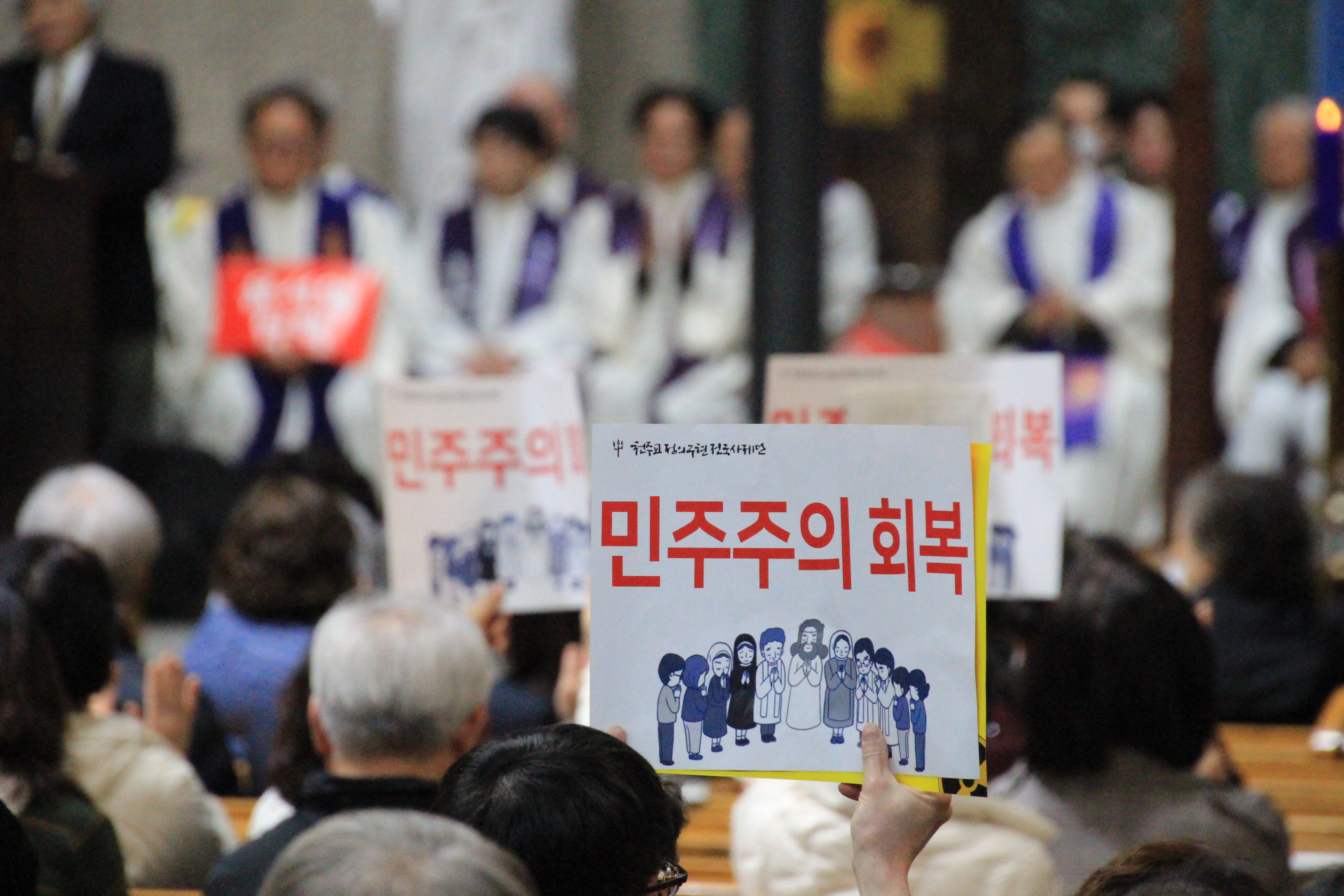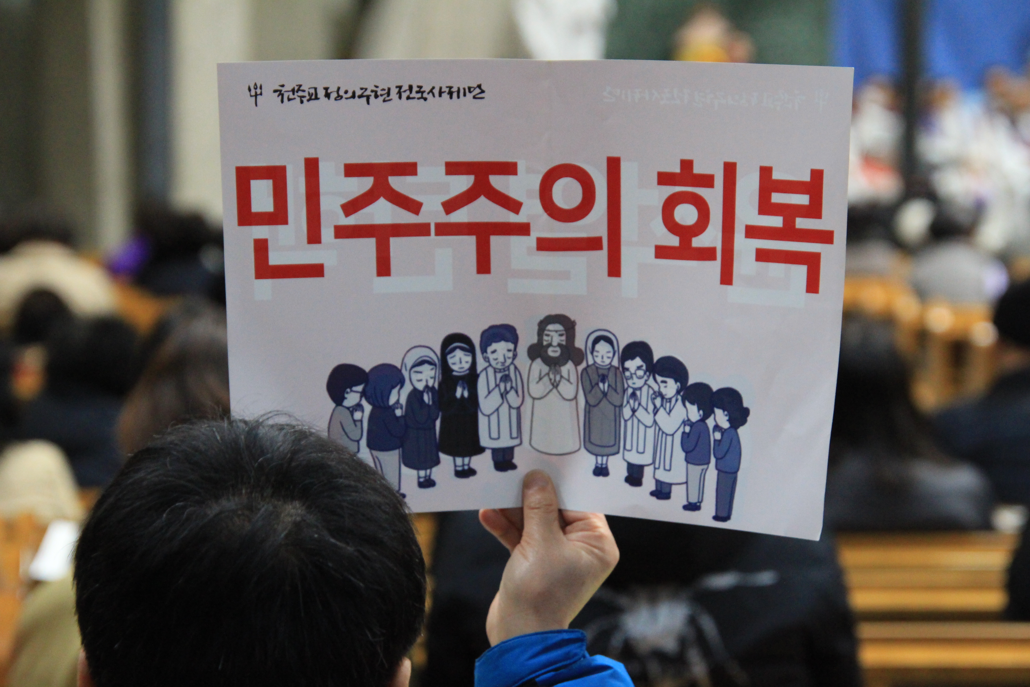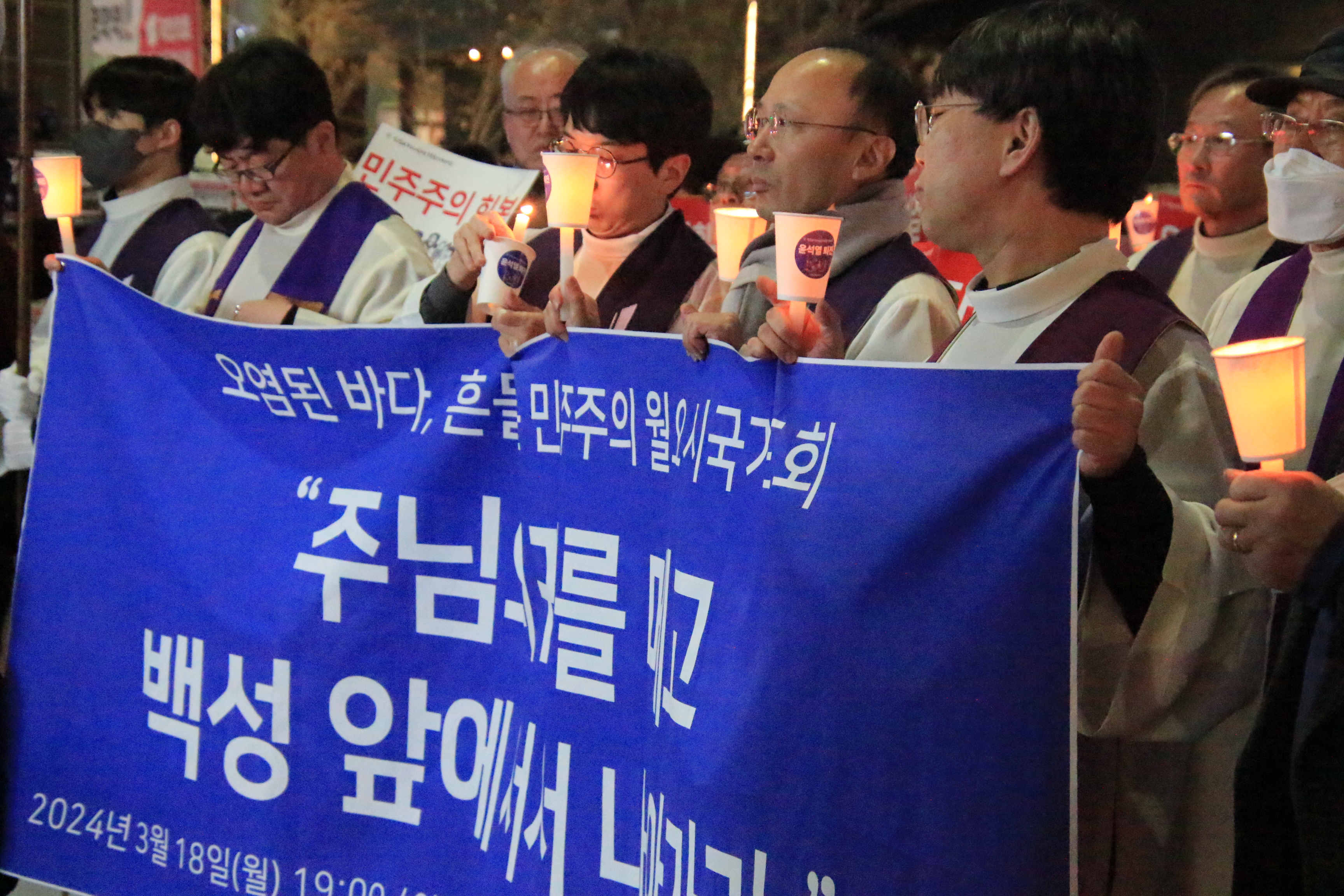 지난해 4월 10일부터 이날까지 전국 교구를 순회하며 27회의 기도회를 개최해온 사제단은 지난 1년 간 이어온 시국기도회를 마치며 시민들에게 “이번 선거에서 악한 정권의 만행을 끊고 새로운 세상을 향해 나아가야 한다”고 당부했다.