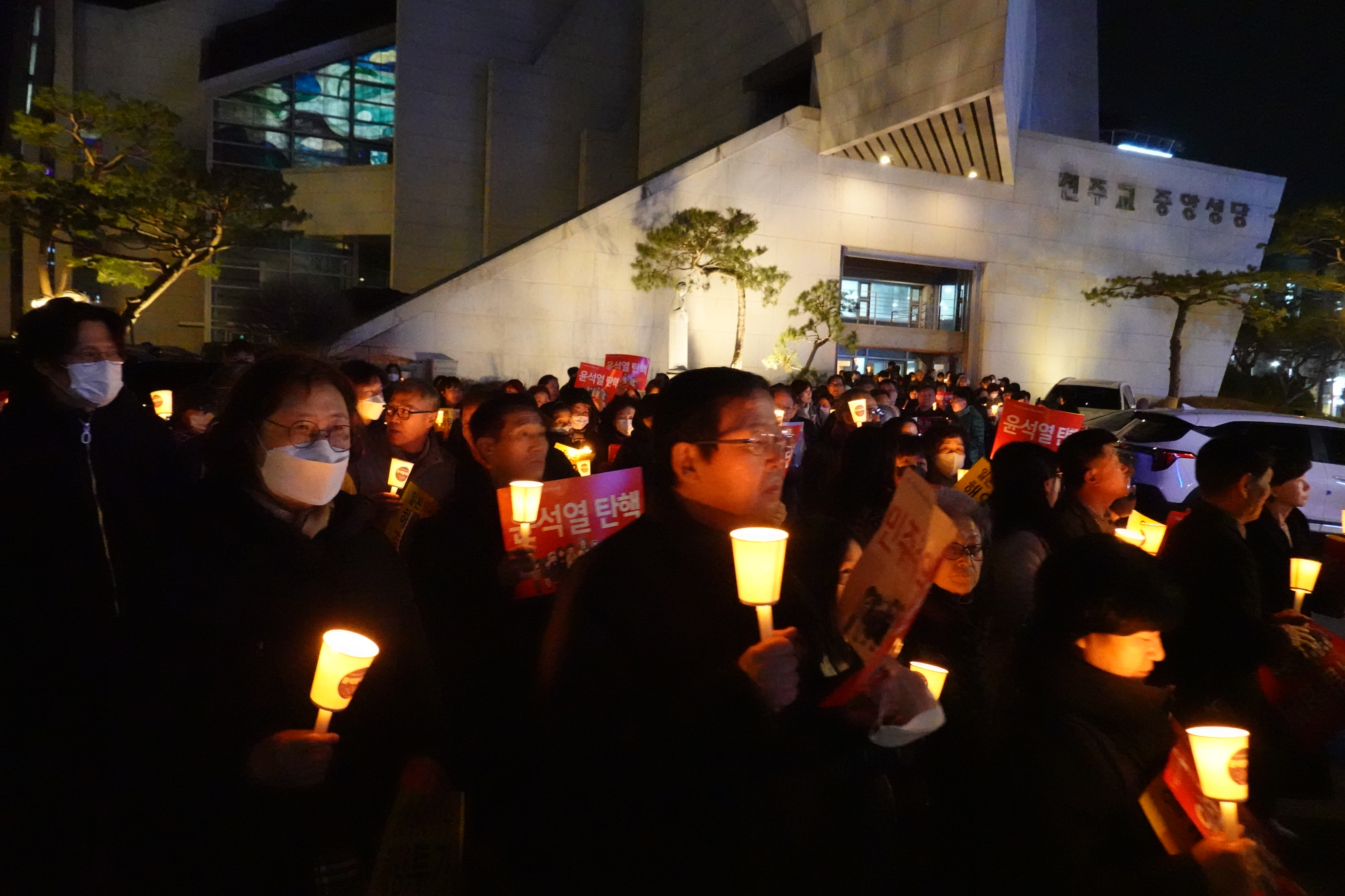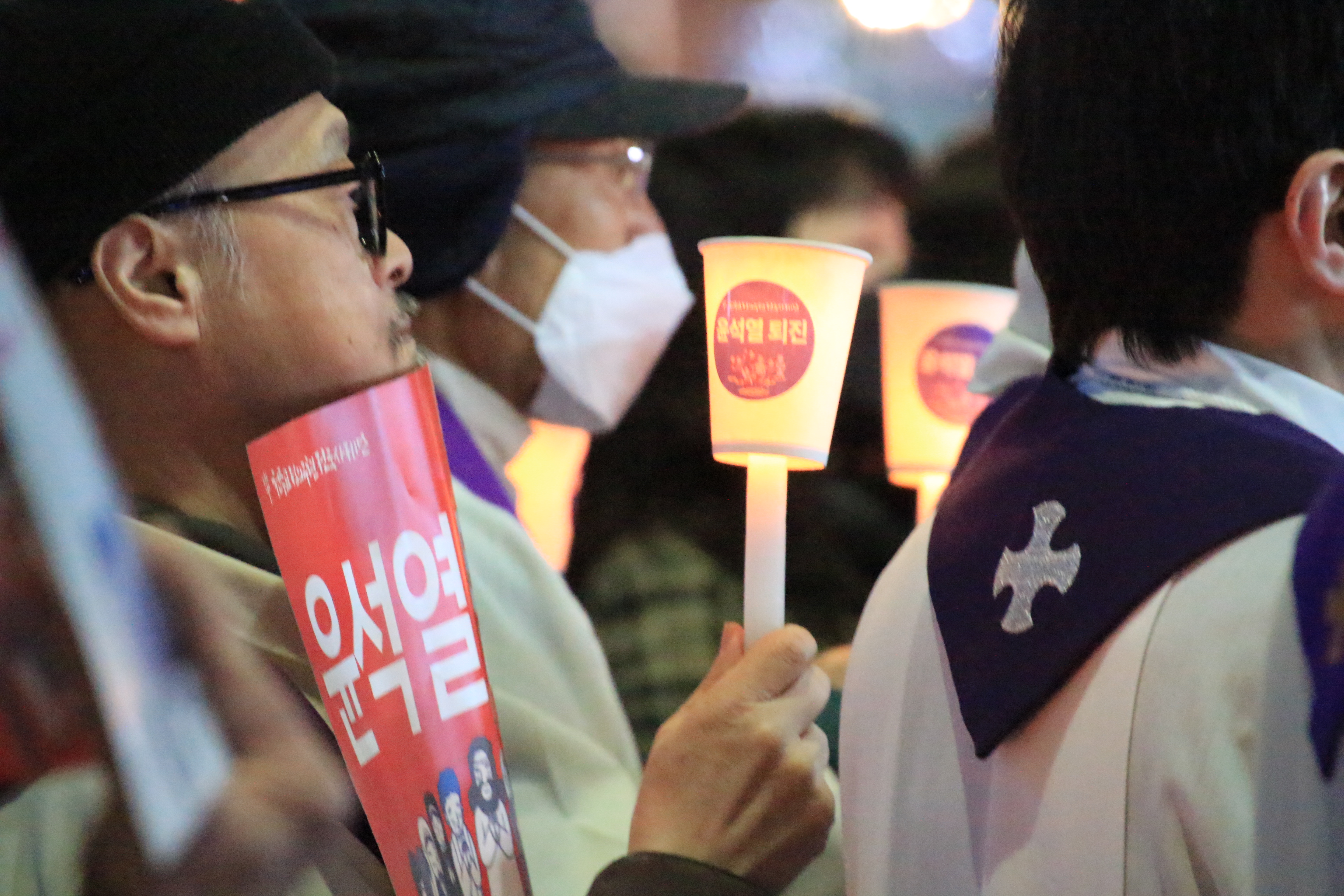 4. 우리 앞에 놓인 길은 언제나 빛과 어둠이 혼합된 길입니다. 윤석열의 역사적 퇴장 이후, 더 나은 민주주의를 이룩한 다음이더라도 계속해서 우리는 여러 단계의 어둠을 통과하며 위험한 길을 걷게 될 것입니다. 빛 속에서 경험한 바를 어둠 속에서 기억하는 역사적 경험을 일찍이 십자가의 성 요한은 “밝은 어둠”이라 하였고, 성 아우구스티누스는 “불가피한 과월절”이라 불렀던 바, 아무리 어둠이 깊어도 우리는 낙담하거나 좌절하지 않습니다.