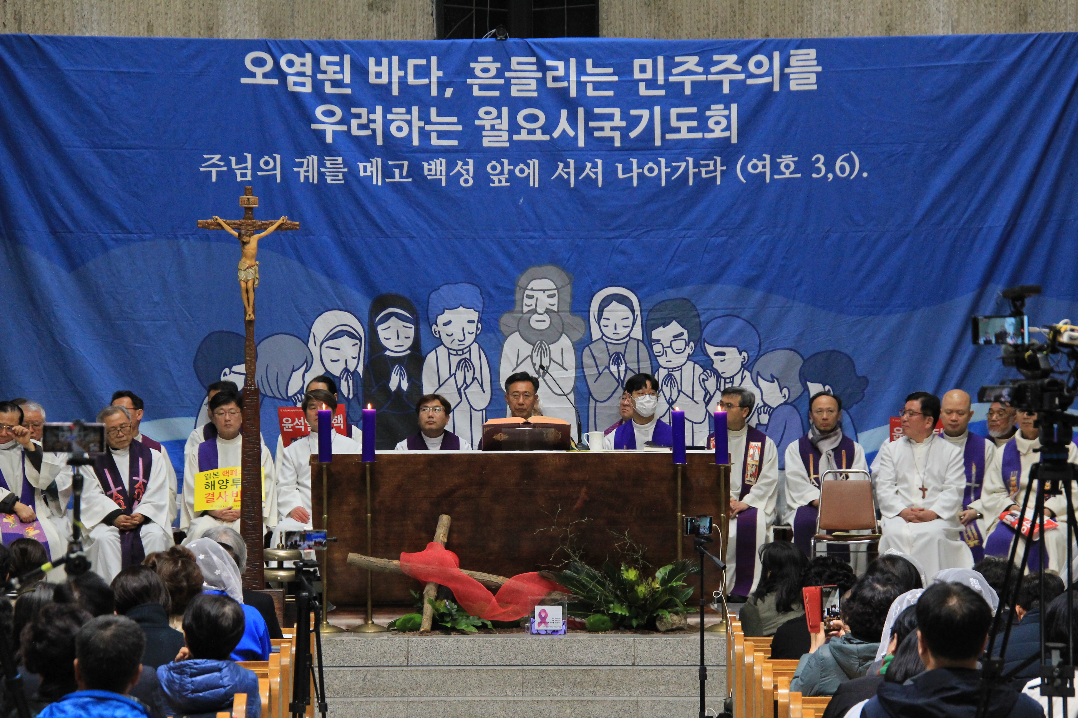 지난해 4월 10일부터 이날까지 전국 교구를 순회하며 27회의 기도회를 개최해온 사제단은 지난 1년 간 이어온 시국기도회를 마치며 시민들에게 “이번 선거에서 악한 정권의 만행을 끊고 새로운 세상을 향해 나아가야 한다”고 당부했다.