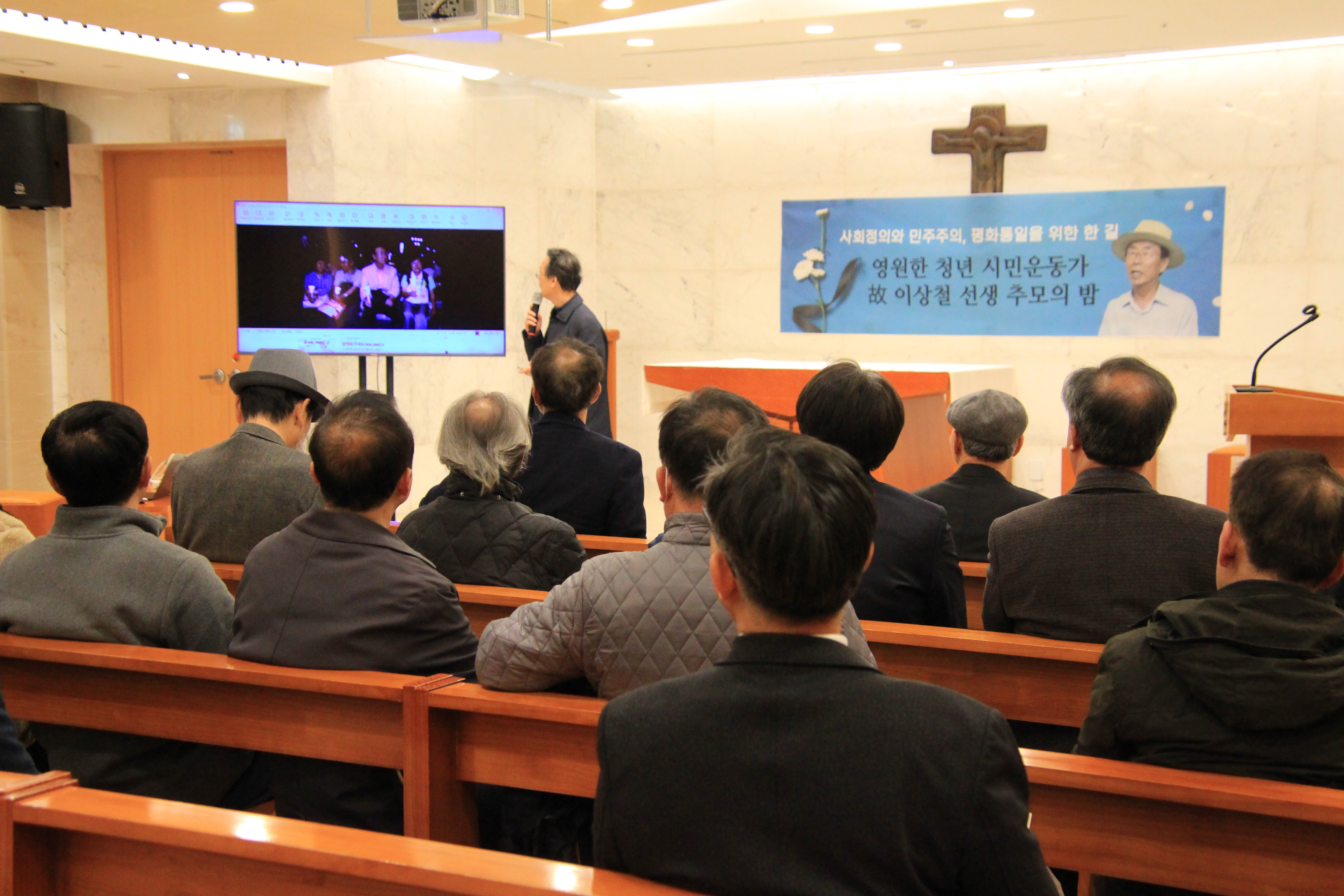 고인을 기리는 추모의 밤 행사가 지난 20일 오후7시 경기중부민주화운동계승사업회, 군포시민사회단체협의회, 6.15동동선언실천경기본부, 전국비상시국희의, 참여연대, 우리민족서로돕기운동, 평회통일연대, 사랍학교 개혁과 비리 추방을 위한 국민운동본부, 향린교회 주관으로 강남성모병원 장례식장 2층 예식실에서 열렸다.