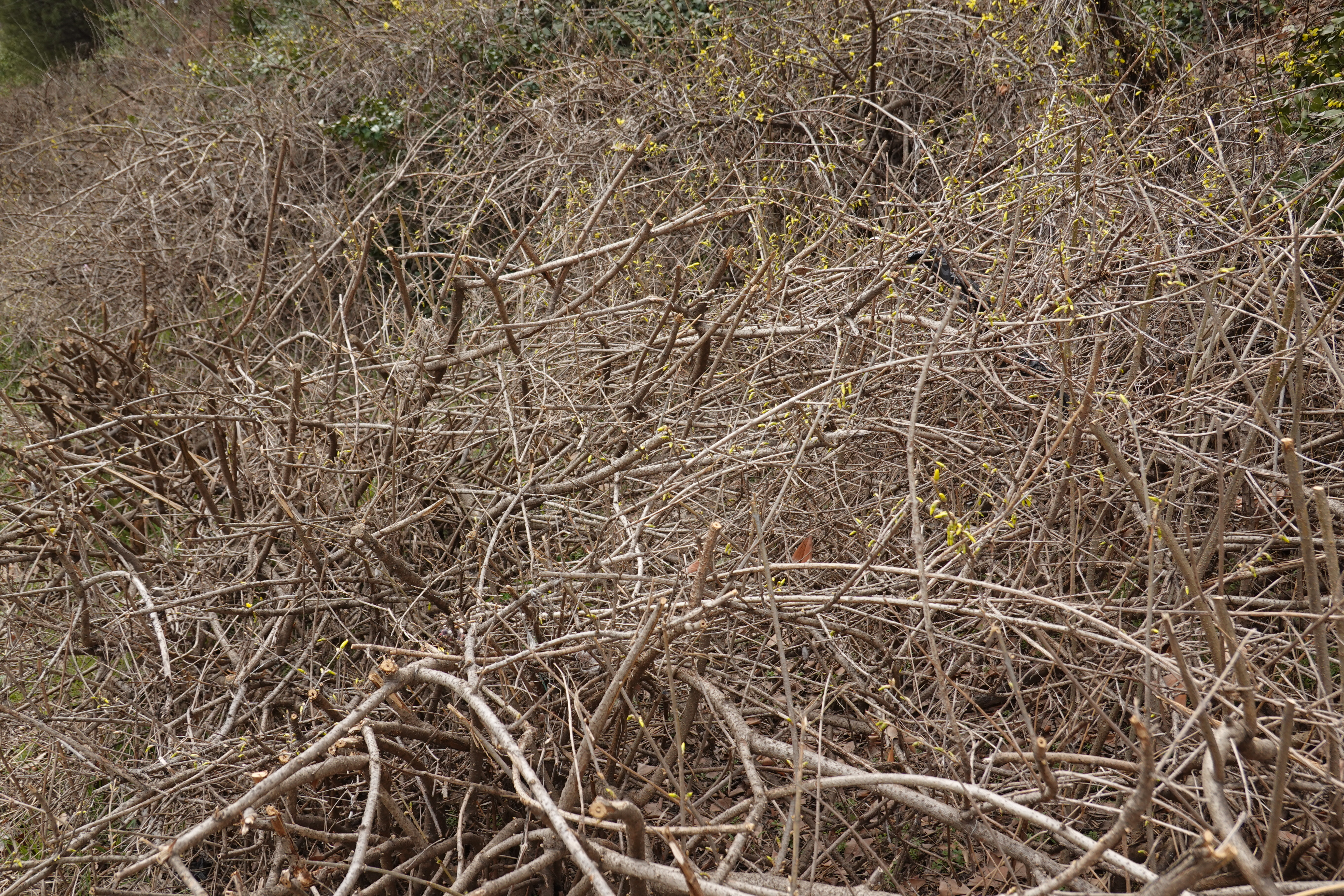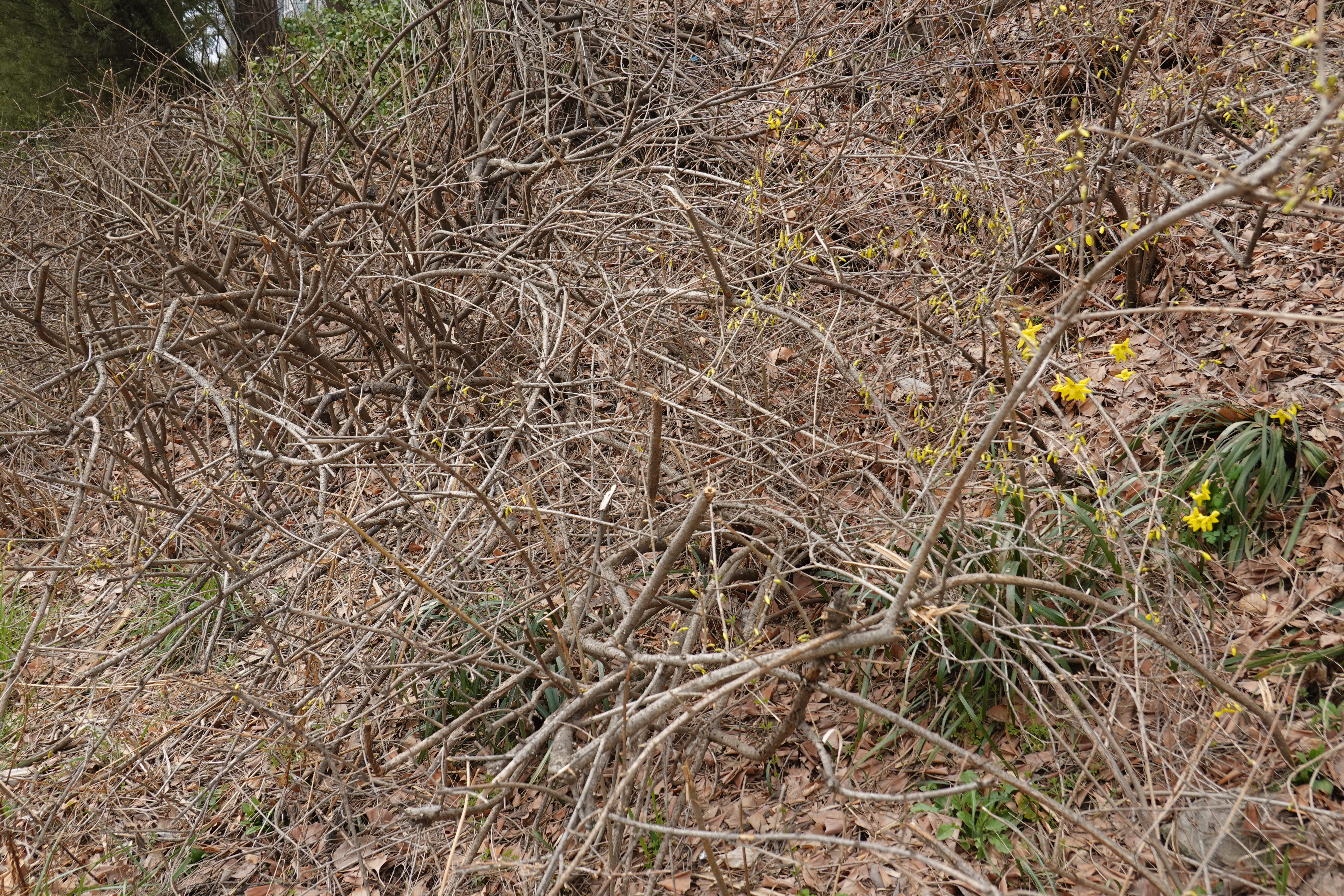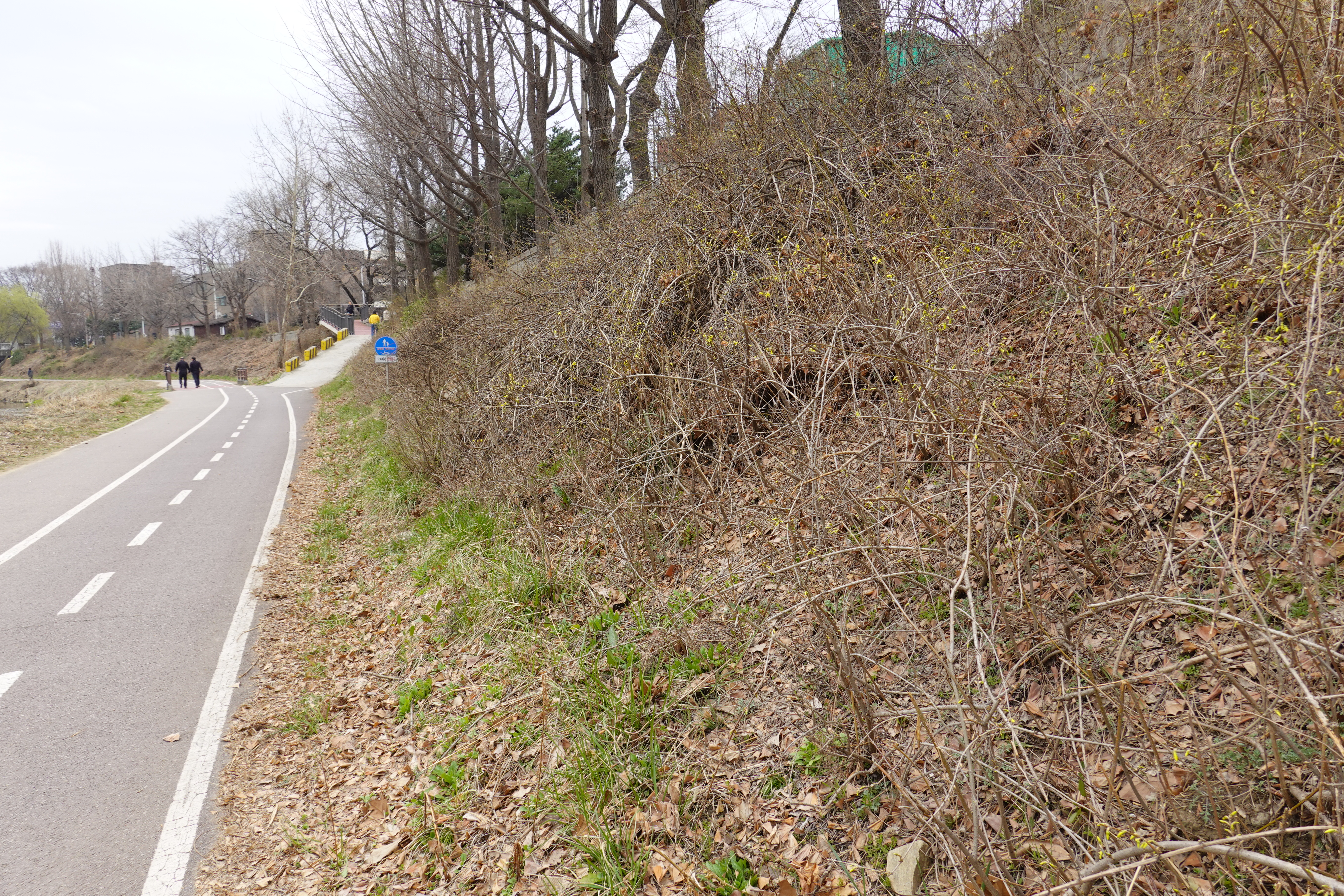 하지만 3월 22일 현장을 다시 가보니 지난 2월 서로교-명학대교 구간의 일부애서만 베어진 모습이던 개나리 군락지는 대부분 사라지고 말았다. 오히려 개나리 군락지 제거를 계속하여 서로교부터 명학대교 구간을 모조리 베어낸 것이다.