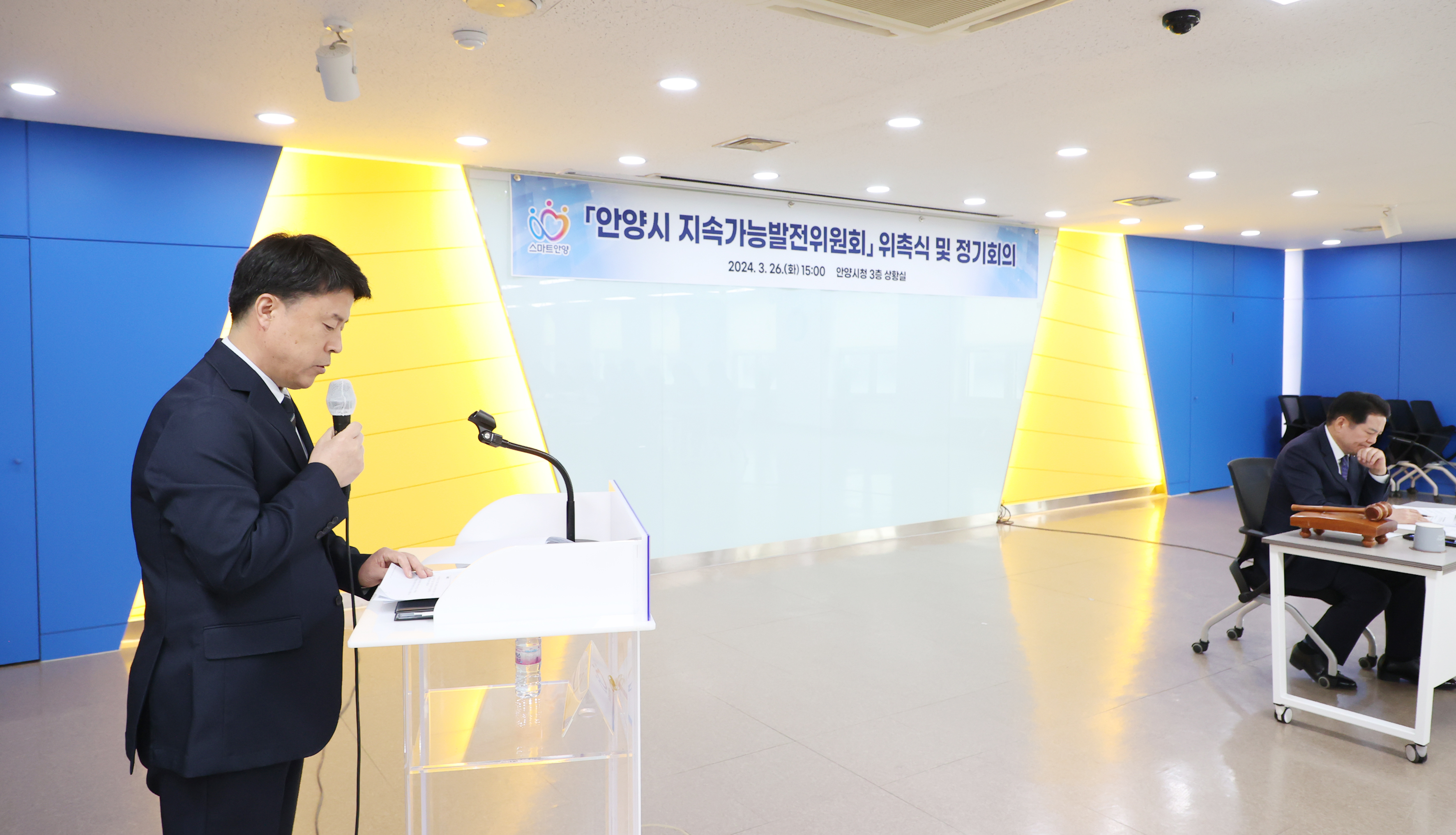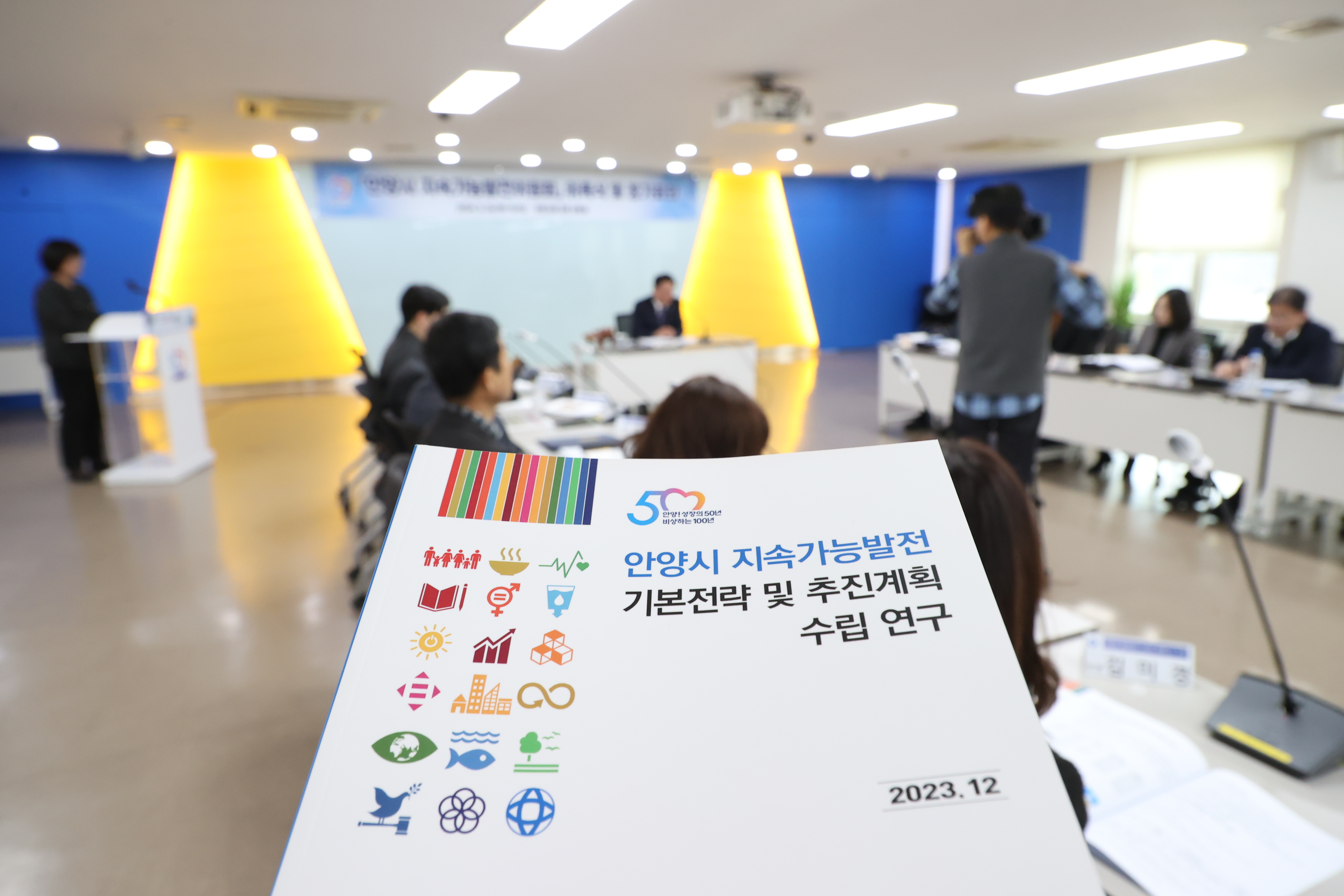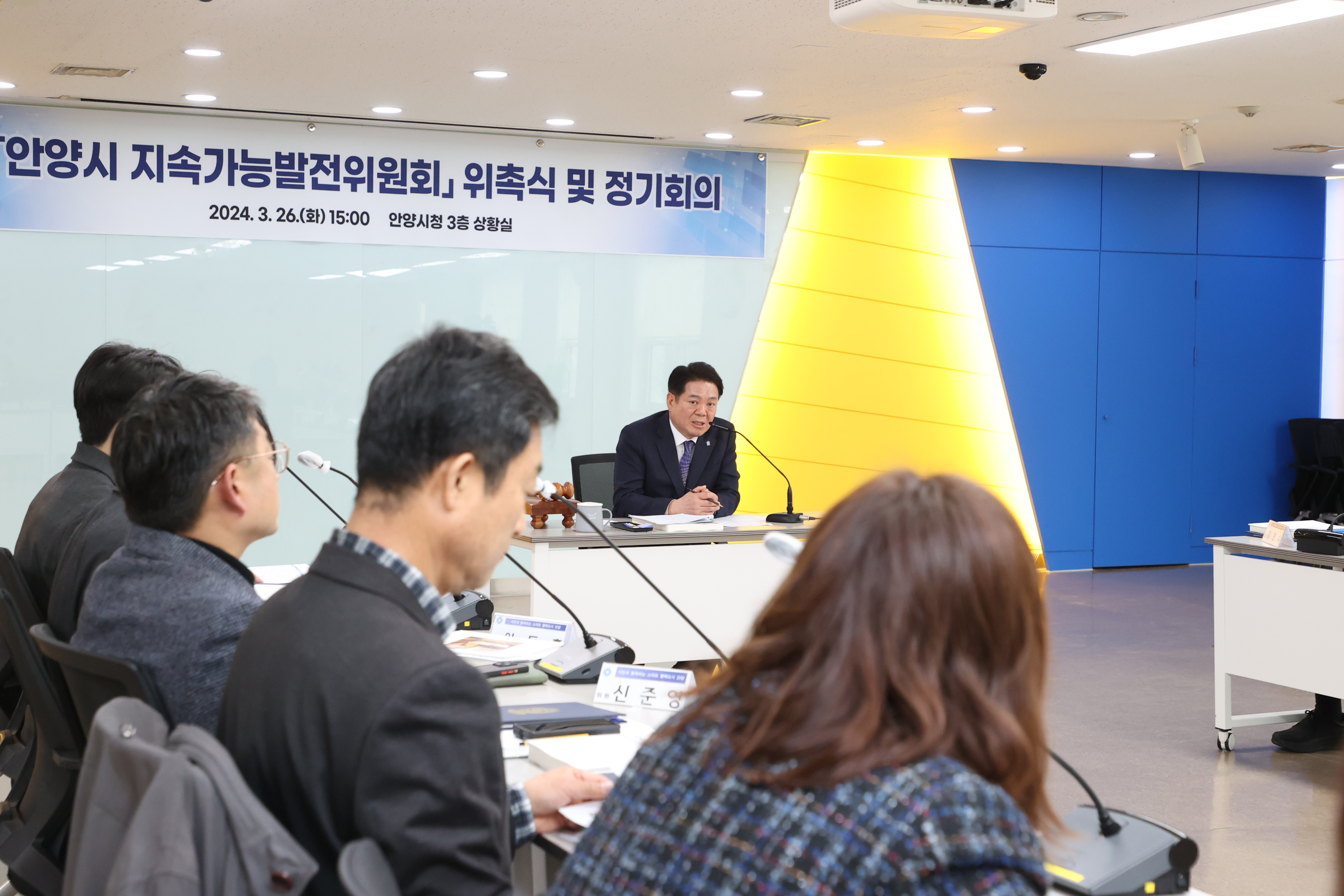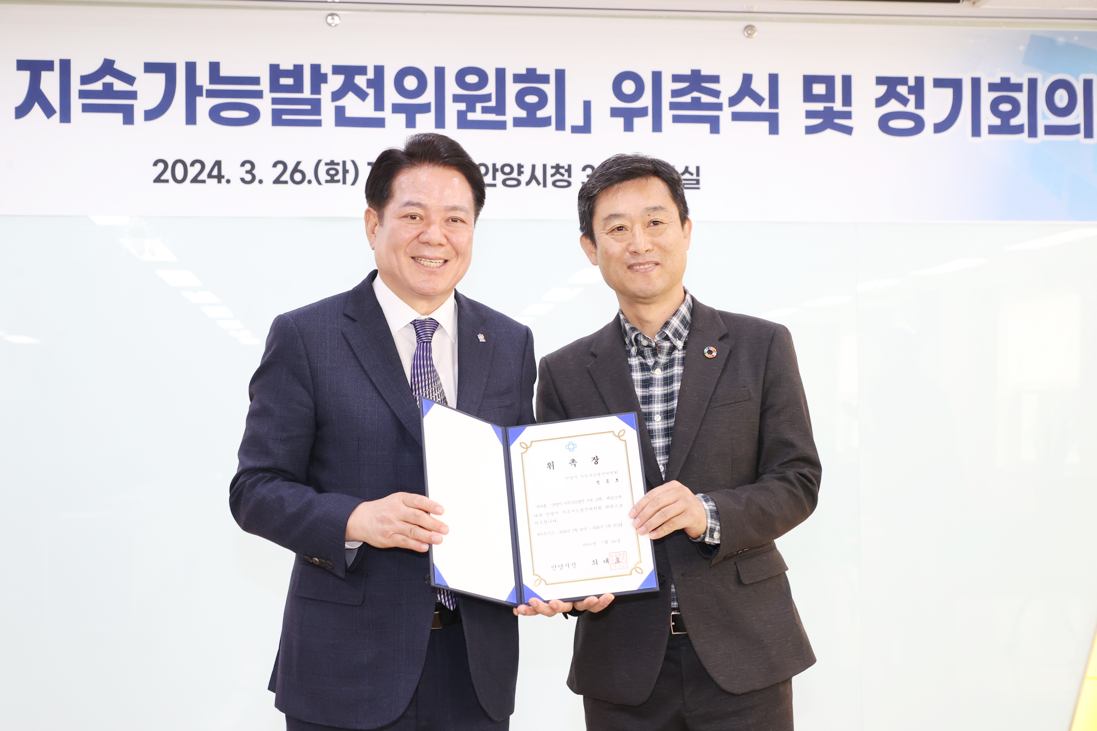 이날 오후 3시 안양시청 3층 상황실에서 열린 안양시 지속가능발전위원회 위촉식에서는 위원장인 최대호 안양시장을 비롯한 안양시 실·국·소·원장 등 당연직 위원 11명, 안양시의원과 민간위원을 포함한 위촉직 위원 15명이 위촉됐다.