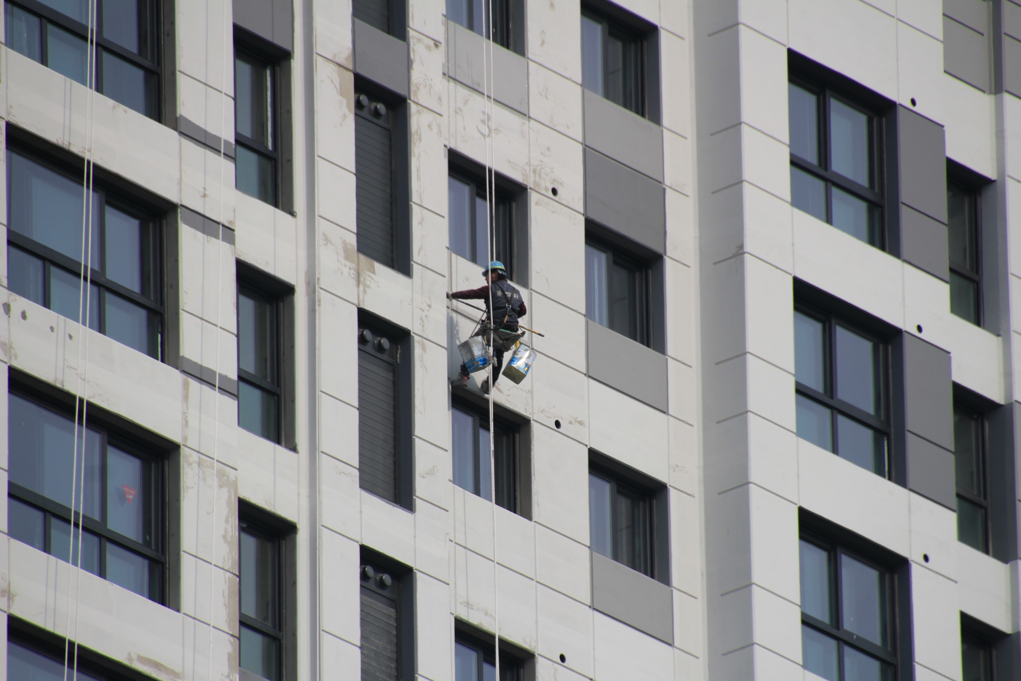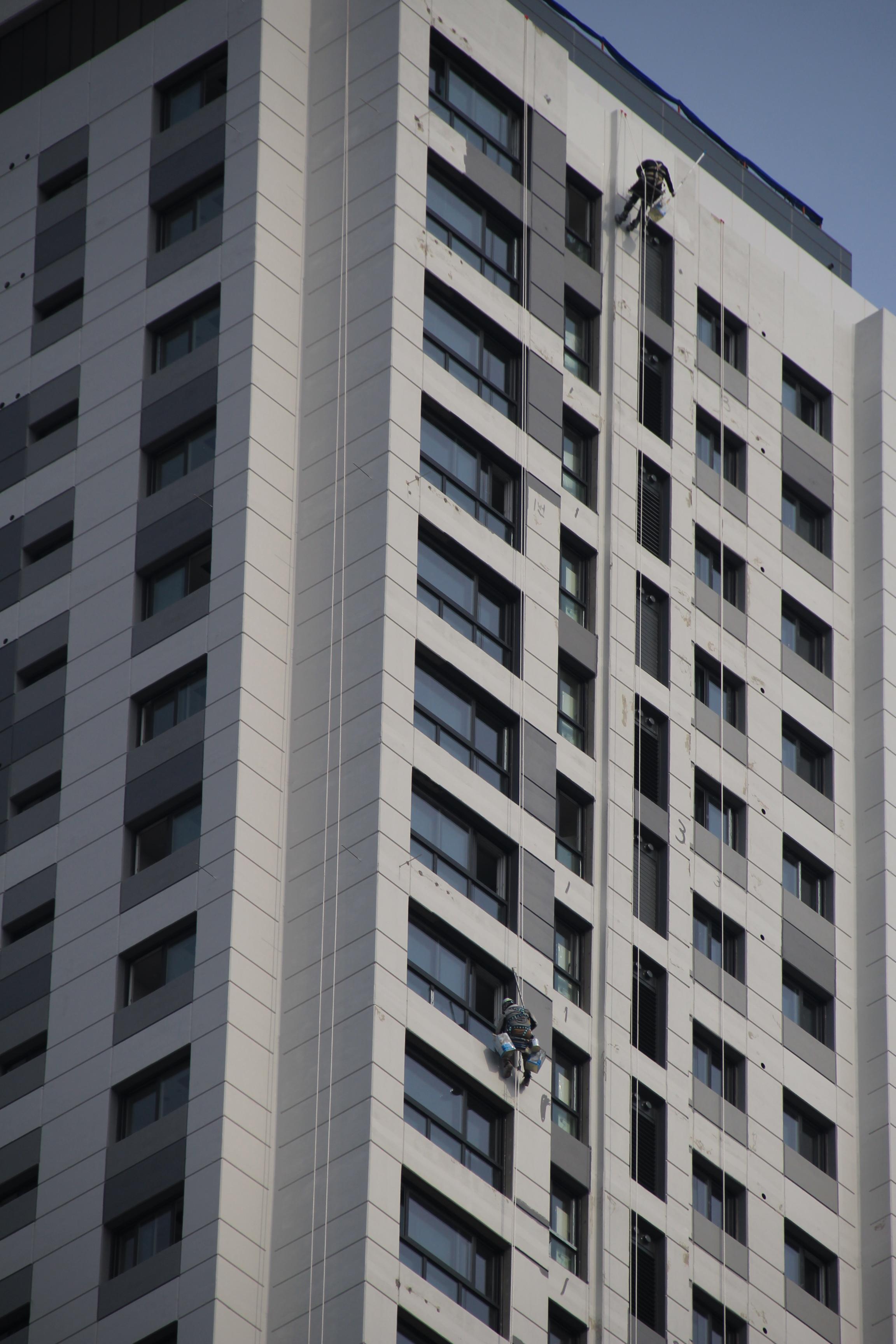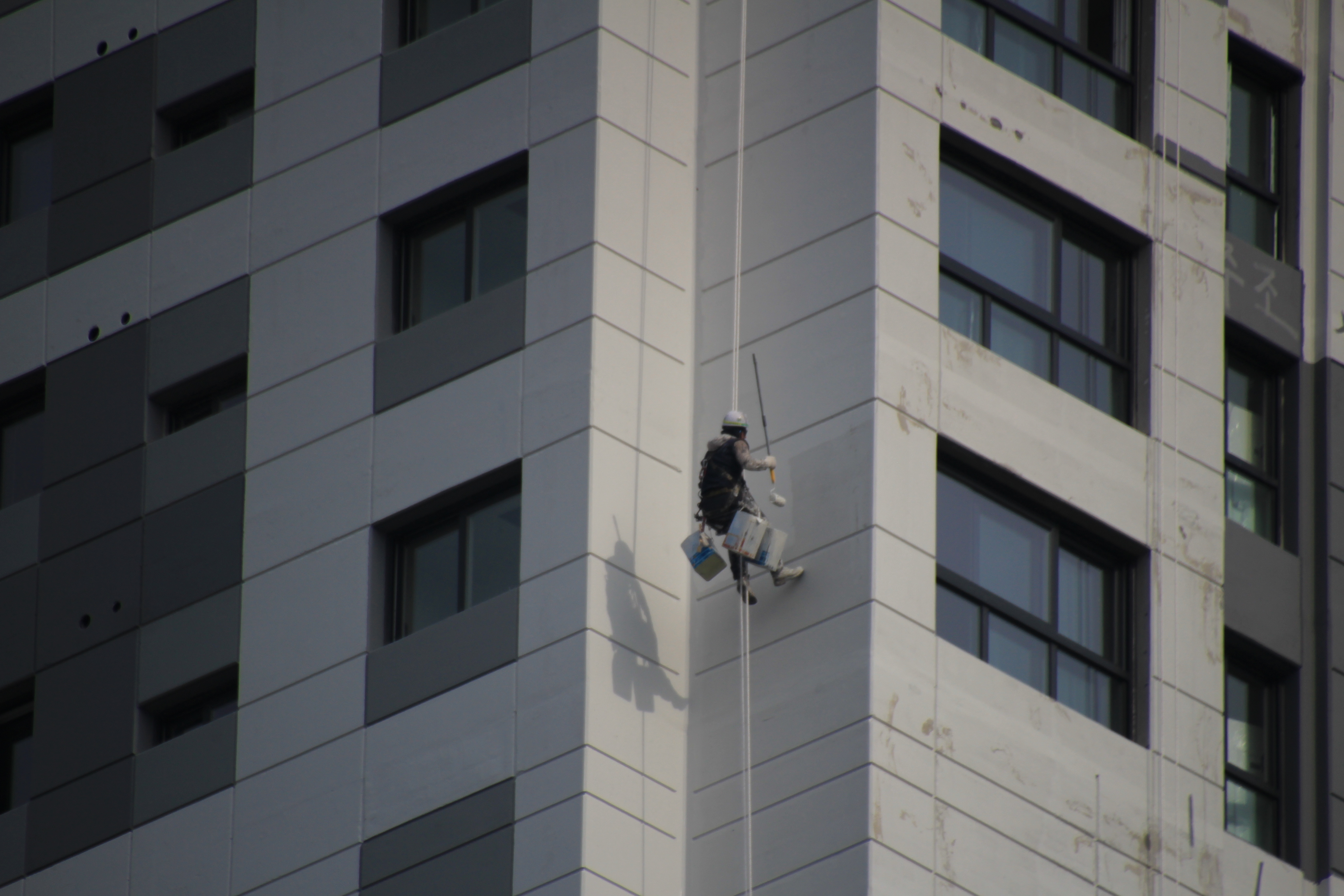 2024.03.27/ #도시기록 #안양 #평촌푸르지오/ 안양시청앞 옛 국토연구원 자리(시민대로 245.관양로 1591-6)에 신축한 45층의 평촌푸르지오센트럴파크 오피스텔. 외벽 페인트칠 공사가 한창인데 초고층 벽에 매달린 작업자를 지켜보기가 아찔아찔하다.