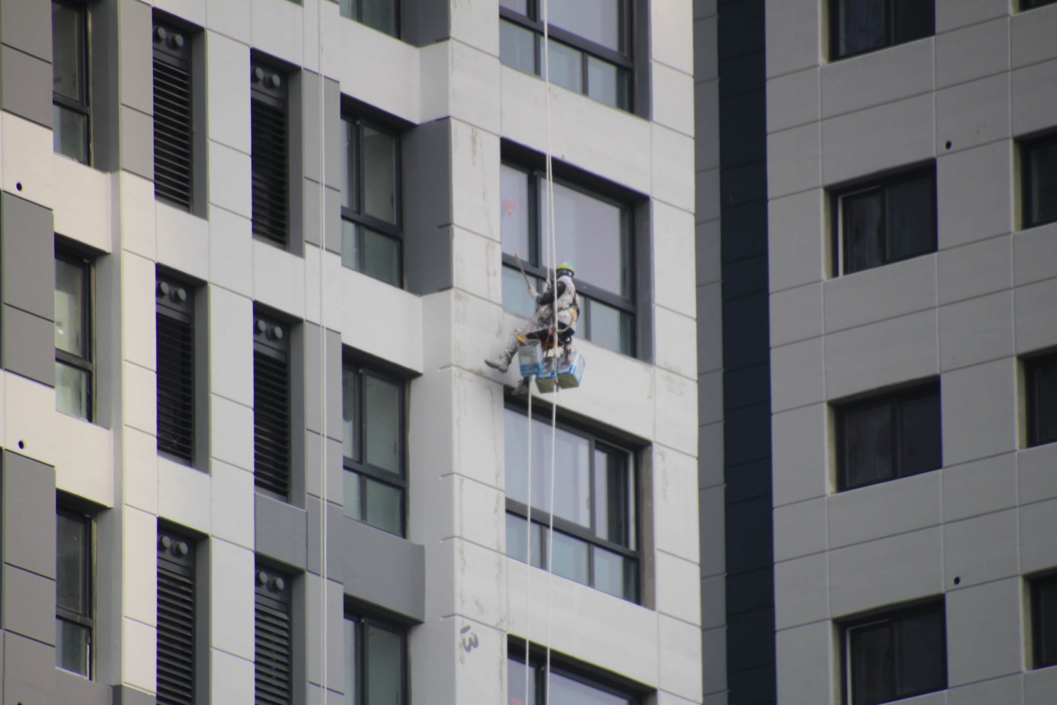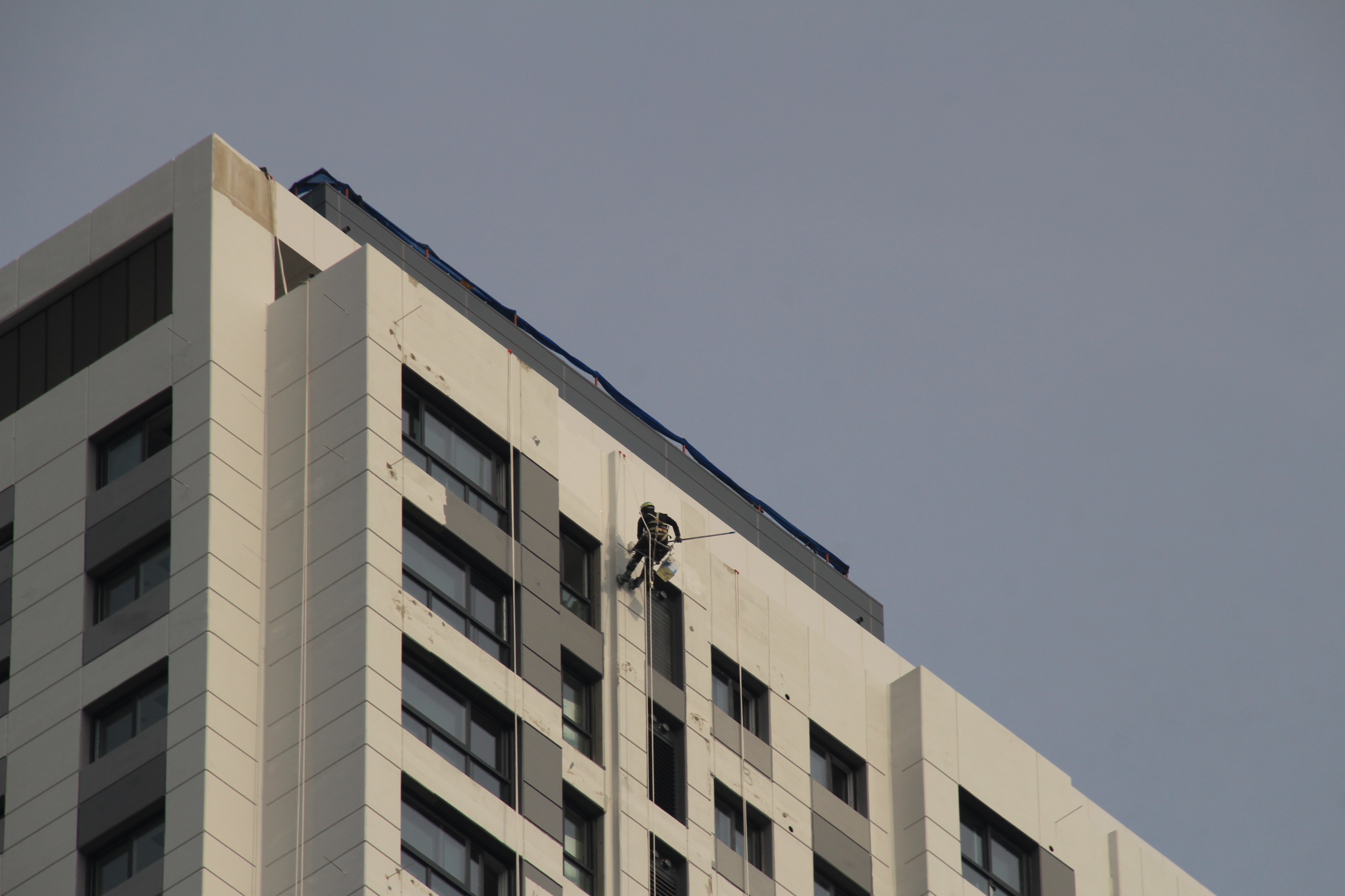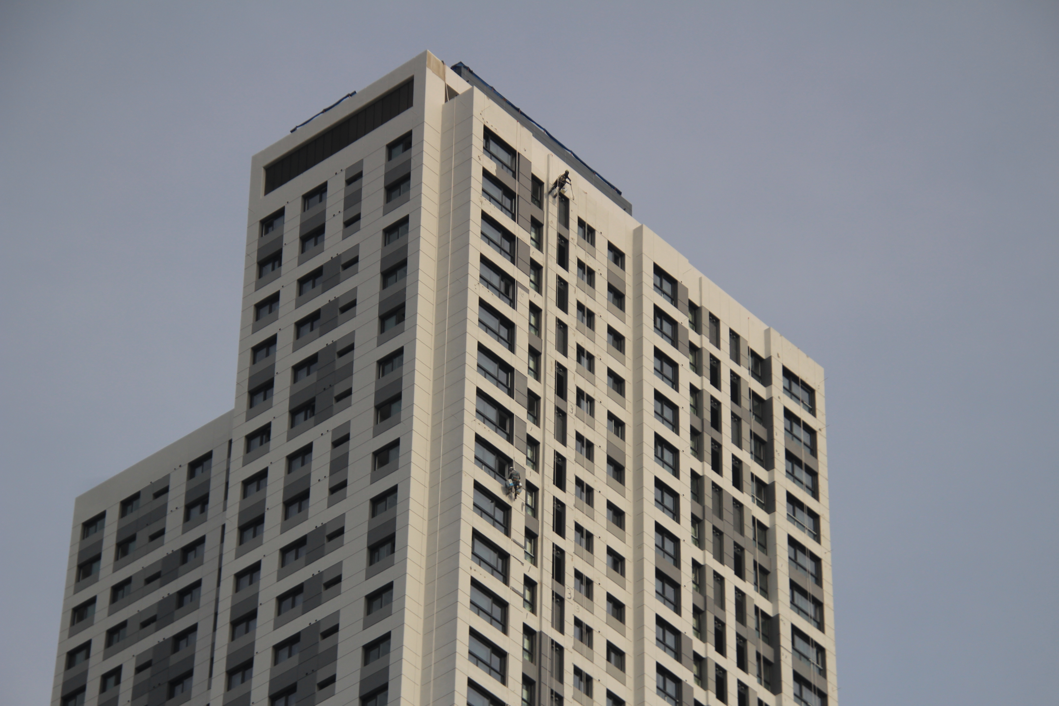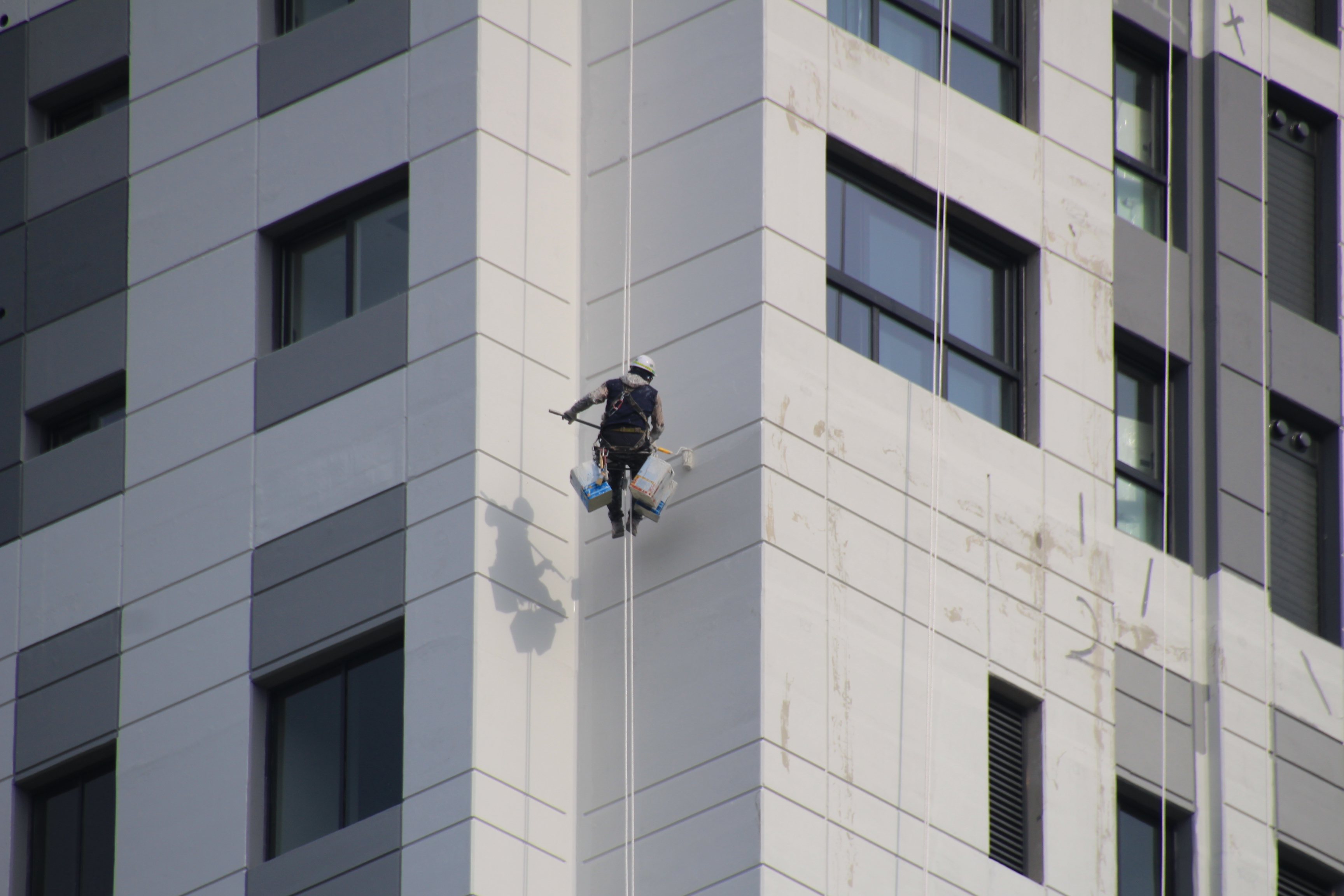 2024.03.27/ #도시기록 #안양 #평촌푸르지오/ 안양시청앞 옛 국토연구원 자리(시민대로 245.관양로 1591-6)에 신축한 45층의 평촌푸르지오센트럴파크 오피스텔. 외벽 페인트칠 공사가 한창인데 초고층 벽에 매달린 작업자를 지켜보기가 아찔아찔하다.