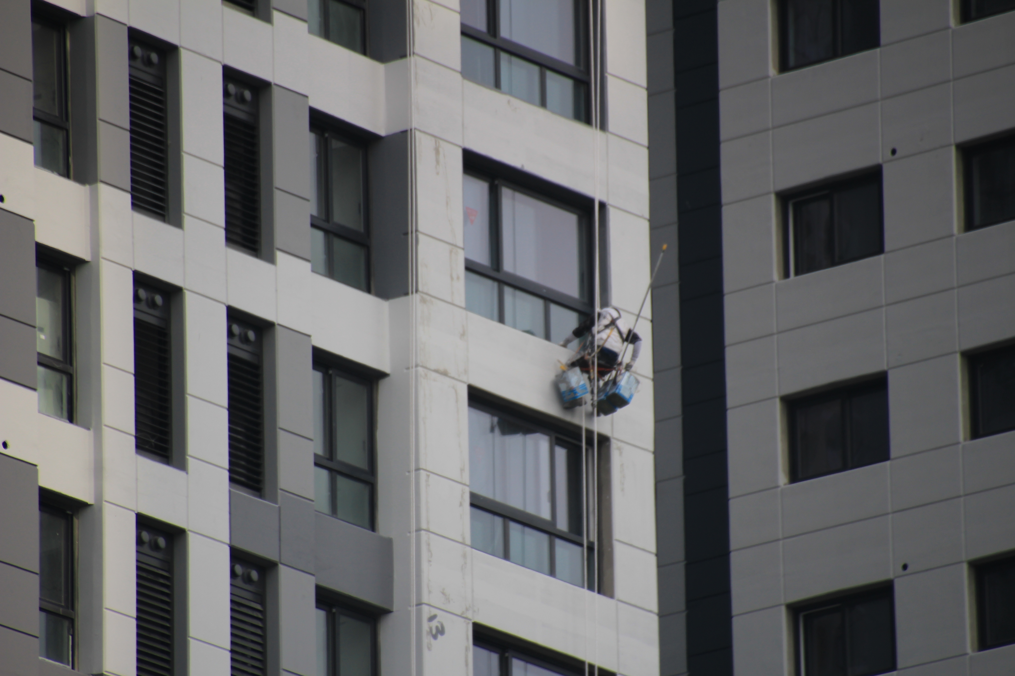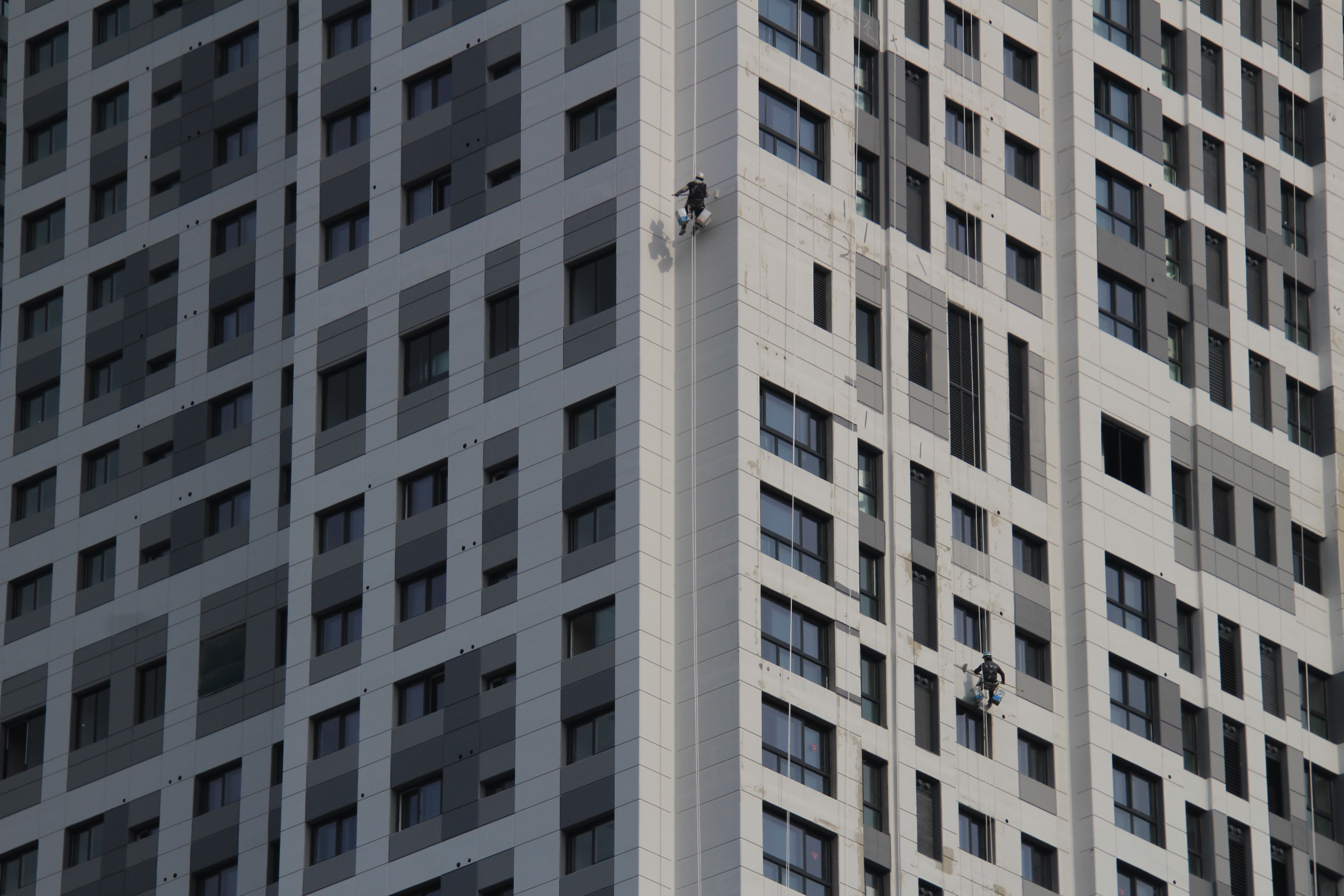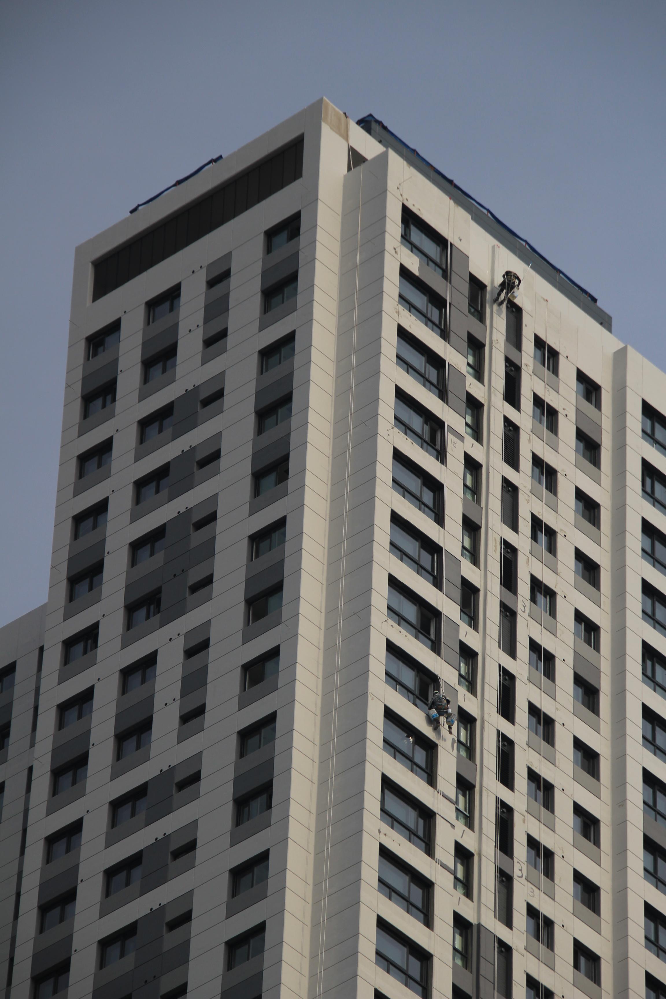 2024.03.27/ #도시기록 #안양 #평촌푸르지오/ 안양시청앞 옛 국토연구원 자리(시민대로 245.관양로 1591-6)에 신축한 45층의 평촌푸르지오센트럴파크 오피스텔. 외벽 페인트칠 공사가 한창인데 초고층 벽에 매달린 작업자를 지켜보기가 아찔아찔하다.