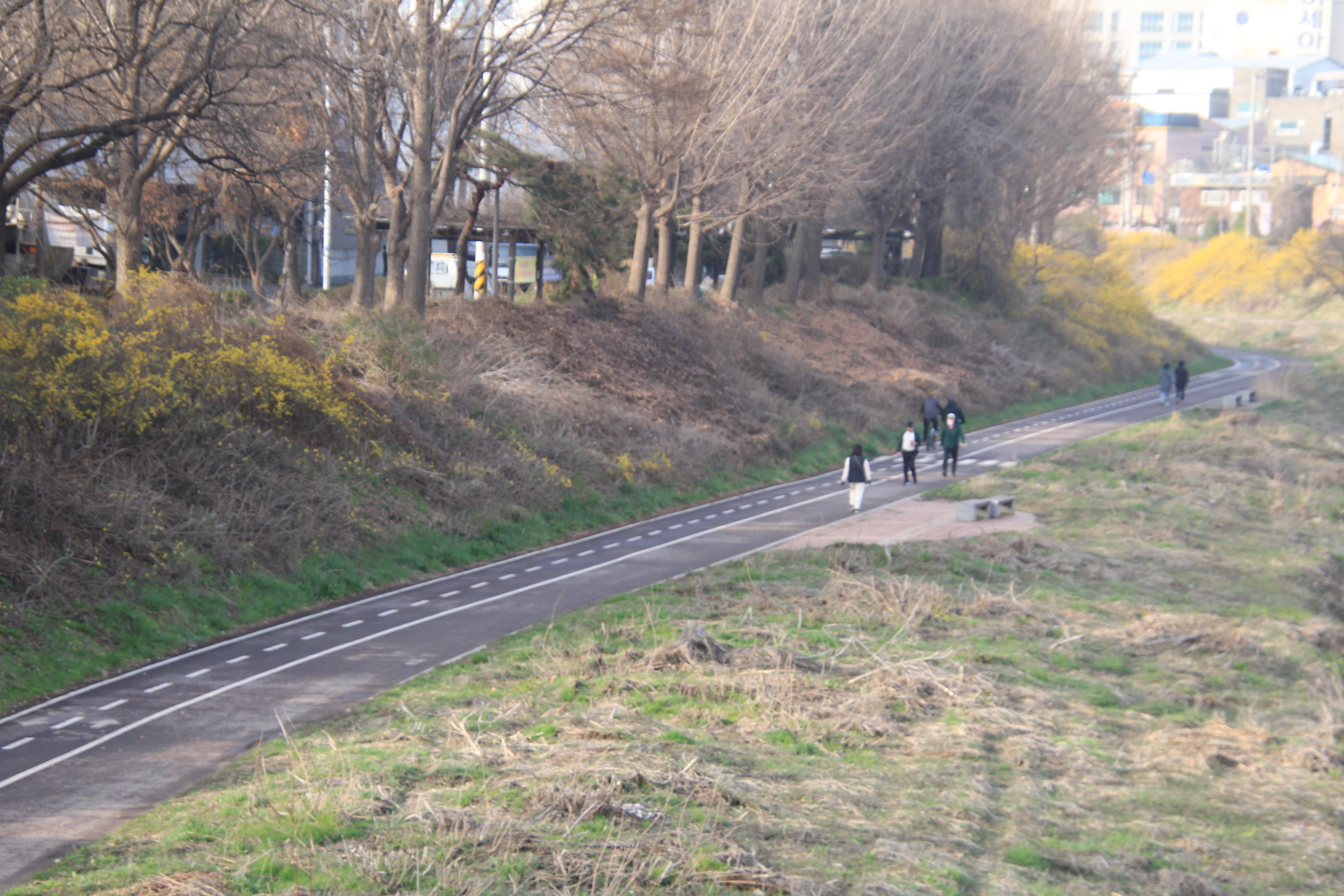 하지만 안타깝게도 안양천 쌍개울-명학대교 구간의 서쪽 뚝방의 개나리 군락지를 대부분 베어버려 참혹하기 짝이없다.