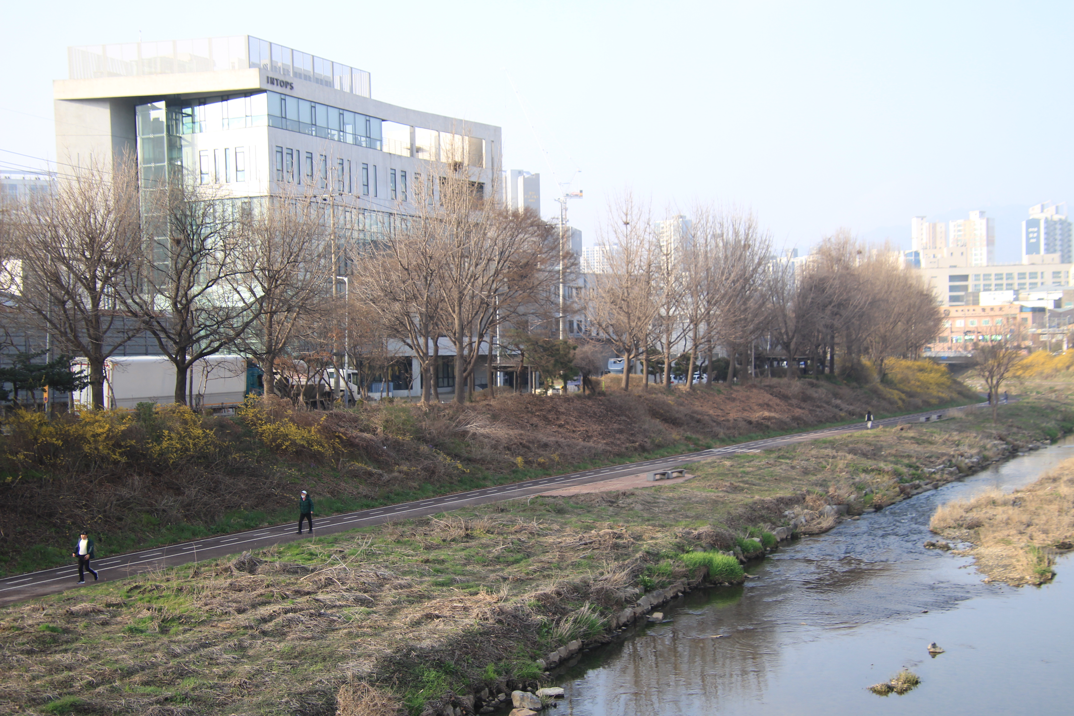 하지만 안타깝게도 안양천 쌍개울-명학대교 구간의 서쪽 뚝방의 개나리 군락지를 대부분 베어버려 참혹하기 짝이없다.