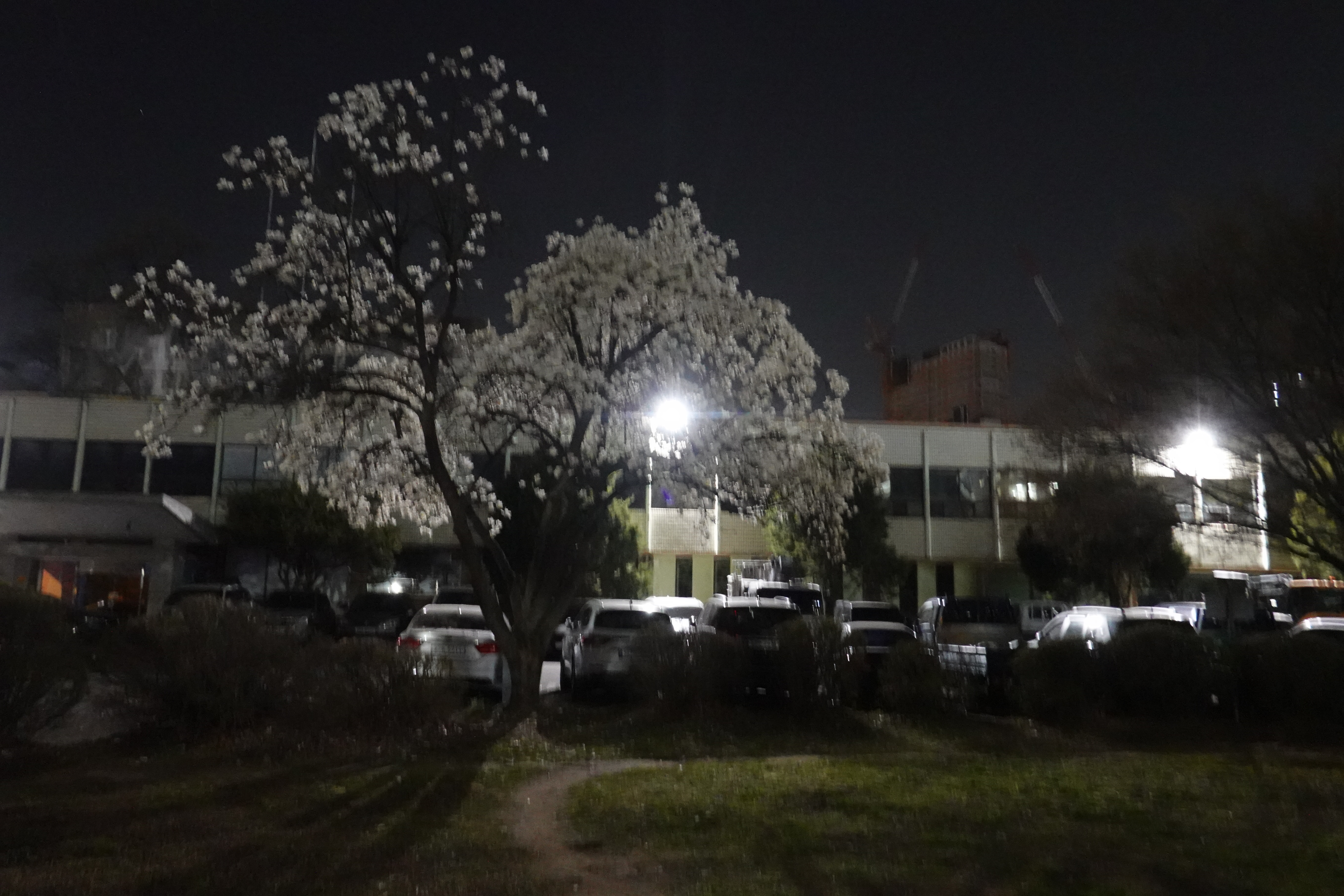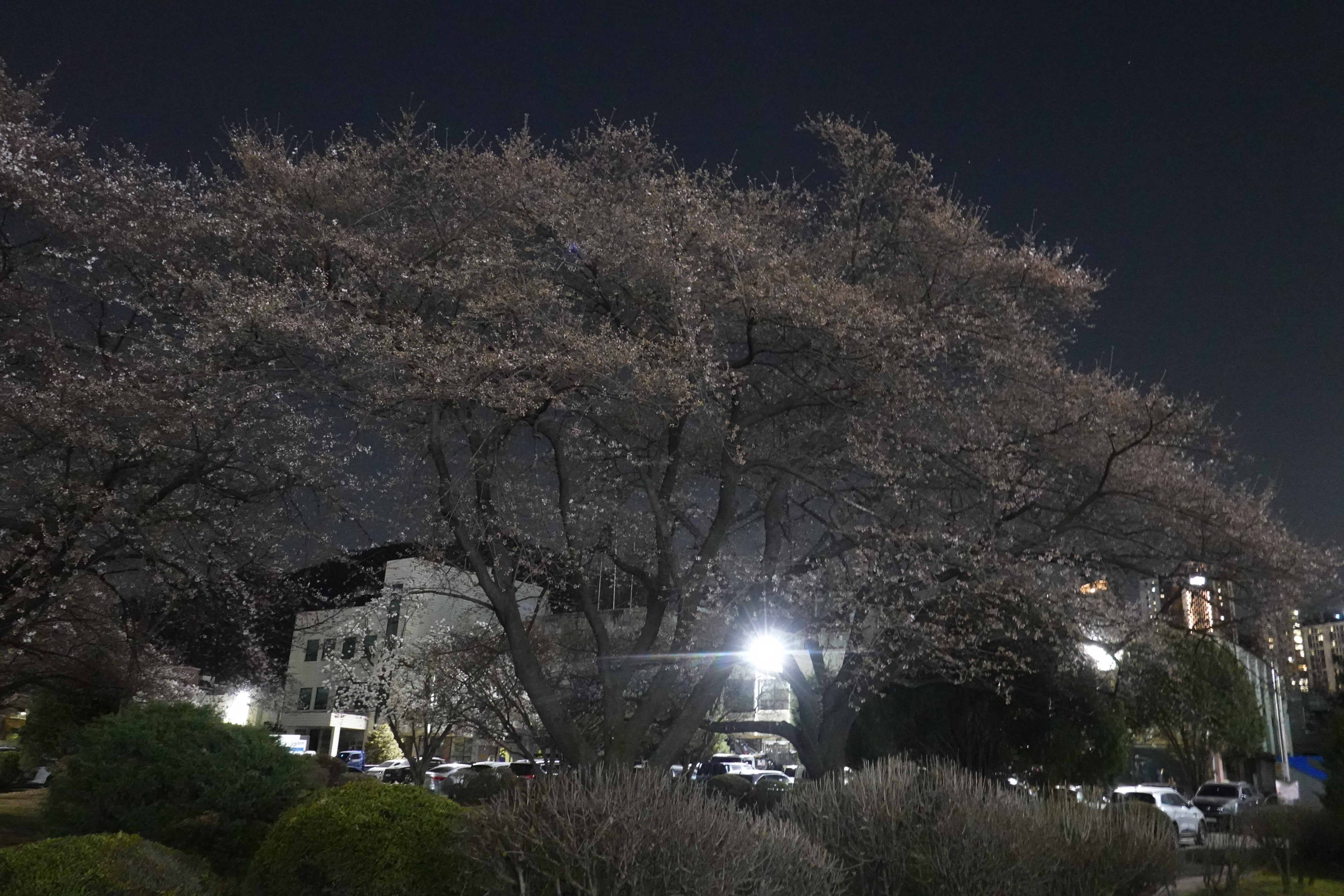 2024.04.01/ #도시기록 #안양 #옛검역원 #왕벚꽃/ 안양6동 엣 검역원의 밤 풍경. 왕벚꽃이 하얗게 피면서 예쁘다. 기막힌컨텐츠다.조명만 설치되면 멋진 벚꽃 야경 명소가 될듯 싶지만 사람 몰리면 생태 파괴 되니 냅둬.