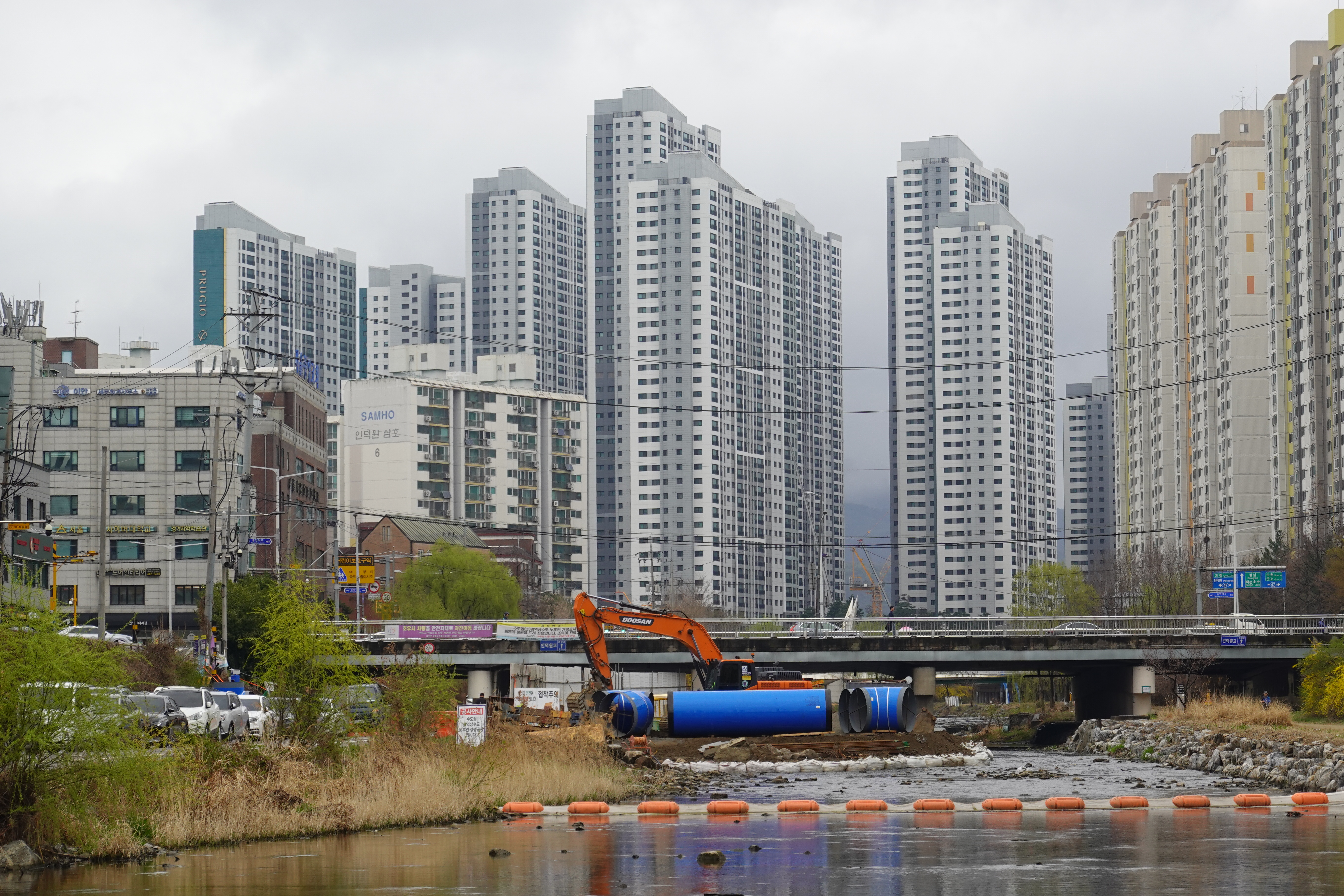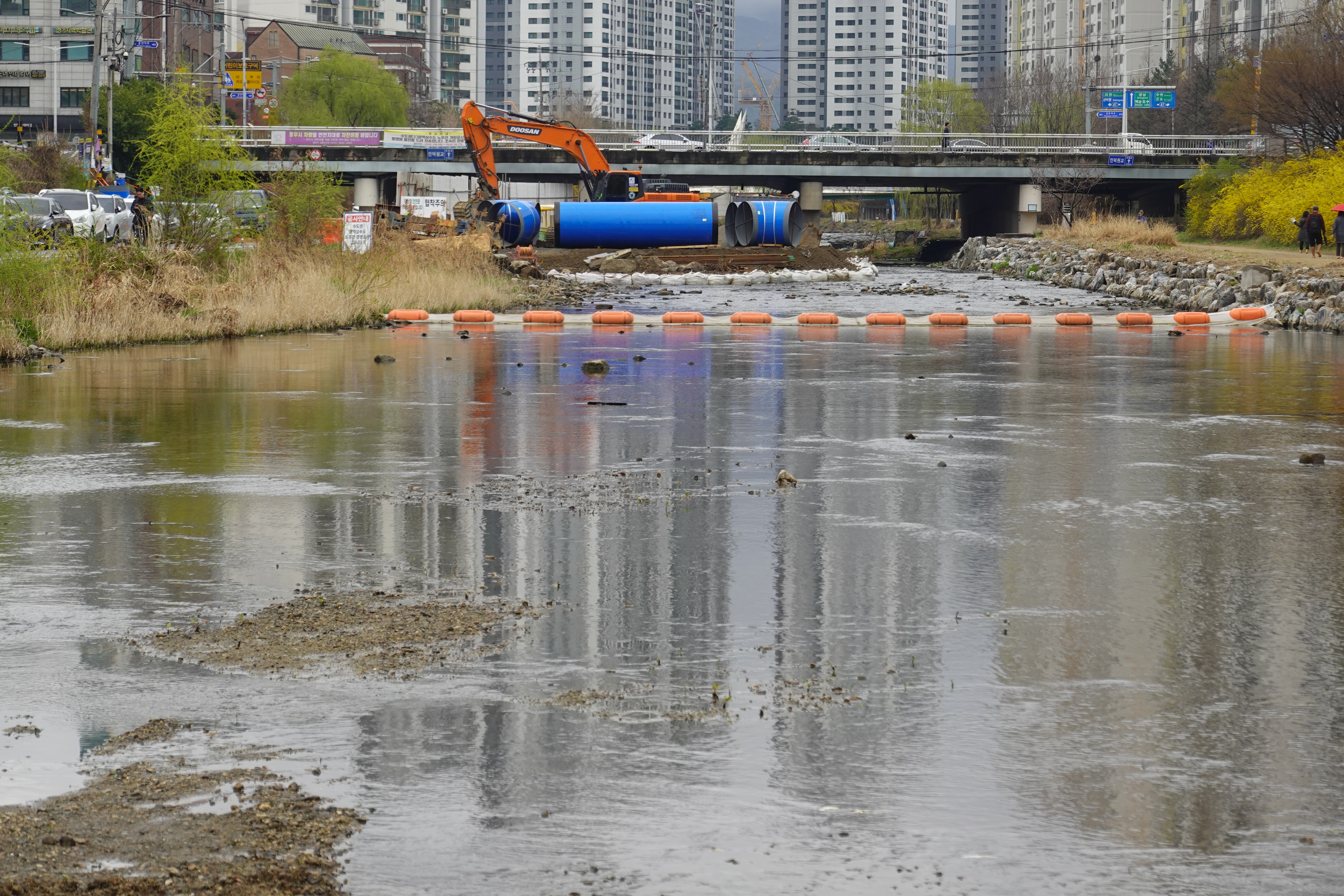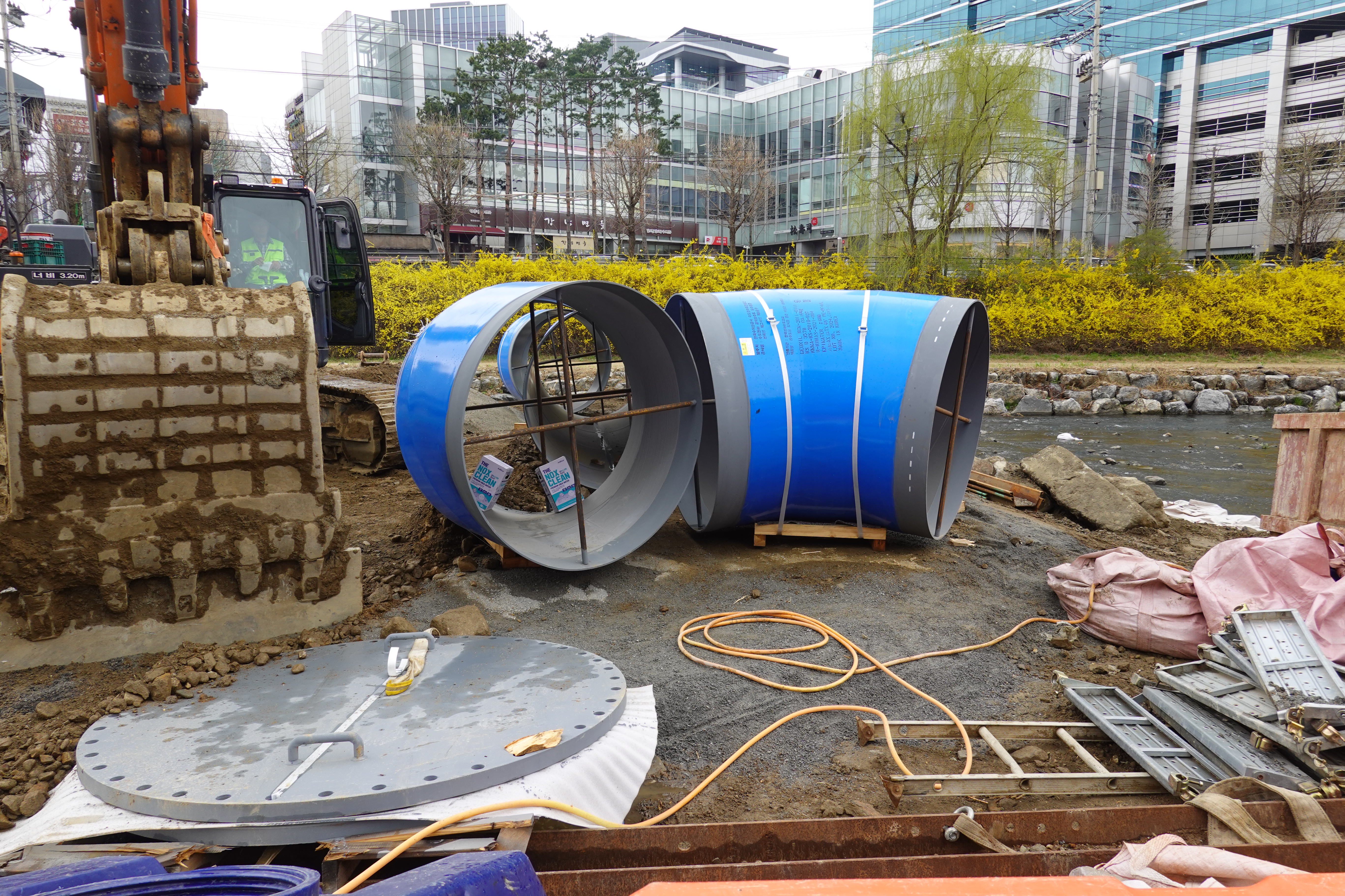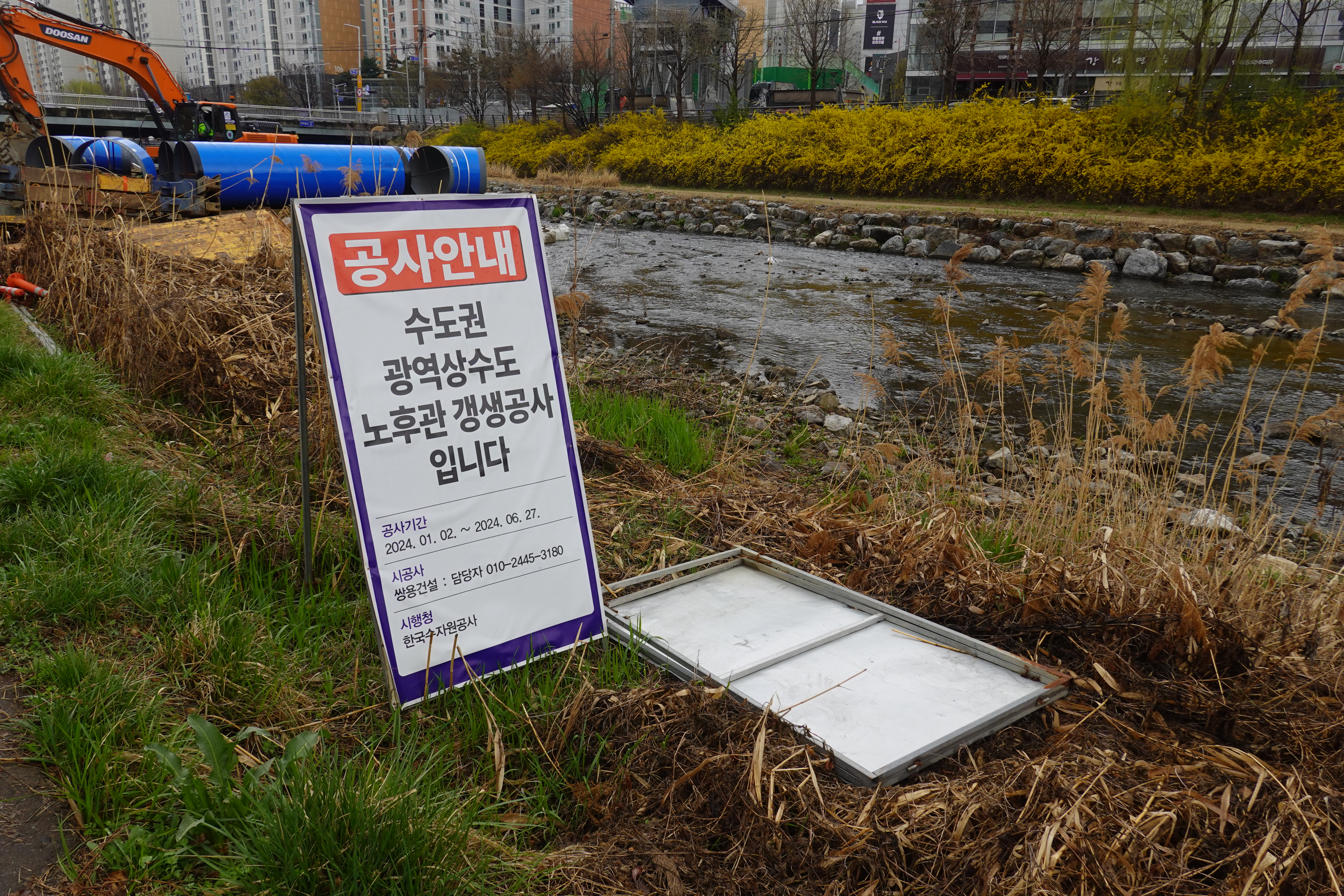 2024.04.03/ #도시기록 #안양 #학의천 #공사중/ 인덕원교 아래에서 수도권 광역상수도 노후관 갱생공사.