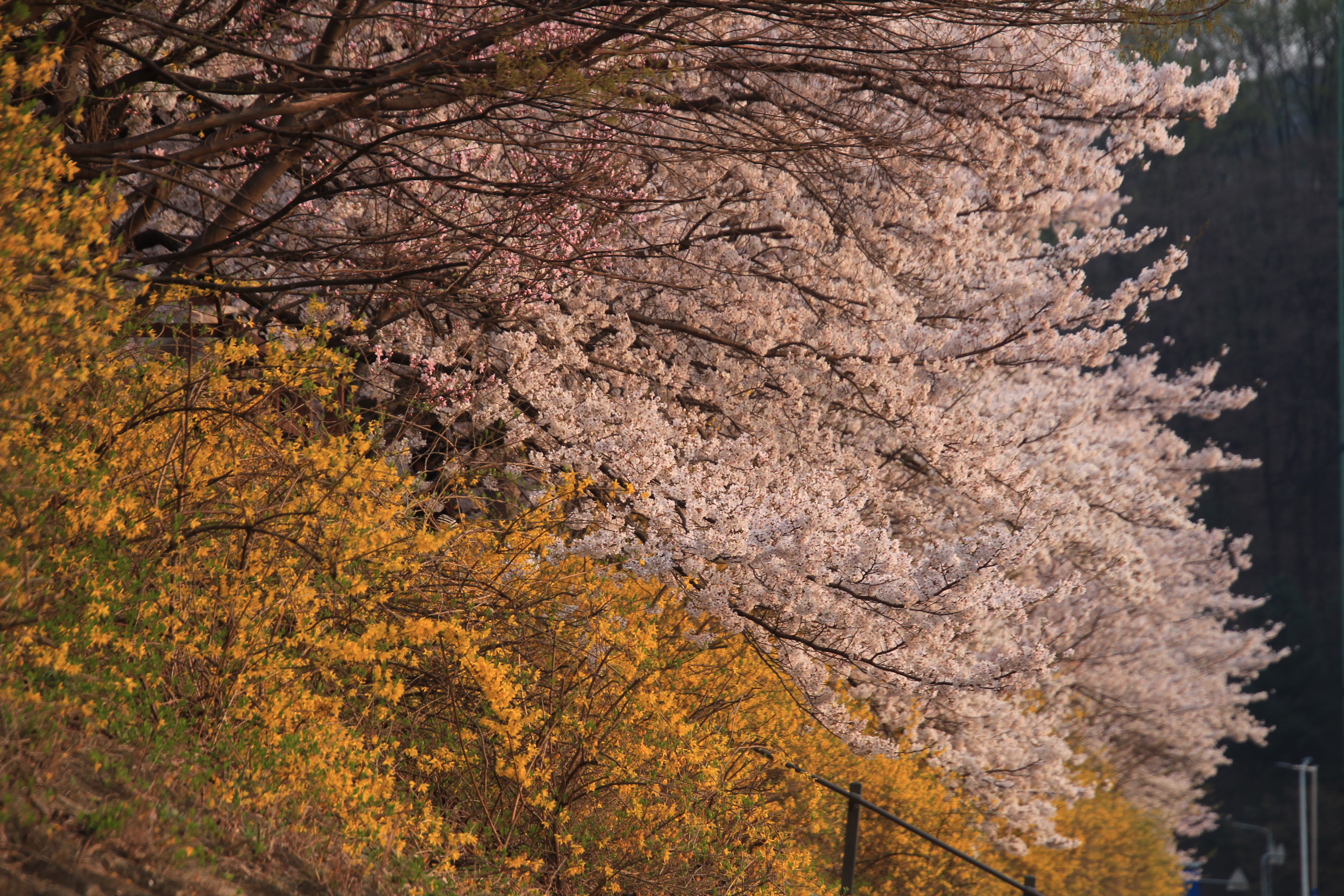 2024.04.06/ #도시기록 #안양 #충훙부 #벚꽃길/ 충훈부 왕벚나무 벚꽃이 만개했다. 충훈1교부터 충훈고교앞까지 제방위로는 산책길 양쪽으로 은백색의 벚꽃, 제방 사변에는 노란 개나리꽃, 제방 아래 천변에는 하얀 이팝나무와 화단에 심은 튜을림 등 화초들이 제각각 멋진 자태를 뽐냈다. 벚꽃 개화가 예상보다 늦어져 지난주에 열린 벚꽃축제와 맞지는 않았지만 알음알음 소문을 듣고 꽃 구경 온 시민들이 엄청 많았다. 교통질서 자원봉사를 하던 동네 주민 한분은 축제와 개화시기가 엊갈렸기에 인파가 분산돼 오히려 다행인것 같다고 말했다. 저녁이 되면서 어둠이 찾아오는 오후7시가 넘어서자 충훈벚꽃길에 조명이 켜지자 밤은 낮보다 화려하다는 말이 무엇지를 보여주는듯했다. 일요일(8일)에도 만개한 벚꽃의 아름다운 모습을 볼수 있으며 오는 9일부터는 꽃잎이 떨이지기 시작하면 바람에 휘날리는 꽃비의 멋진 풍경을 볼수 있을듯 싶다.